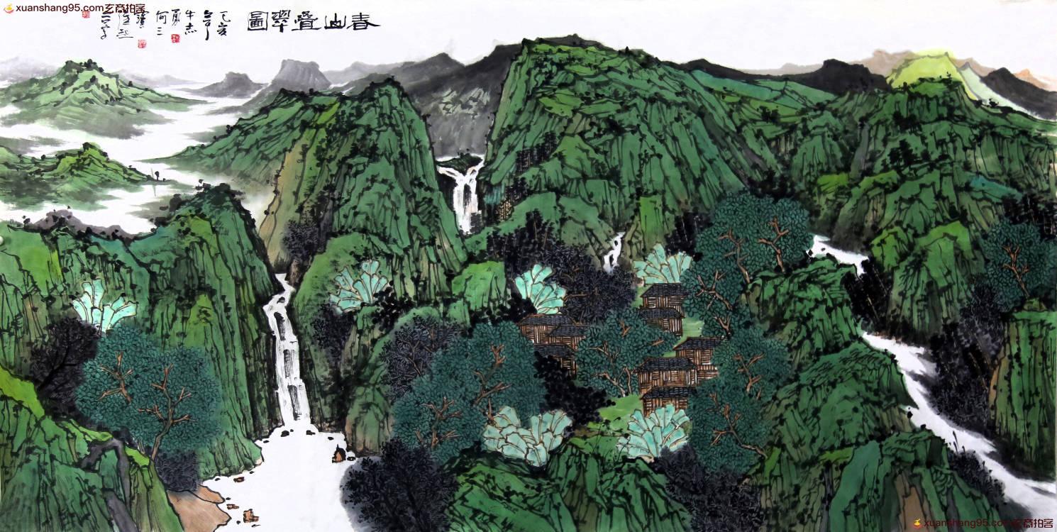 3. 竞拍详细 - 稀缺藏品 满维起 何三宝 牛志勇 大幅《3人合作山水》