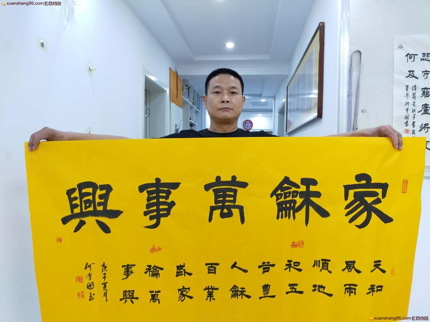 何守国1966年3月生于河北迁安,自幼楷书临习欧楷九成宫碑,化度寺,皇甫君和兰亭记等诸多欧体楷书碑帖,隶书以曹全碑,乙瑛碑张迁等碑,自幼酷爱书画艺术,师承河北书协会员李成永老师及西藏山水画派韩炳辉老师现为河北唐山市书法家协会会员河北迁安书法家协会会员迁安书画艺术研究会理事毕业于西藏山水画高研班香港国际华人书画家学会会员