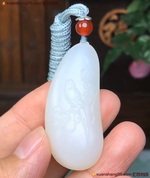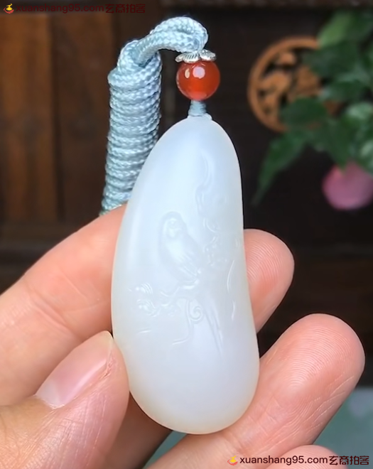 【喜上眉梢】精选和田玉白玉挂件 玉质细腻油润精工雕刻。重19克 尺寸45-20-11mm。