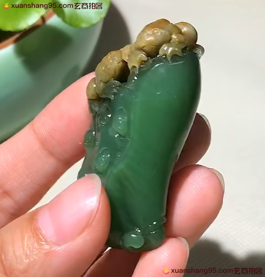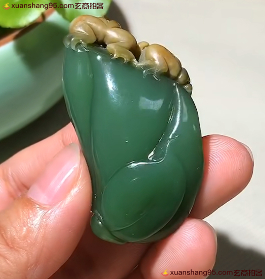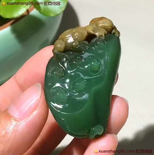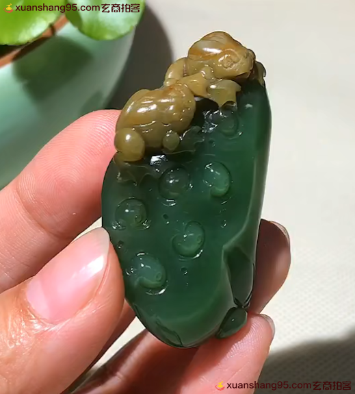 【呱呱来财】精选和田玉碧玉挂件 玉质细腻油润 精工雕琢 重36克 尺寸52-28-15mm。