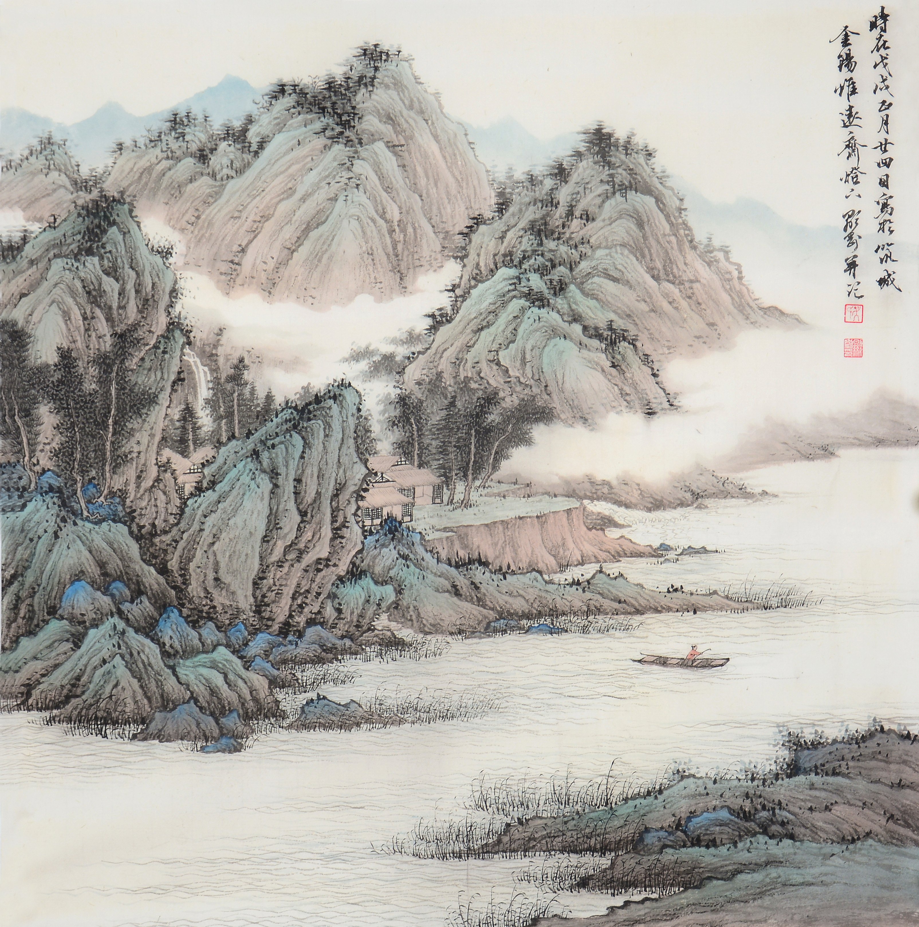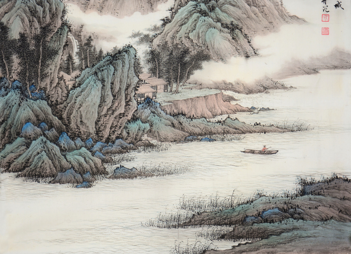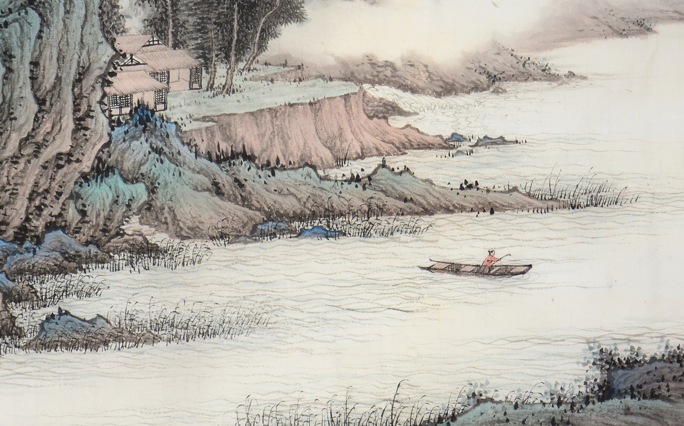 吴显刚 《春江泛舟》山水名家 精工笔山水