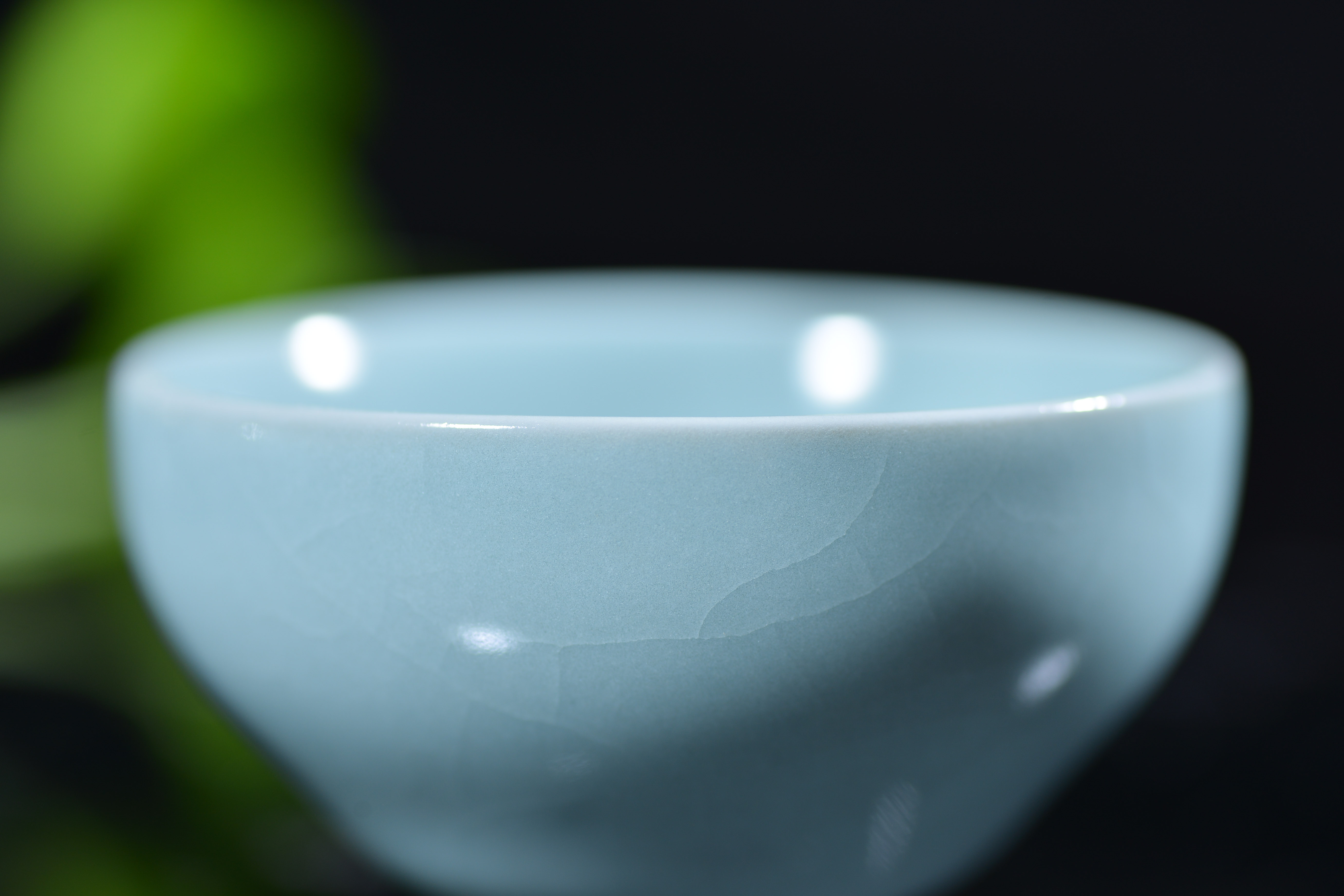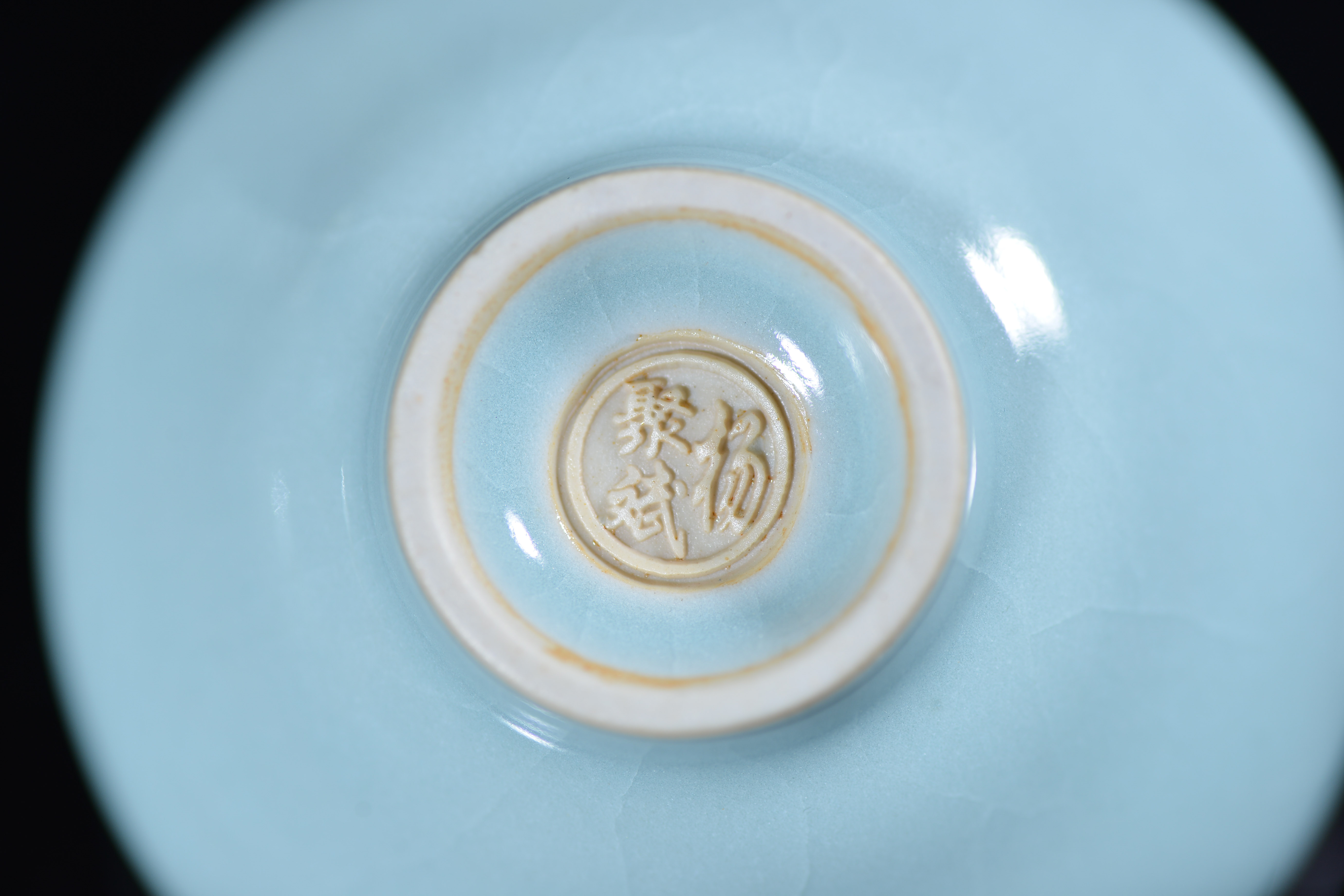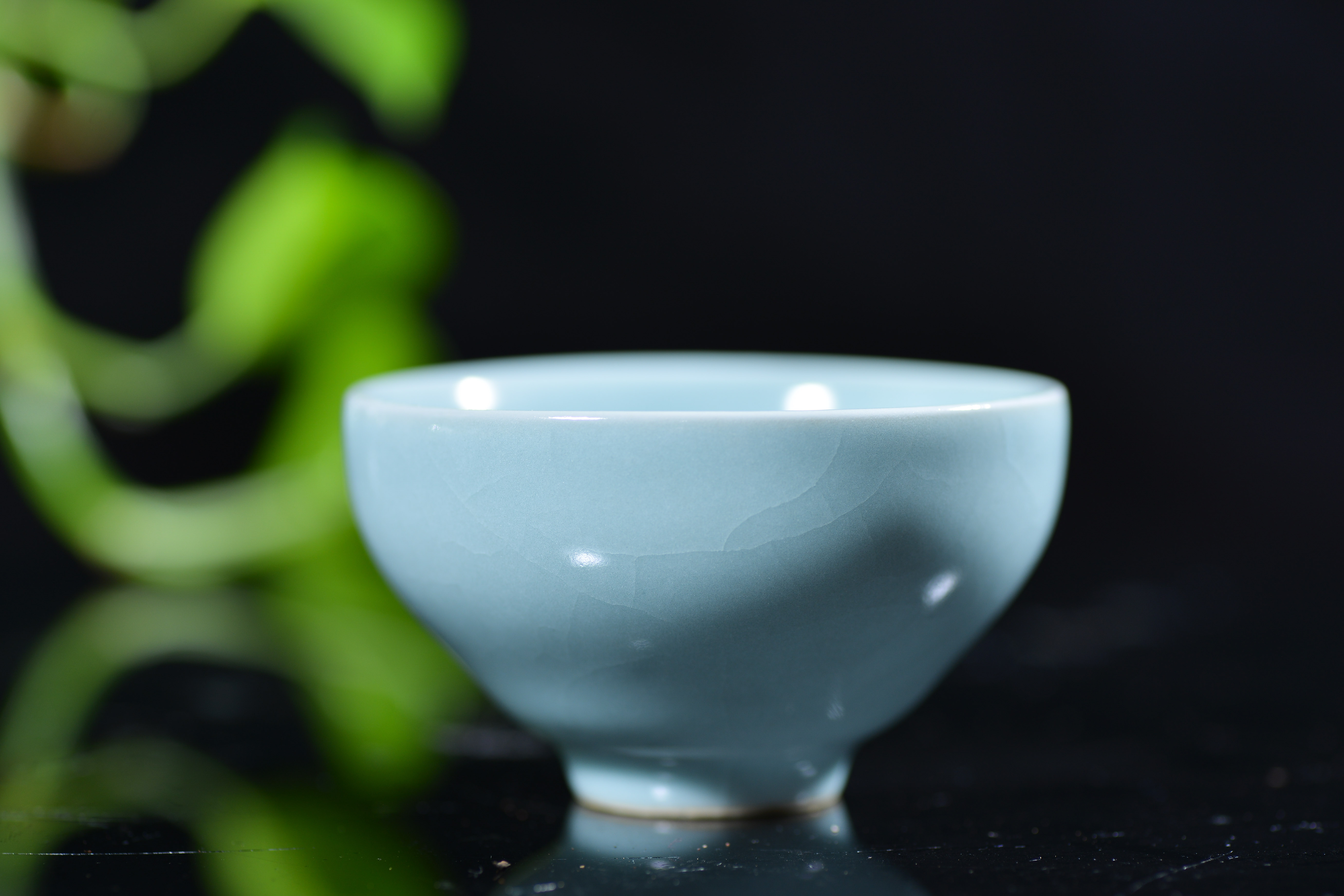 汝瓷 灵秀主人杯 杨聚斌 尺寸7.8*4.2厘米,汝瓷—中国五大名瓷之一,创烧于北宋晚期,为宫廷御用瓷器。金灭北宋后,汝瓷也随之消亡。其开窑时间前后只有二十年,由于烧造时间短暂,传世亦不多,在南宋时,汝瓷已经非常稀有。现今存世的汝瓷,一般认为有65件,其中台北故宫博物院23件,北京故宫博物院17件,上海博物馆8件,英国戴维基金会7件,其他散藏于美、日等博物馆和私人收藏约10件。所以才有“家财万贯,不如汝瓷一片”。 作者杨聚斌出生于1962年2月,因为父亲在陵头陶瓷厂工作,因此杨聚斌自幼受父亲耳濡目染,从少