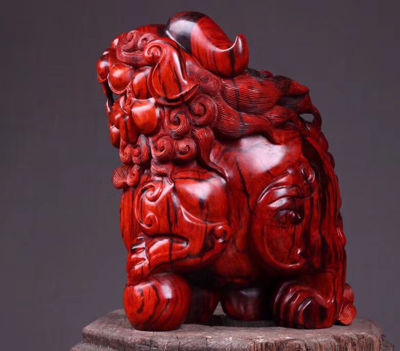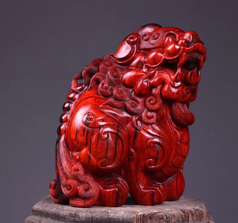 印度小叶紫檀 貔貅,招财镇宅貔貅,选用高油性紫檀老料,纯手工精工制作、动态逼真,尺寸17.5/11/22cm 净重4.3斤。