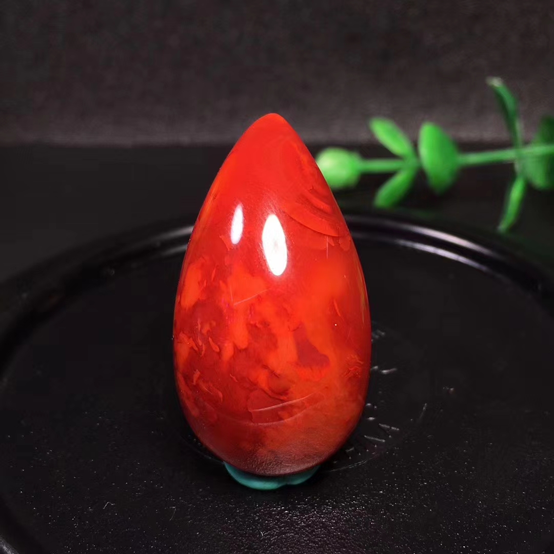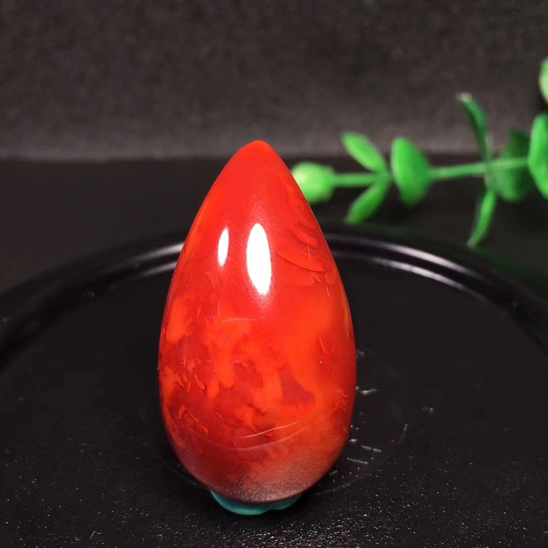 天然瓦西料 南红 吊坠 品相*好,色泽非常红润,满肉火焰红,玉质细腻,干净无杂裂,规格20.2×37.3×13.6mm,,重13.2克。
