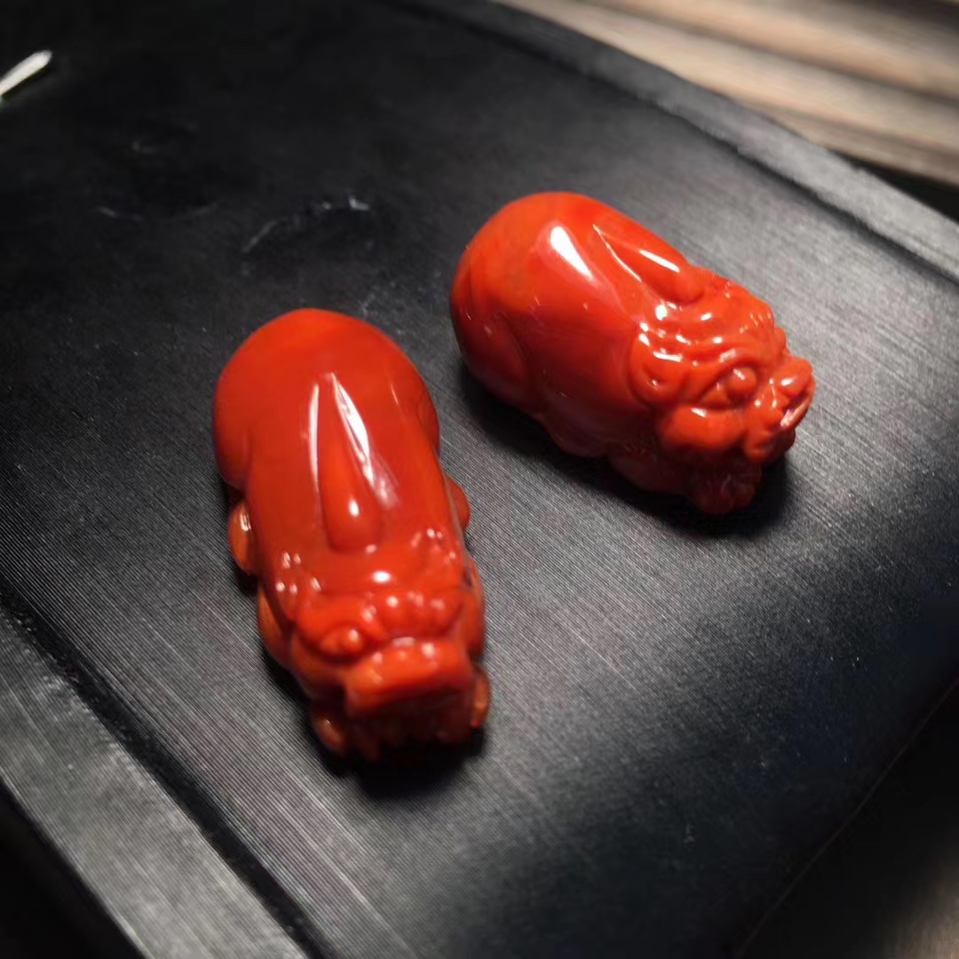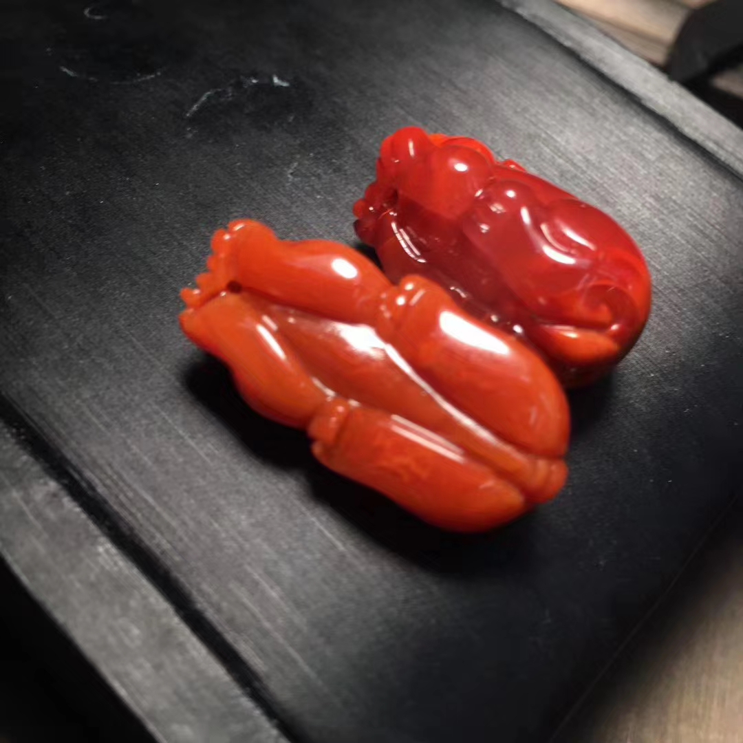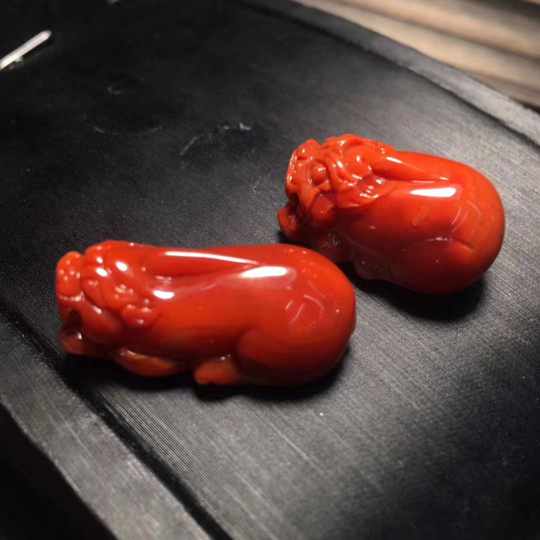*品凉山南红柿子红貔貅,色满肉柿子红,精工雕刻、颜色*红润、实物美,尺寸27.5*13.2*10.1毫米 23.3*14.2*13.4毫米,总重13克,赠送精美挂绳和鉴定证书。