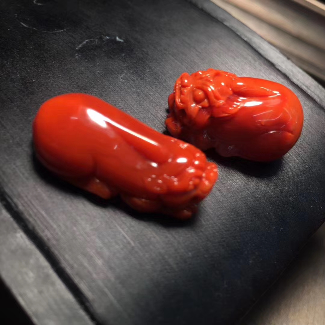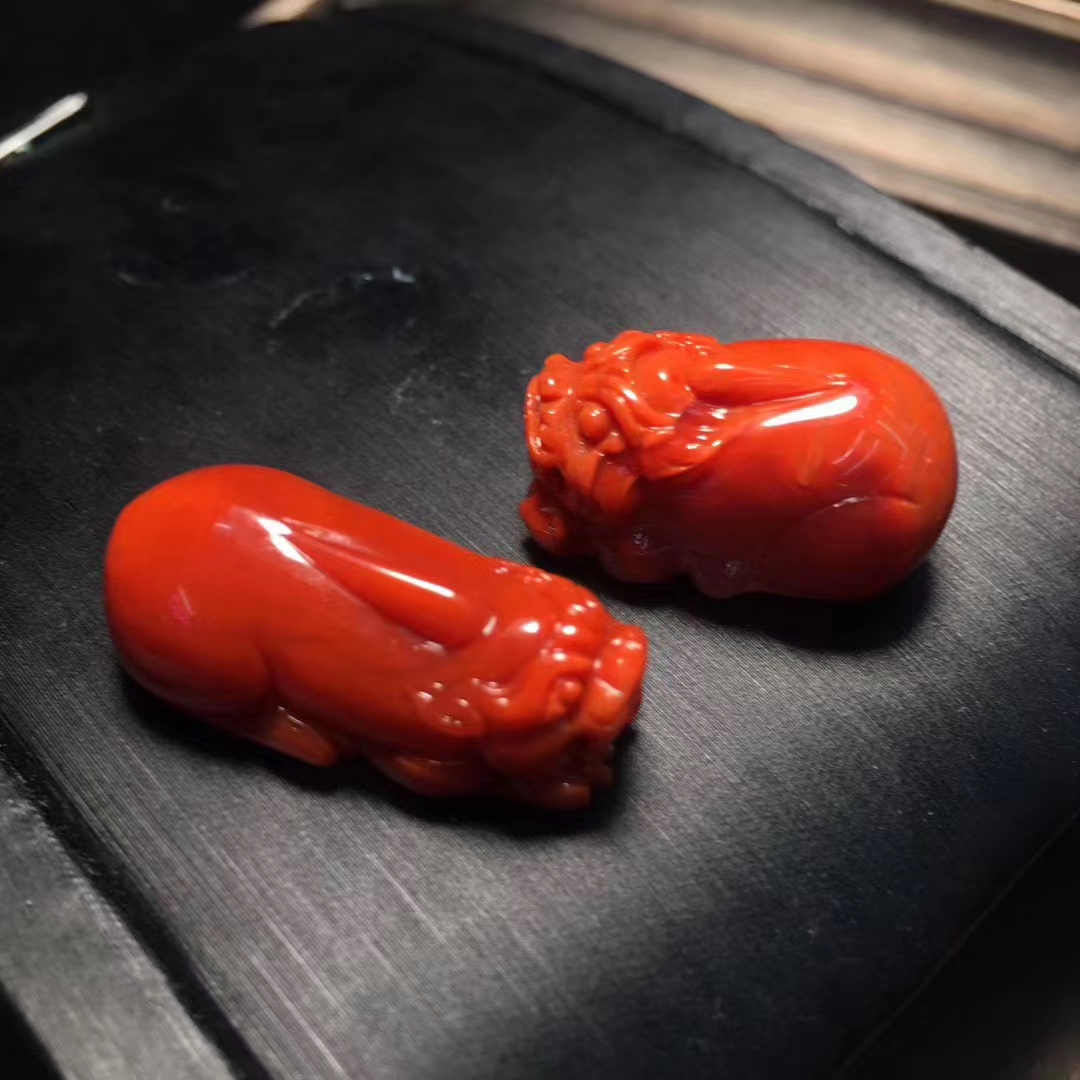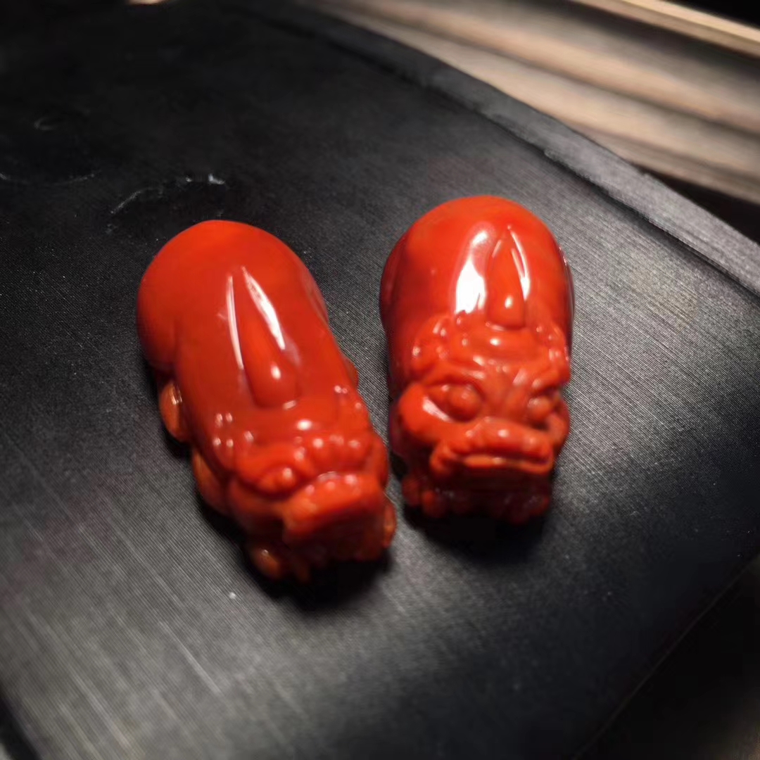 *品凉山南红柿子红貔貅,色满肉柿子红,精工雕刻、颜色*红润、实物美,尺寸27.5*13.2*10.1毫米 23.3*14.2*13.4毫米,总重13克,赠送精美挂绳和鉴定证书。