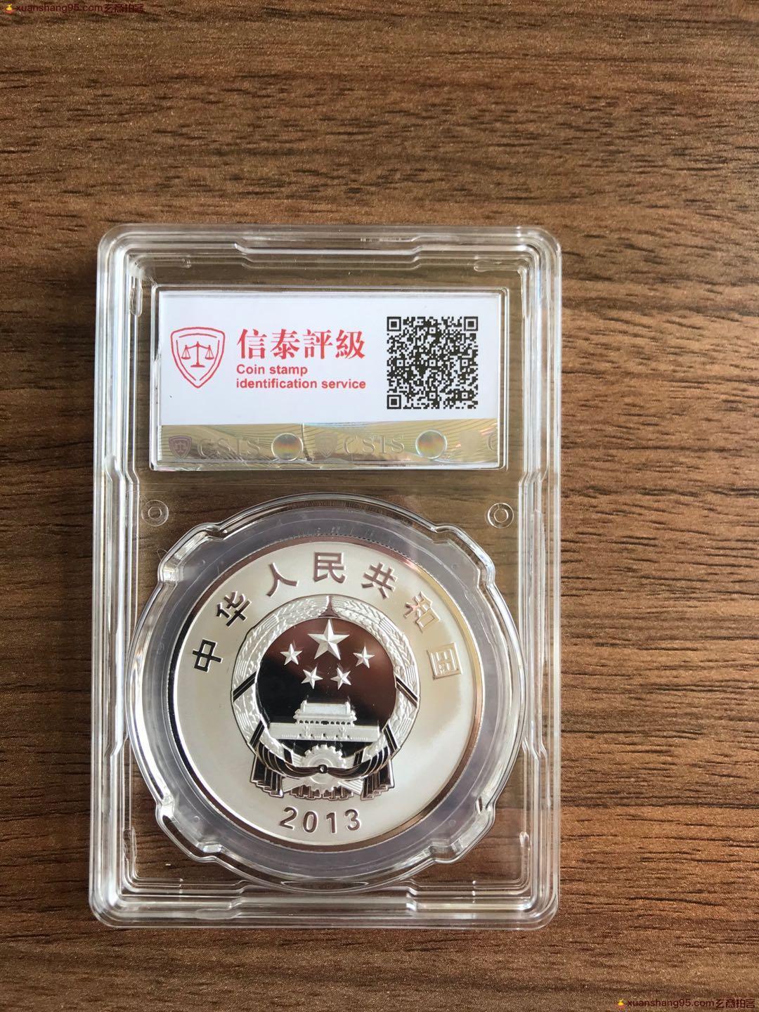 这枚纪念币由中国人民银行2013年1月30日发行,1盎司圆形银质纪念币为精制币,含纯银1盎司,直径40毫米,面额10元,成色99.9%,发行量60000枚。