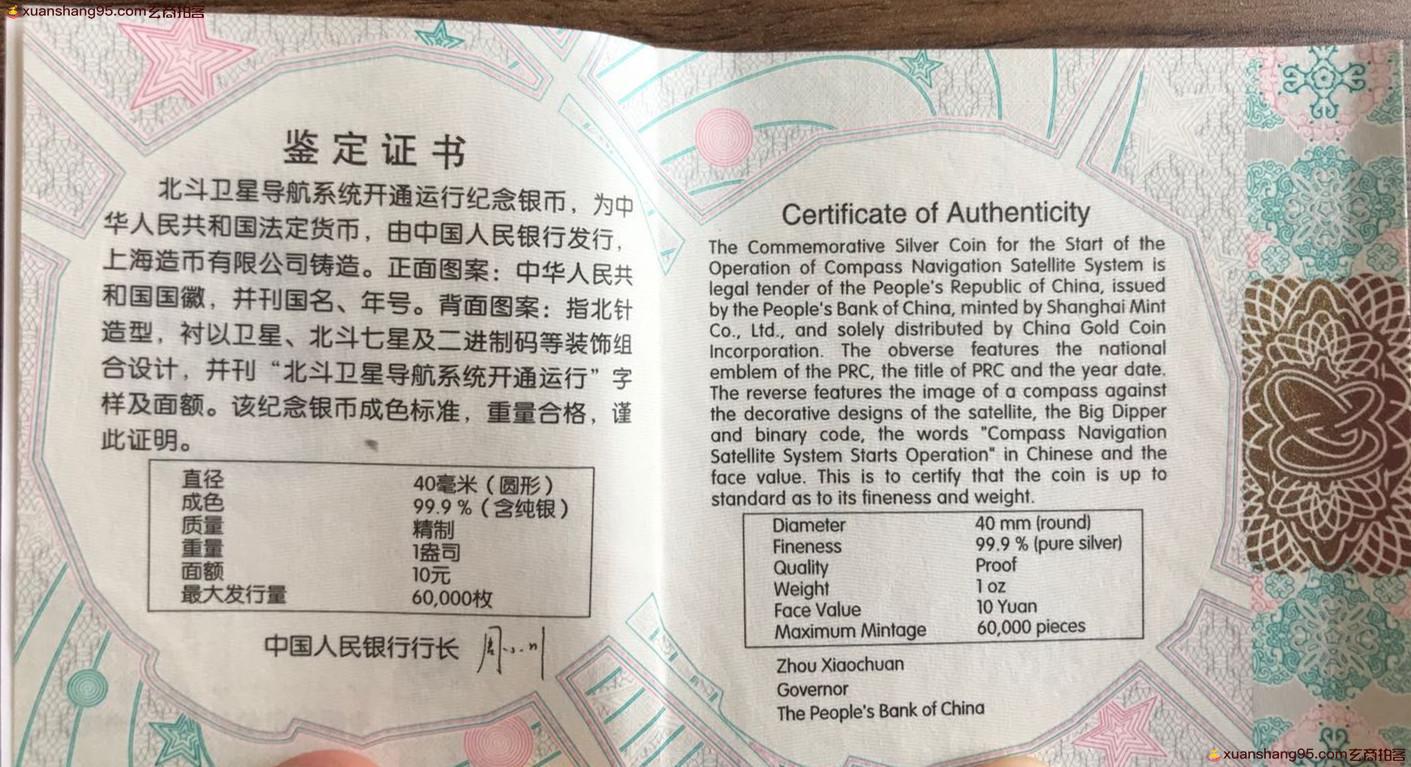 为了庆祝这一盛事,我给大家带来了,北斗卫星1盎司银币封装版!本人购得价是568元,现市场价在560-1000元之间不等,本拍品不设底价,欢迎喜爱着结缘收藏!