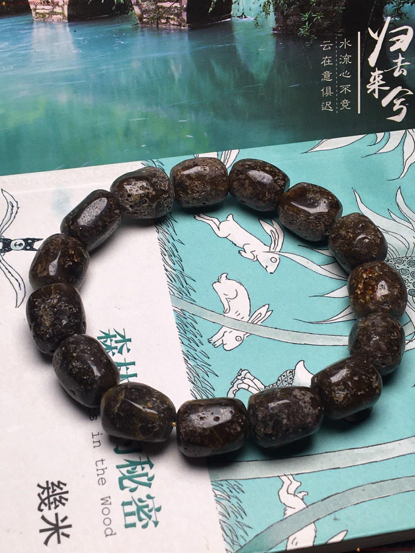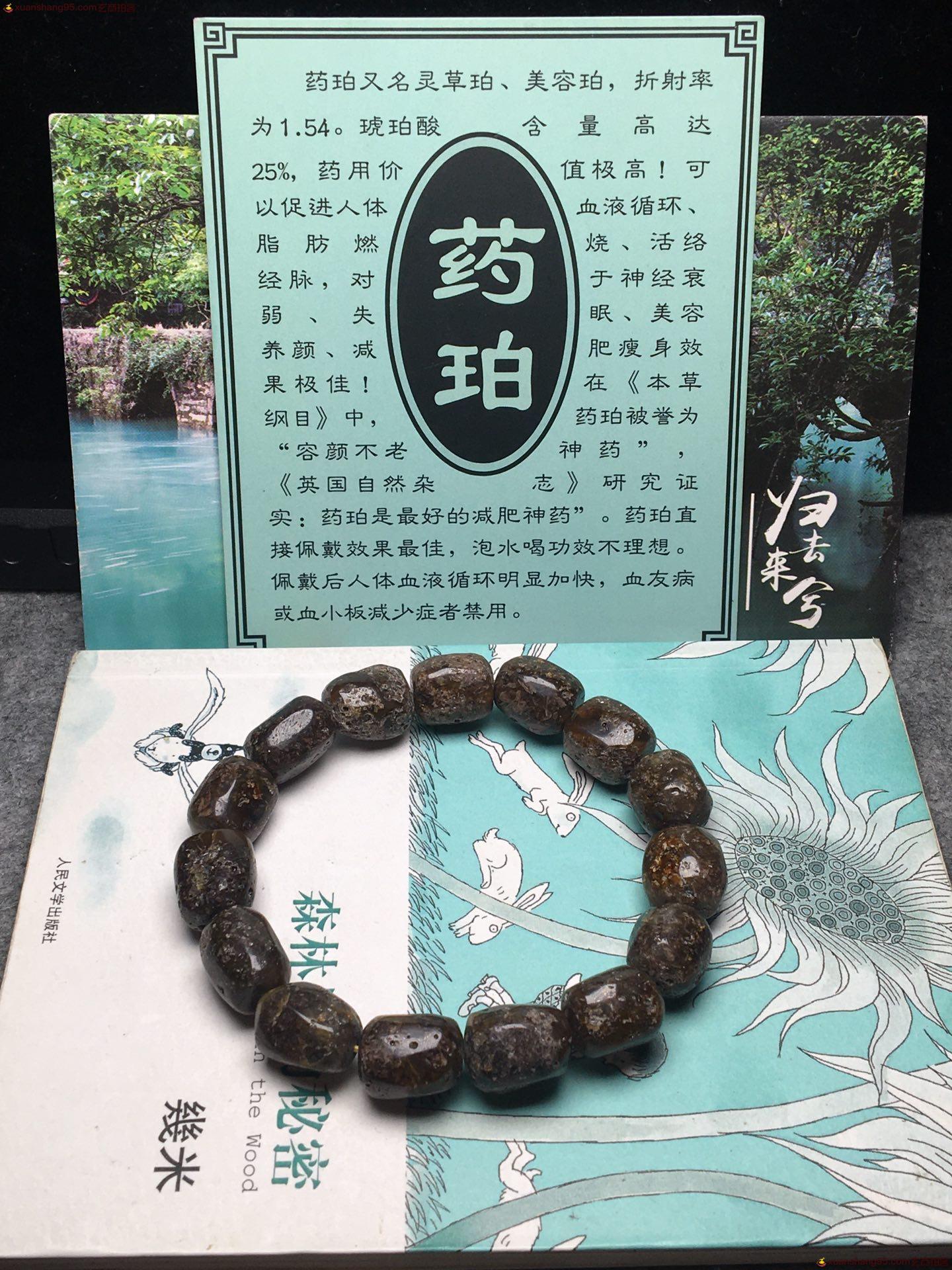 *品 黑药珀 随型手串 颗颗精选 粒粒饱满。药珀的重要作用,是其珍贵的药用价值,药珀可帮助人体血液循环、活络经脉,对于神经衰弱、失眠、惊悸更具助益。唐代《杜阳杂编》指出琥珀可止血疗伤,段成式《酉阳杂俎》谓白獭髓混琥珀治面颊伤。明代李时珍在《本草纲目》更记载:琥珀气味甘平、无毒、能安五脏、定魂魄、消淤血、通五淋、壮心明目、止痛安神、破血生机,治疗心神不宁、失眠多梦、惊风癫痫、月经停闭、小便涩痛、淤血等病。