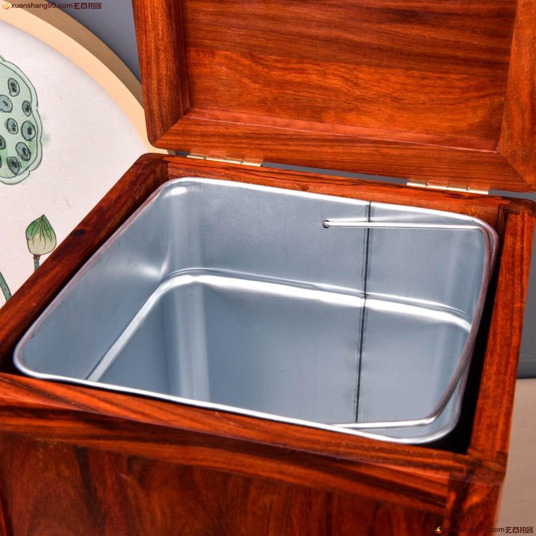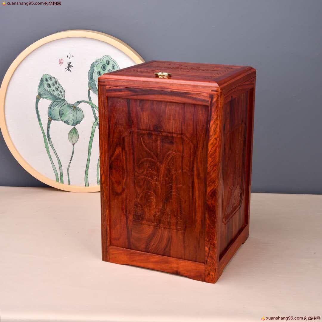 赞比亚 血檀 雕花垃圾桶 黄铜合页 提手 茶室 会所 高档大气上档次,尺寸23*23*36厘米 重量3737克。
