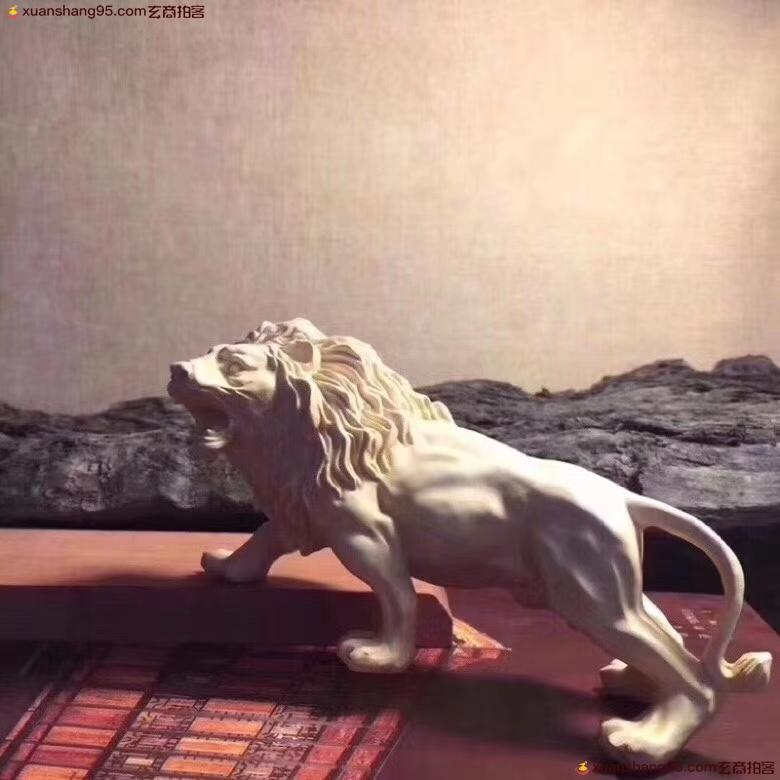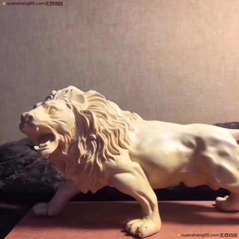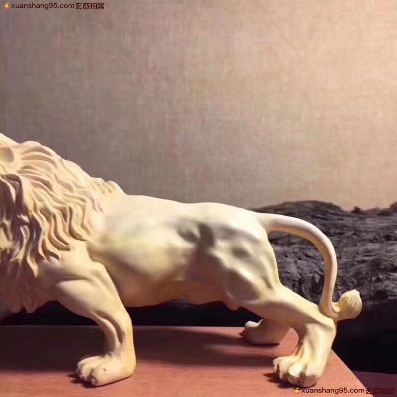 黄杨木 威震四方 相貌凶猛,勇不可挡,威震四方,是百兽之王。人们都把狮子视为瑞兽。尺寸18*9*7.5厘米。