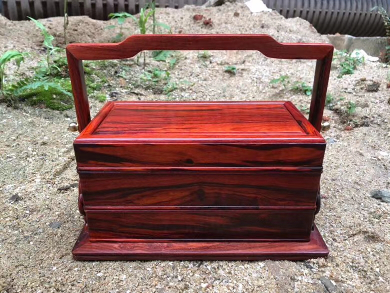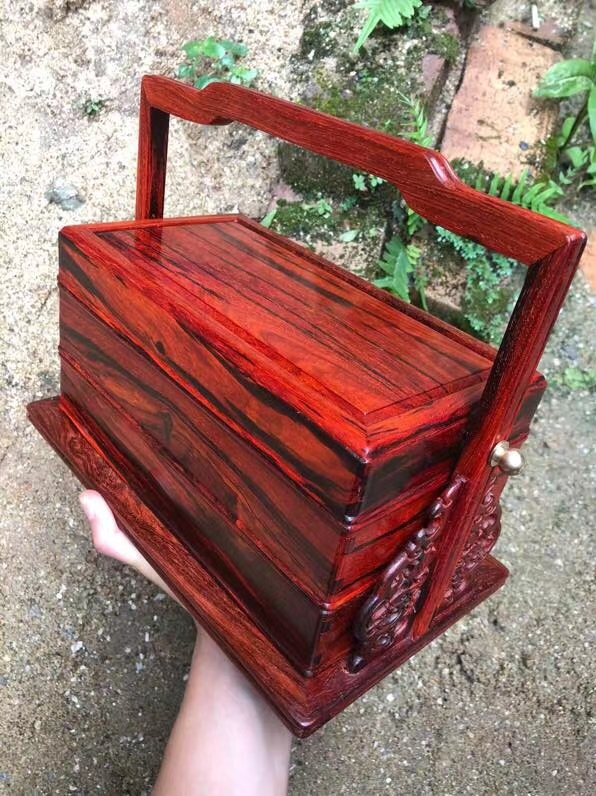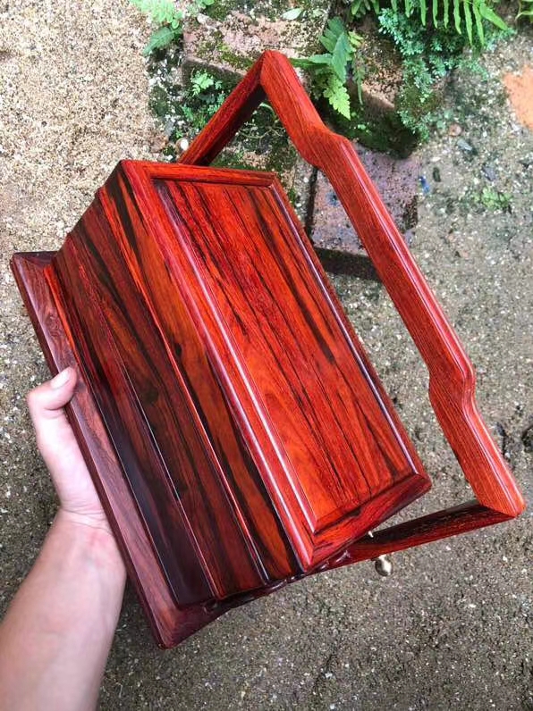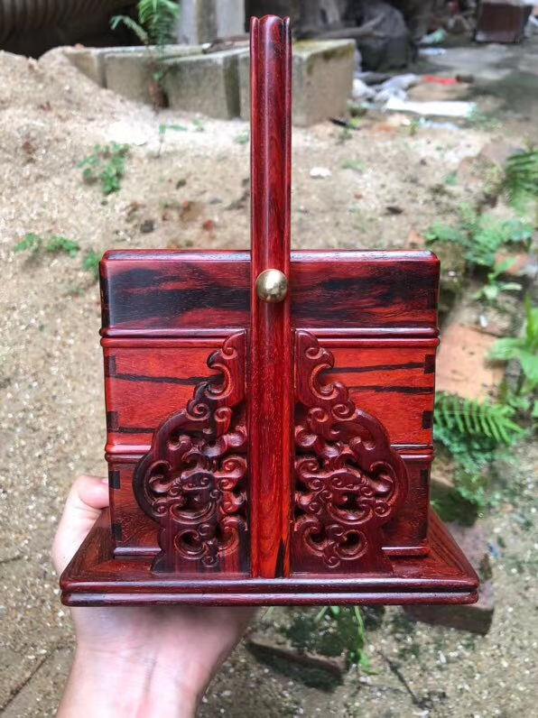印度小叶紫檀提篮,精品特惠,老料,密度不错,老师傅纯手工 榫卯结构打造,长30.5cm,宽16.5cm,高22.8cm,重3.37斤。