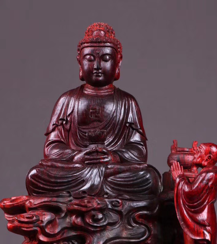 印度小叶紫檀佛、藏识本非染,清净无暇秽,长时积福智,喻若净月轮。上等印度小叶紫檀 手工实木清刀制,尺寸16/12/25cm 净重3.7斤