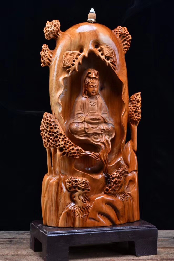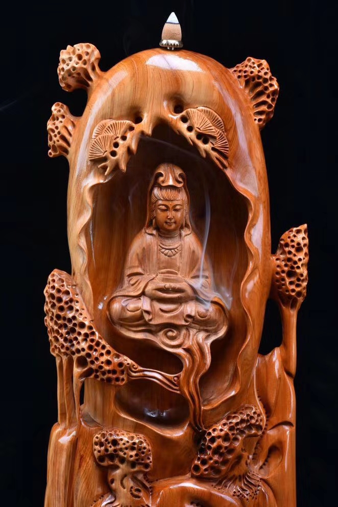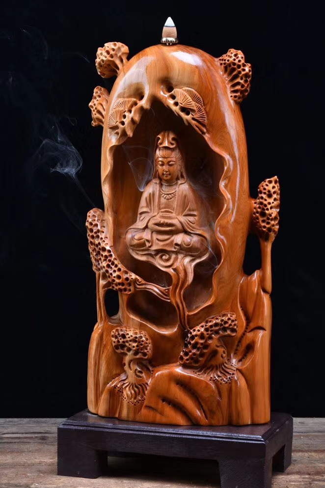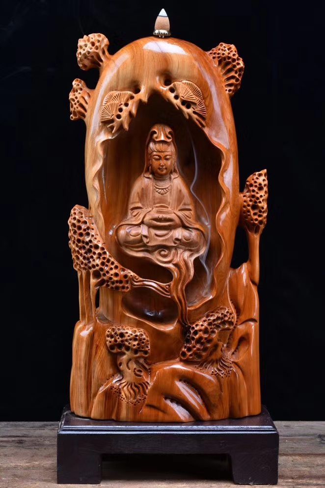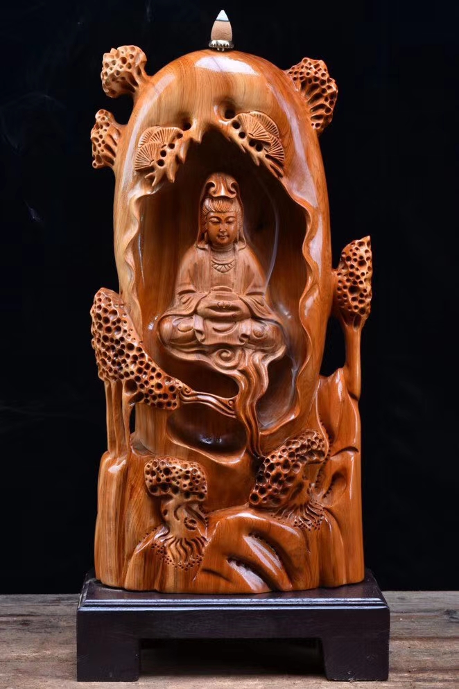 太行崖柏成化老料 观音 倒流香 雕工精美,缕空设计,材质干净,油性十足。高50厘米 宽20厘米 重8.6斤。