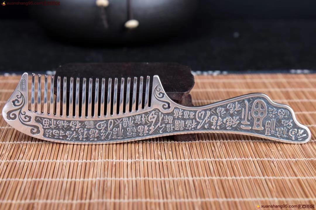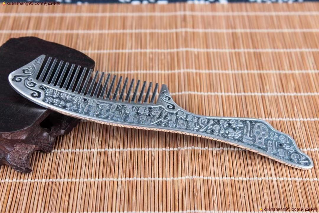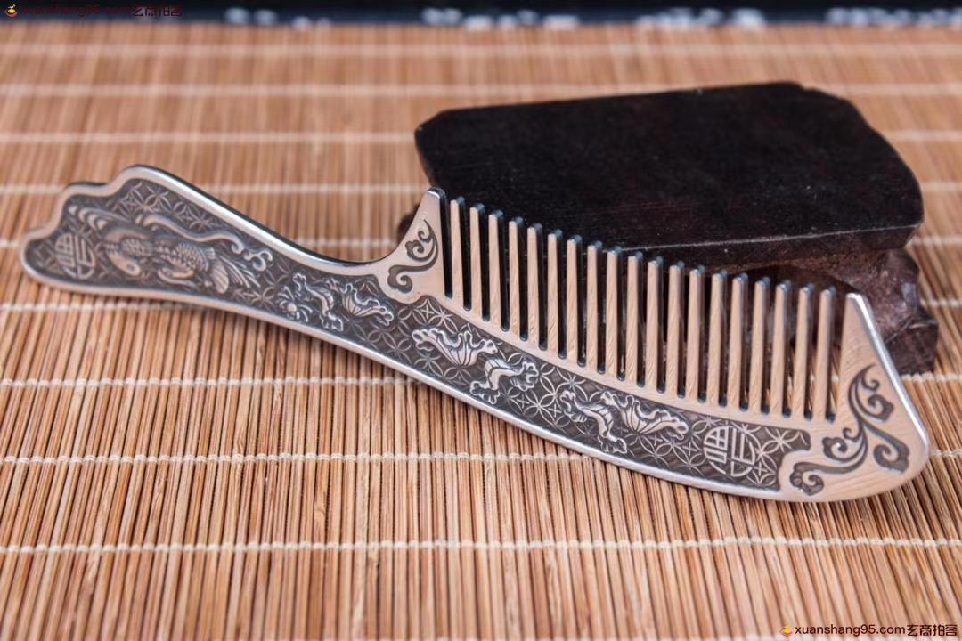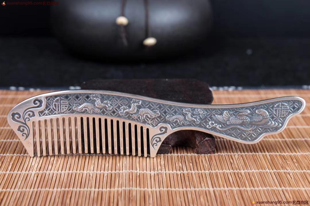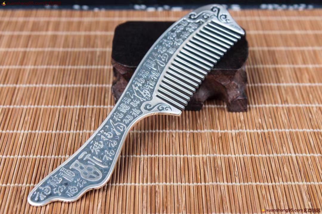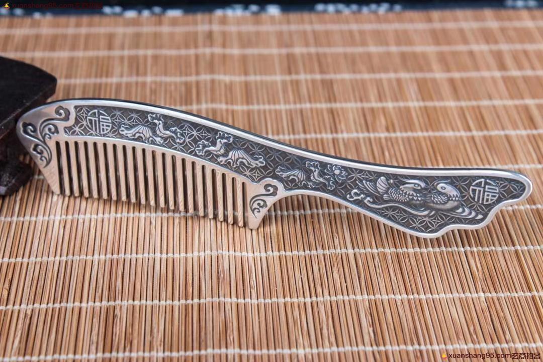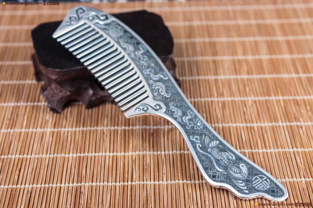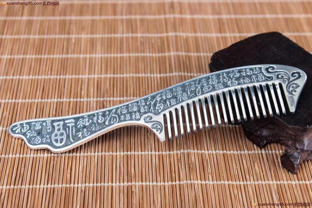 双喜临门 梳子 丽江雪花 可食用银 纯手工打造 工艺精湛,打磨到位,实用收藏佳品。尺寸14.5*3.3厘米 重量60克。