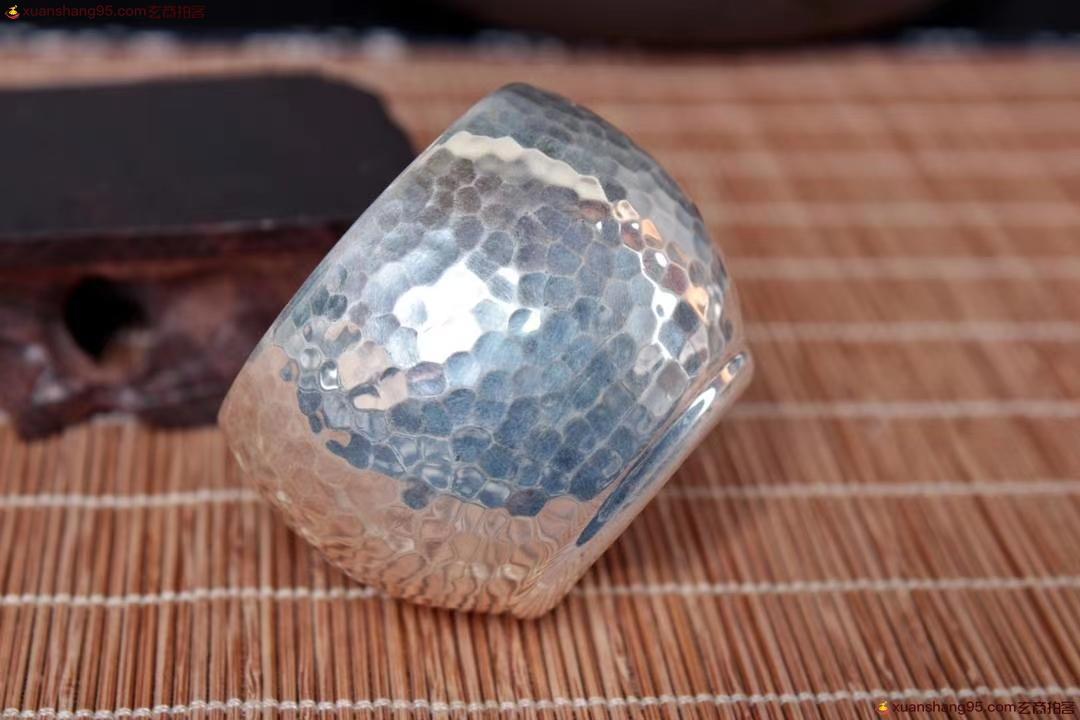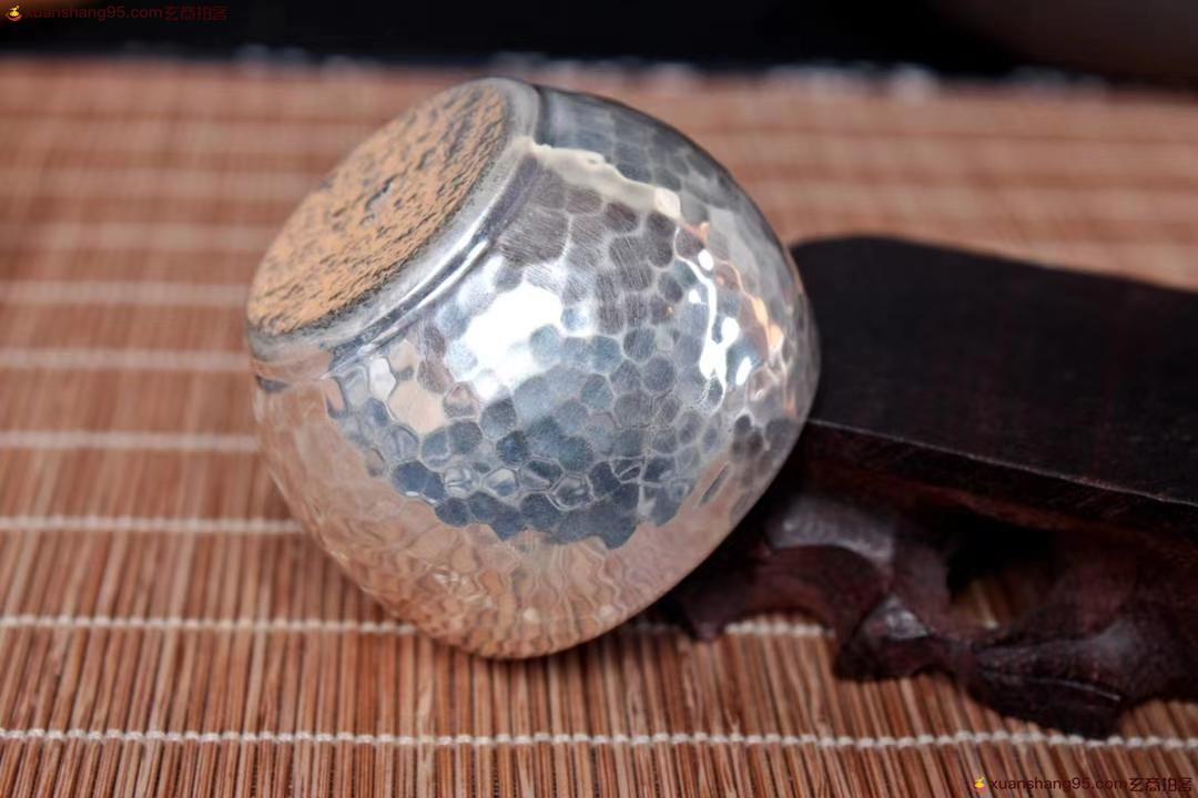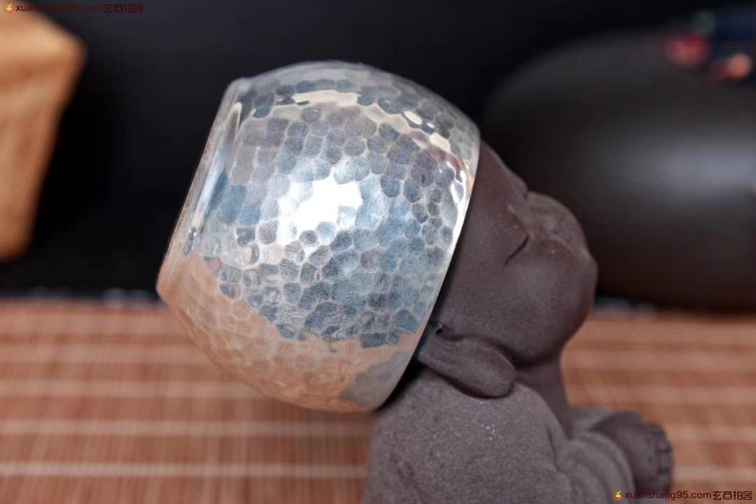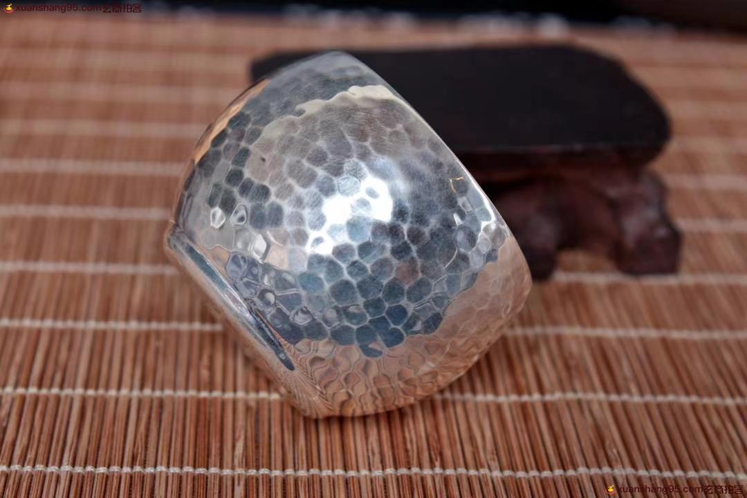 丽江雪花银 马克杯 可食用银 手工敲打制造,尺寸3.7*5.1厘米 重量61克。