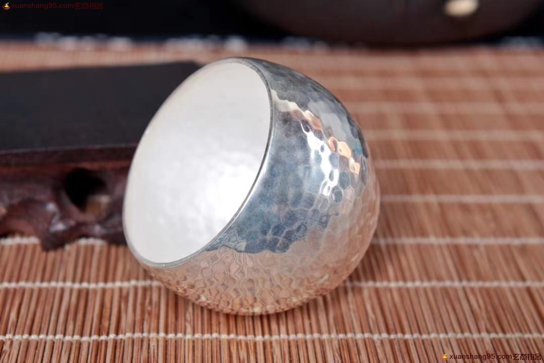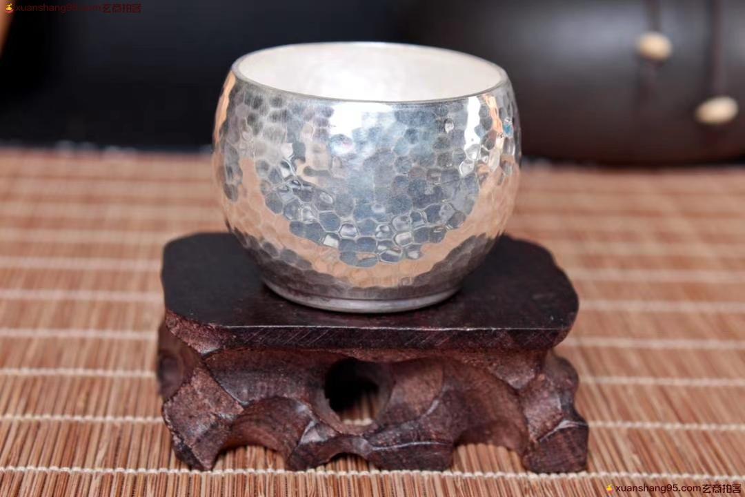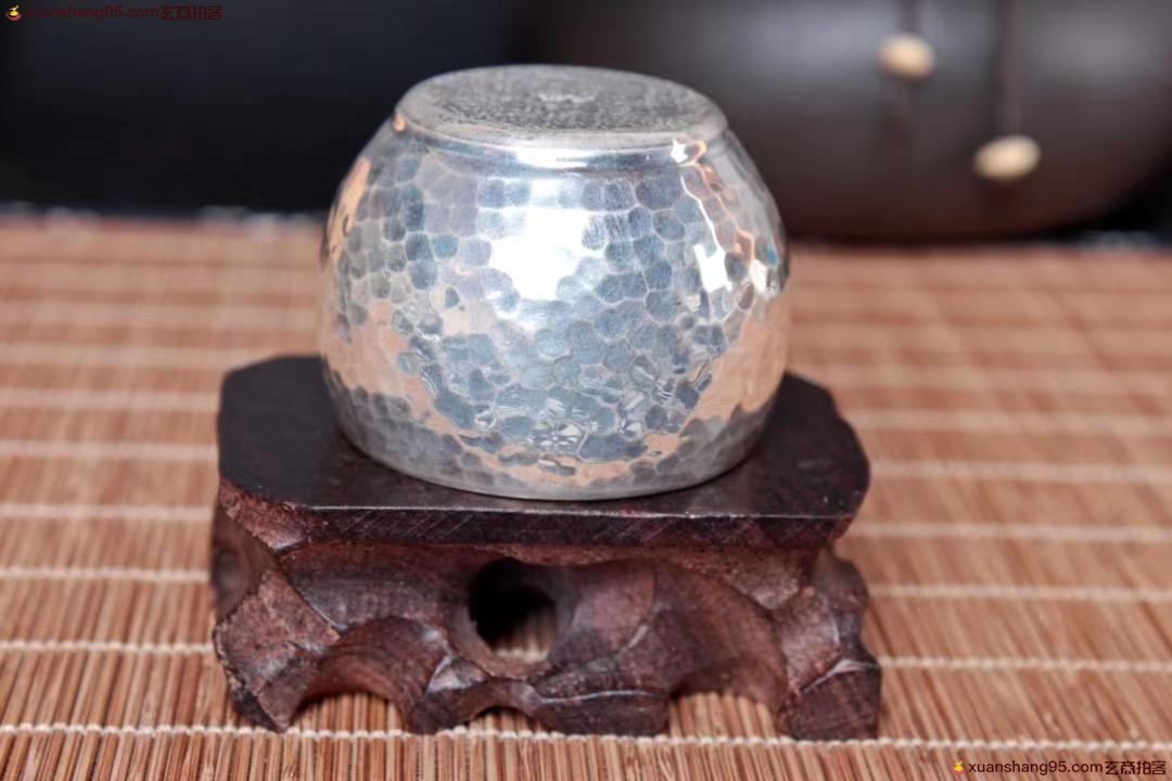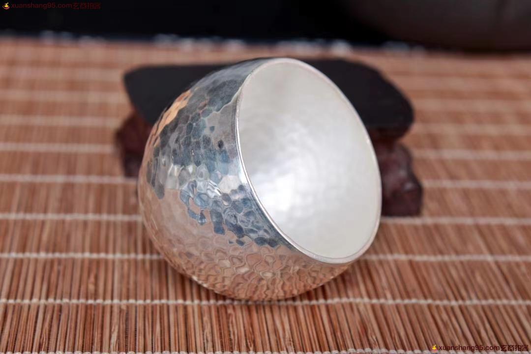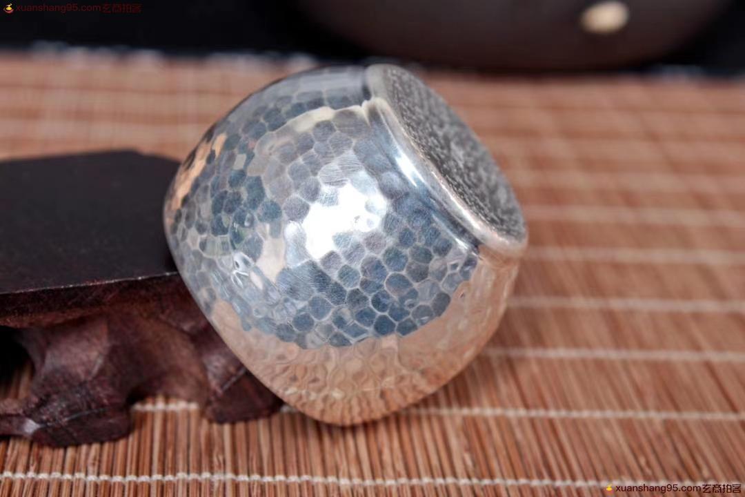 丽江雪花银 马克杯 可食用银 手工敲打制造,尺寸3.7*5.1厘米 重量61克。