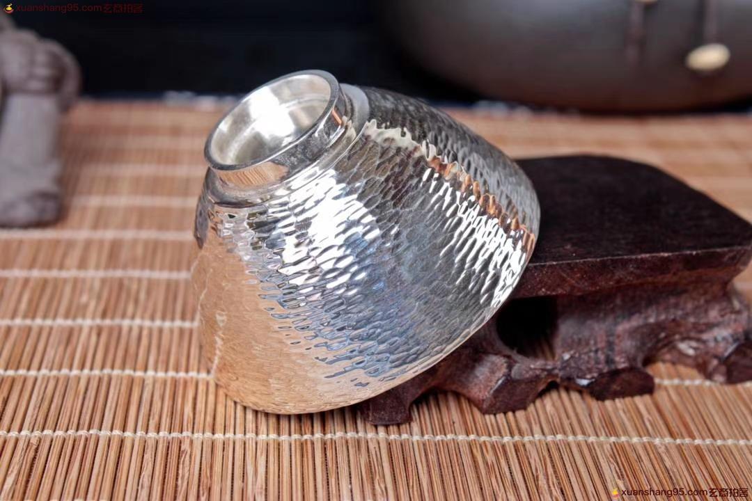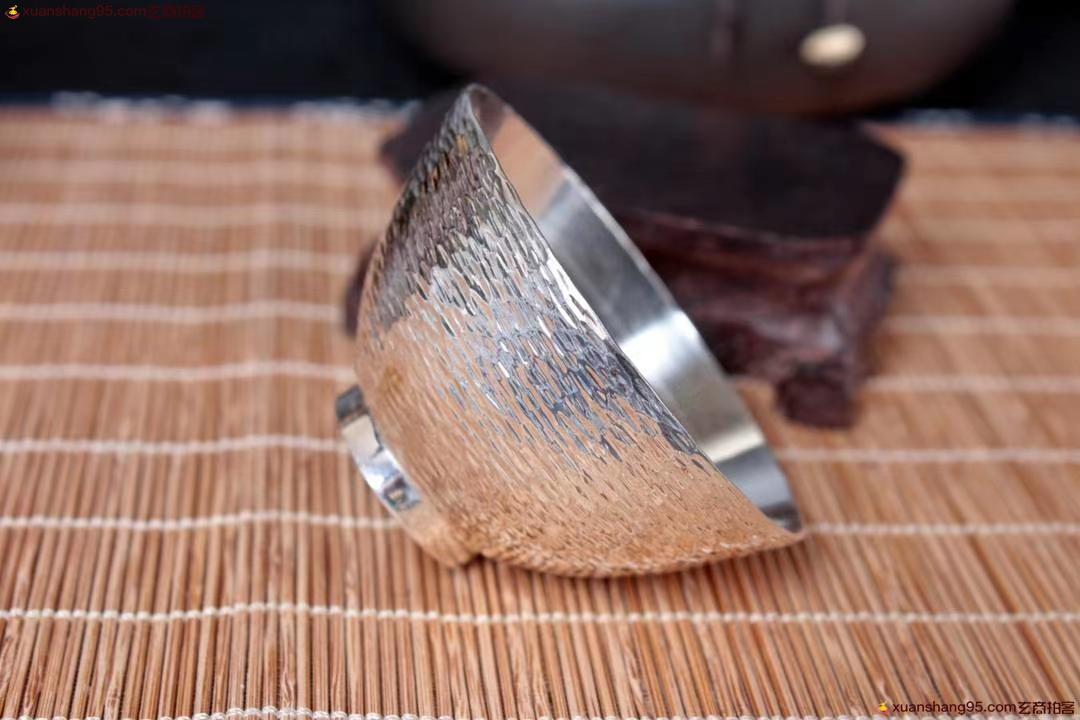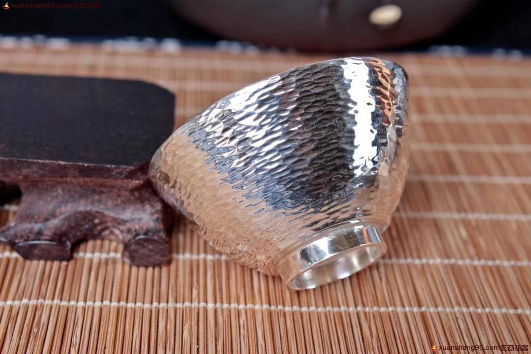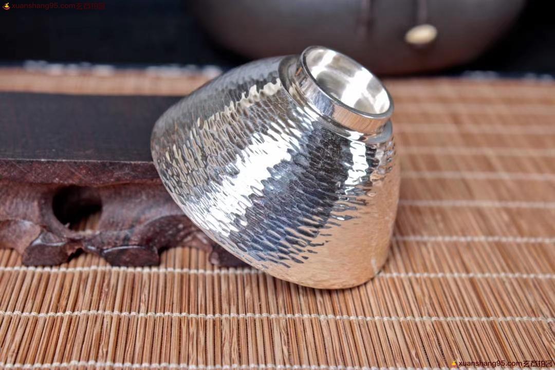 丽江雪花银 马克杯 纯手工打造 工艺精湛,打磨到位,实用收藏佳品。尺寸3.6*6.1厘米 重量65克。