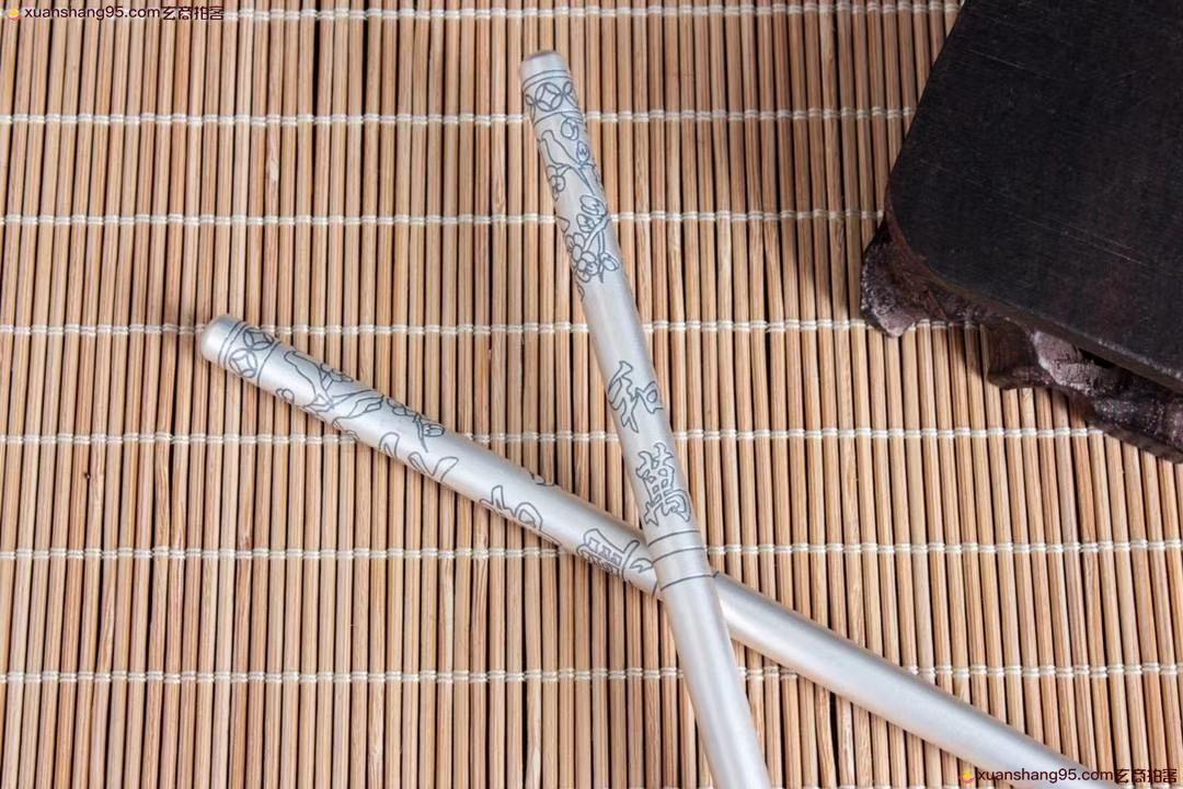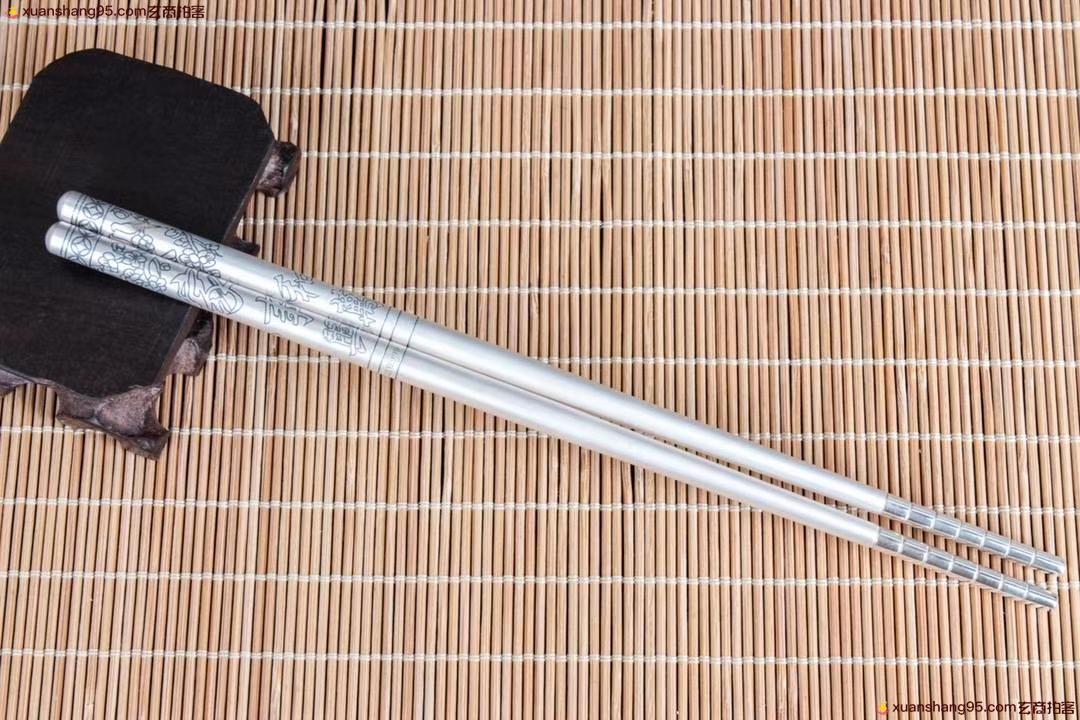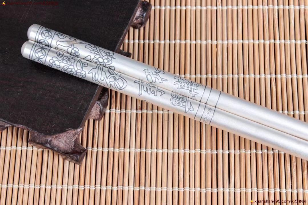 丽江雪花银 家和万事兴 纯银筷子 可食用银 防滑设计 纯手工打造 工艺精湛,打磨到位,实用收藏佳品。尺寸20*0.65厘米 重量46克。