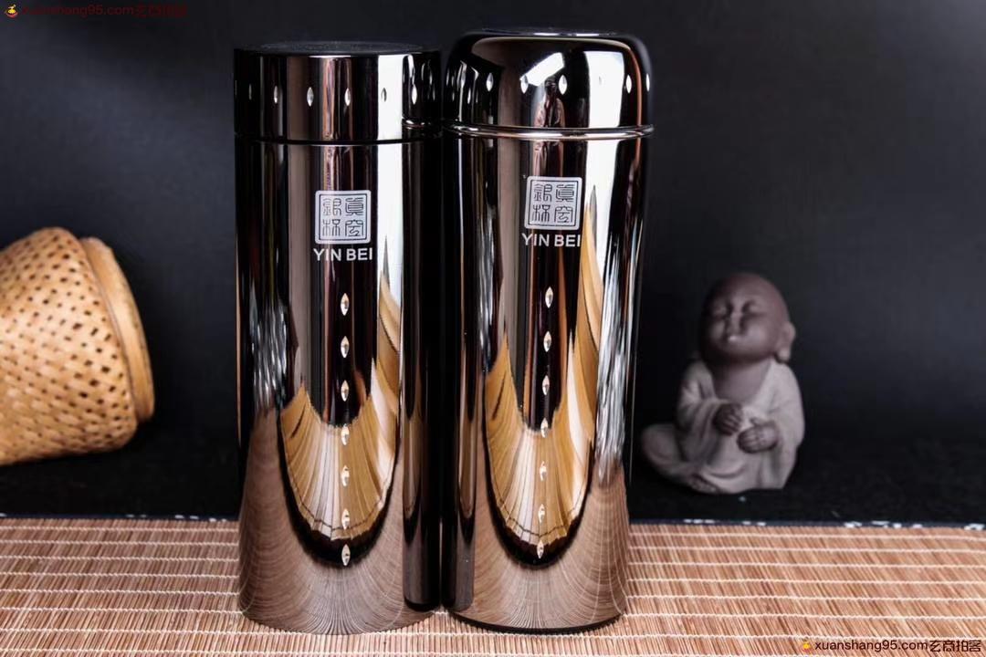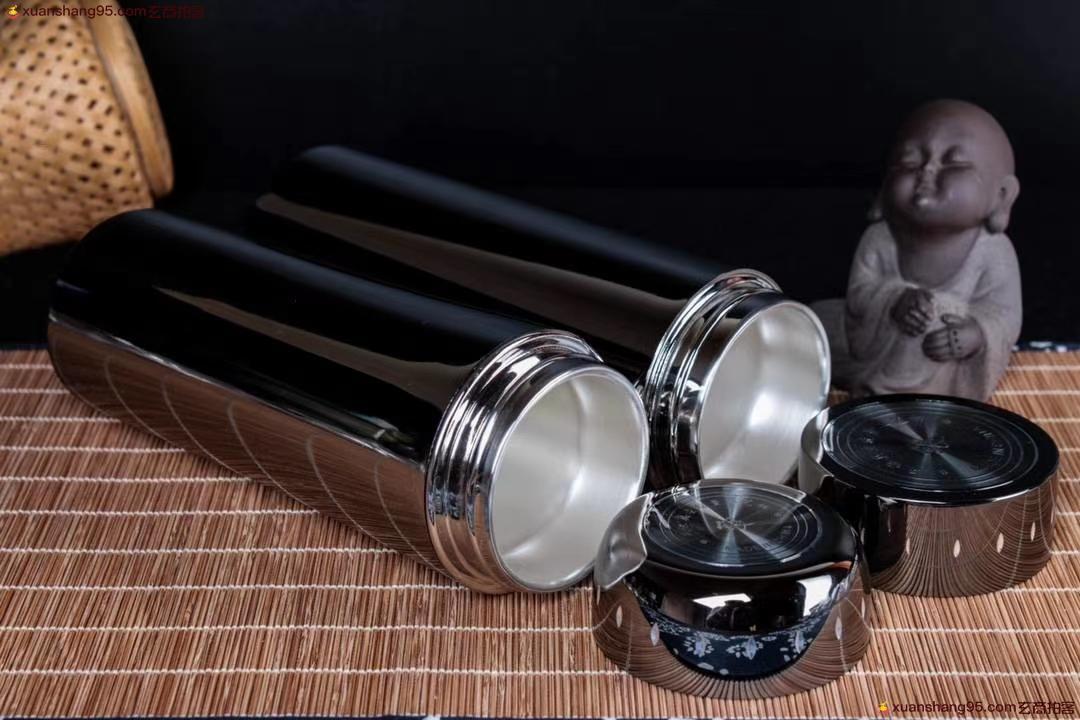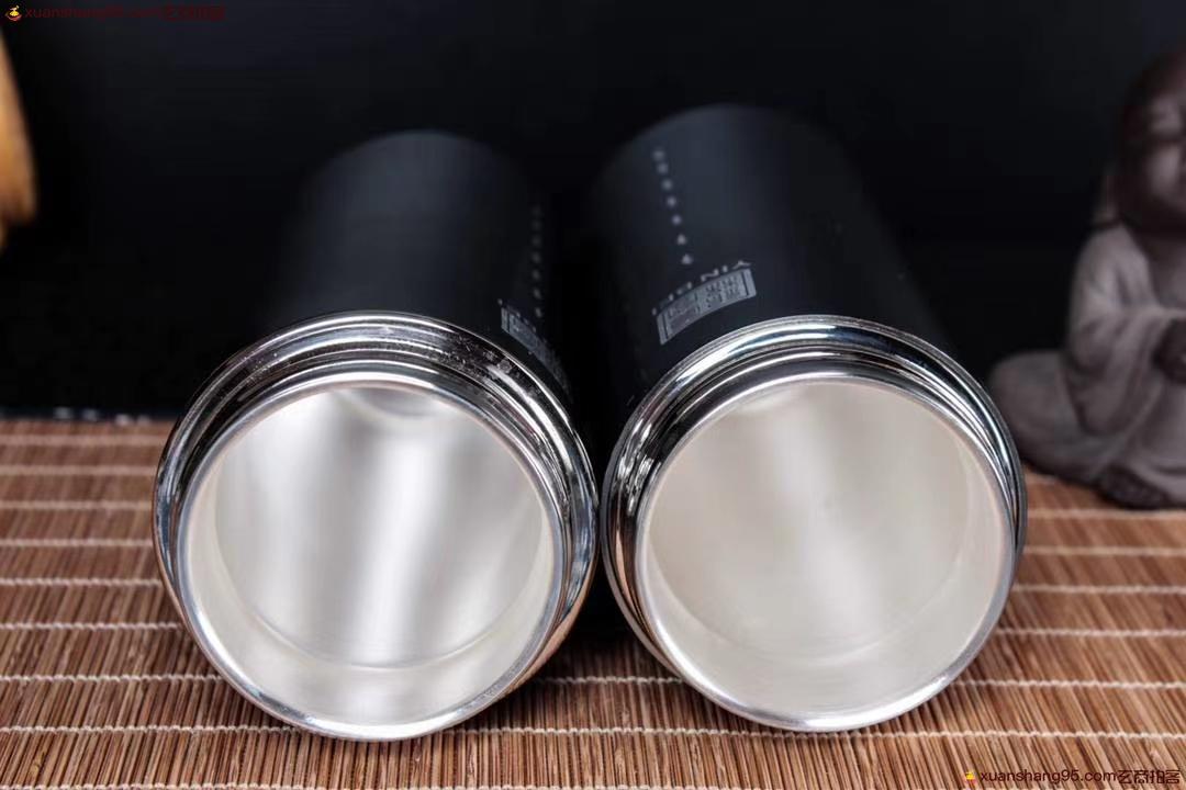 钛合金 保温杯 纯银内胆 高级工艺钛合金外壳,丽江雪花银内胆,可食用银,纯手工打造 工艺精湛,打磨到位,实用收藏佳品。尺寸18*6.6厘米 容量300毫升。