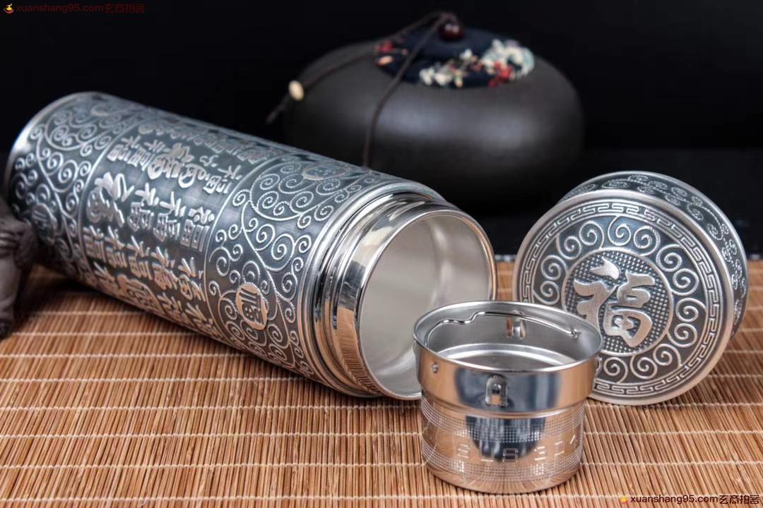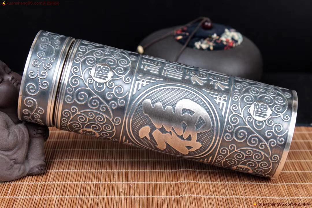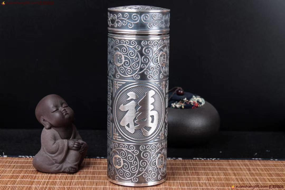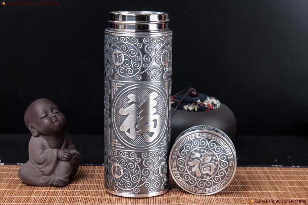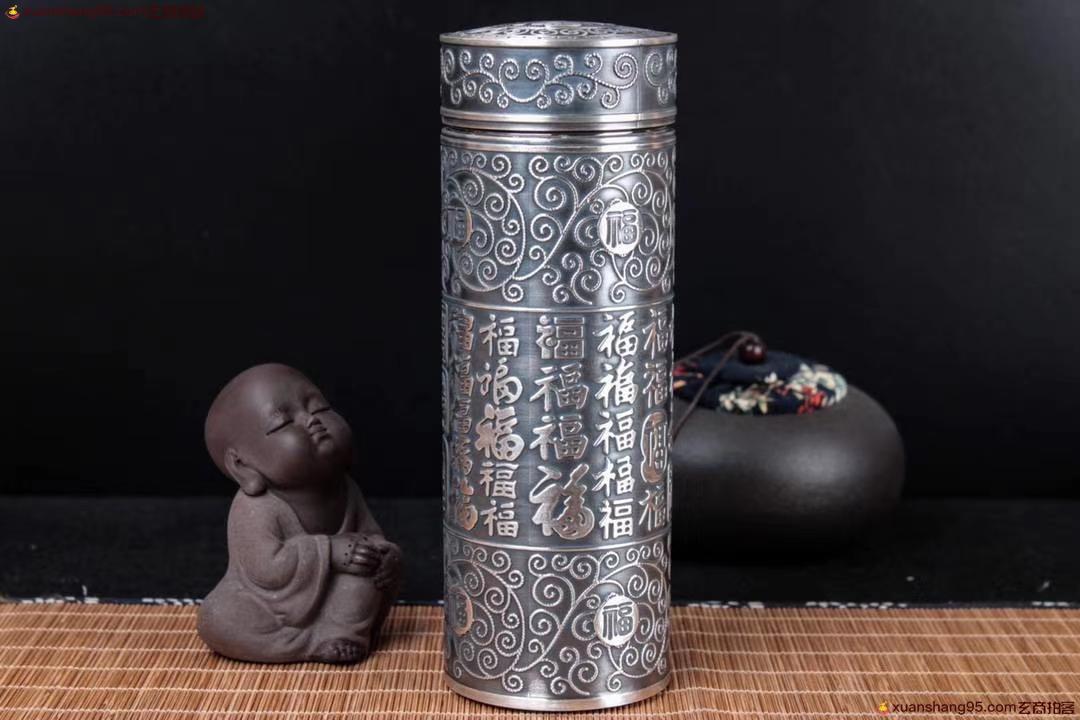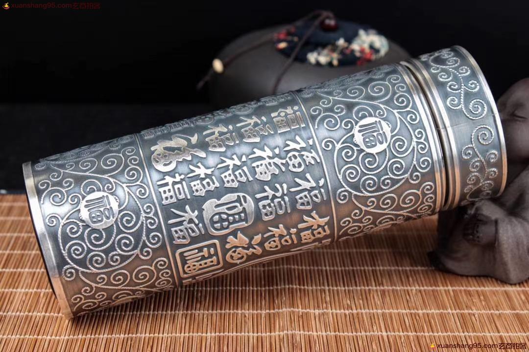 丽江雪花银 百福杯 顶级拉丝工艺 里外纯银 纯手工打造 工艺精湛,打磨到位,实用收藏佳品。尺寸18*6.5厘米 重量542克。