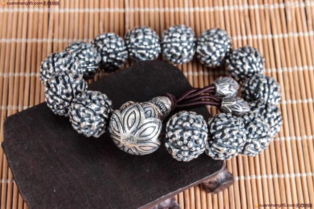 丽江雪花银 金钢佛头 手串
