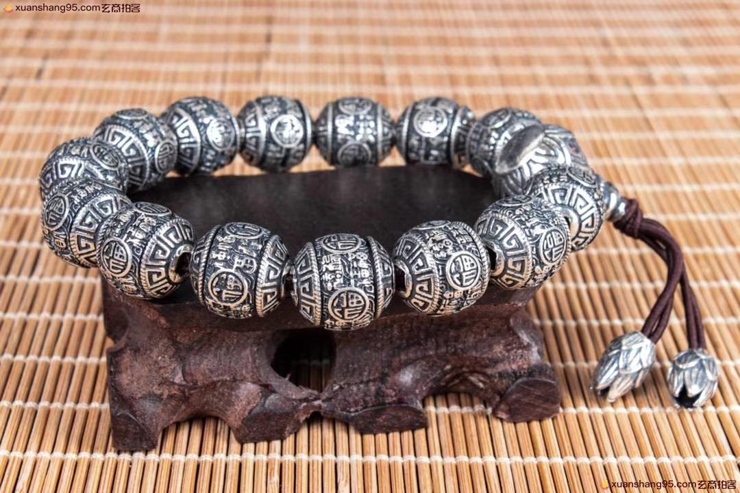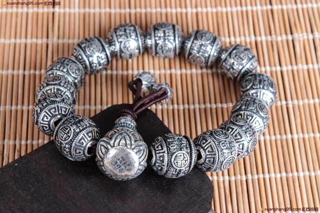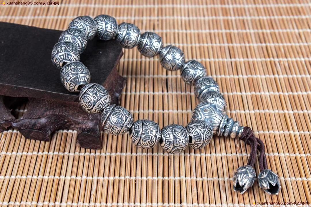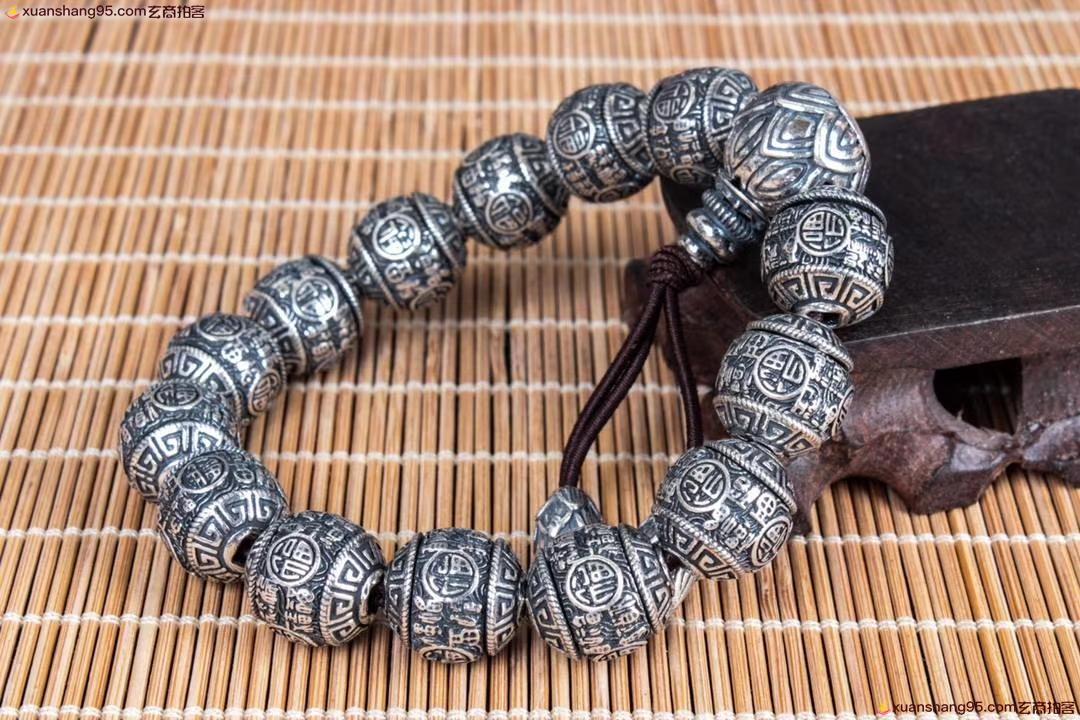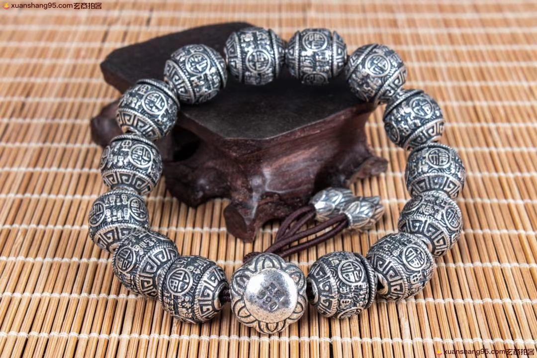 丽江雪花银 转运福字手串 纯手工打造 工艺精湛,打磨到位,实用收藏佳品。尺寸1.1厘米 重量86克。