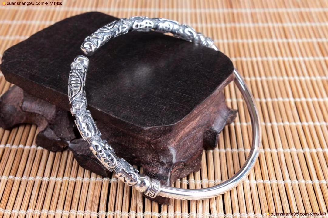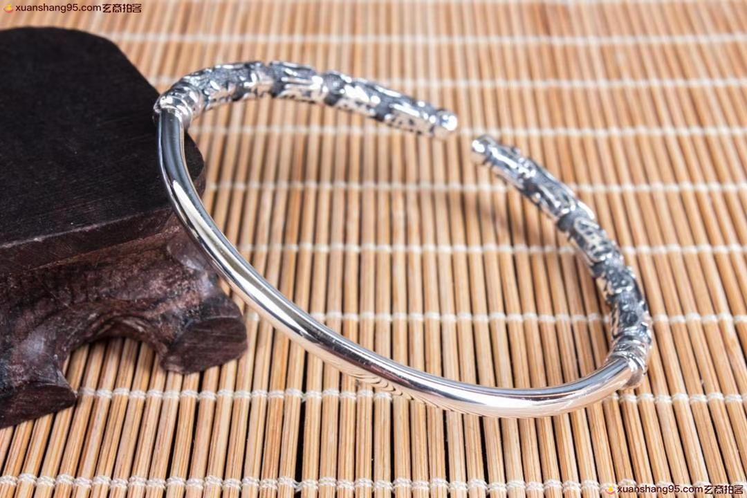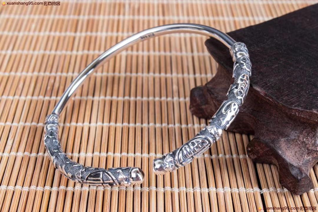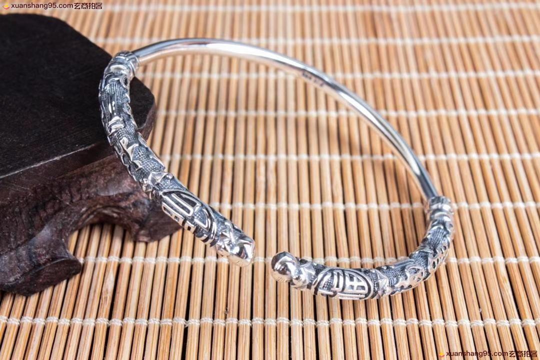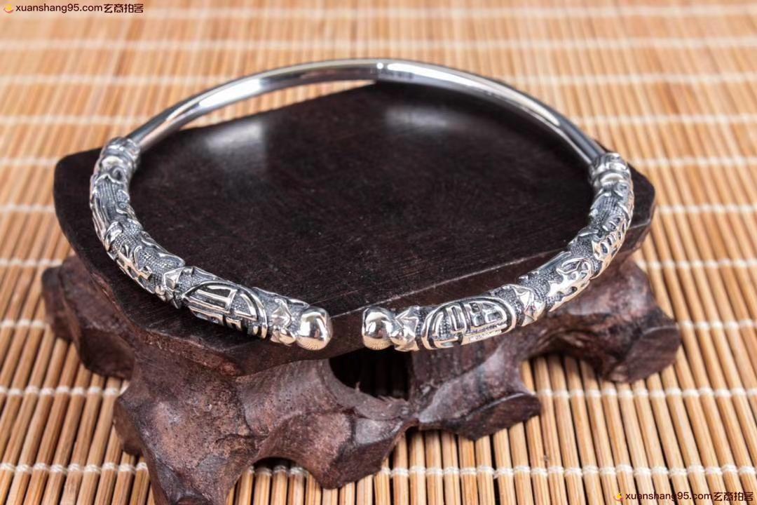 福字圆柱手镯 活口克调节 纯手工打造 工艺精湛,打磨到位,实用收藏佳品。宽度0.5厘米 内径5.7厘米 重量23克。