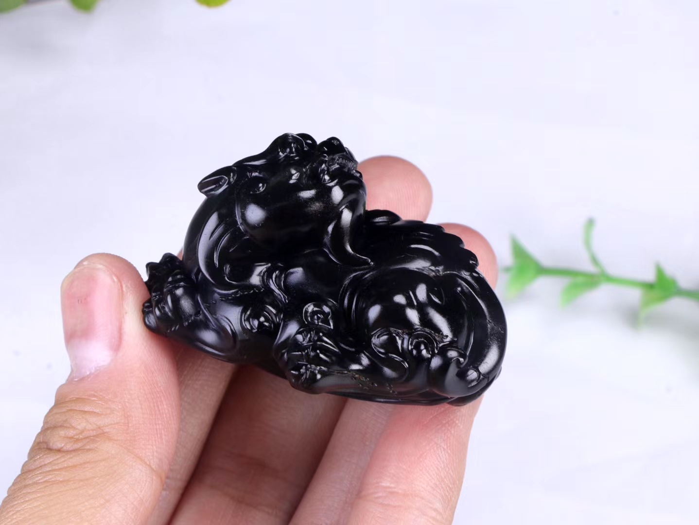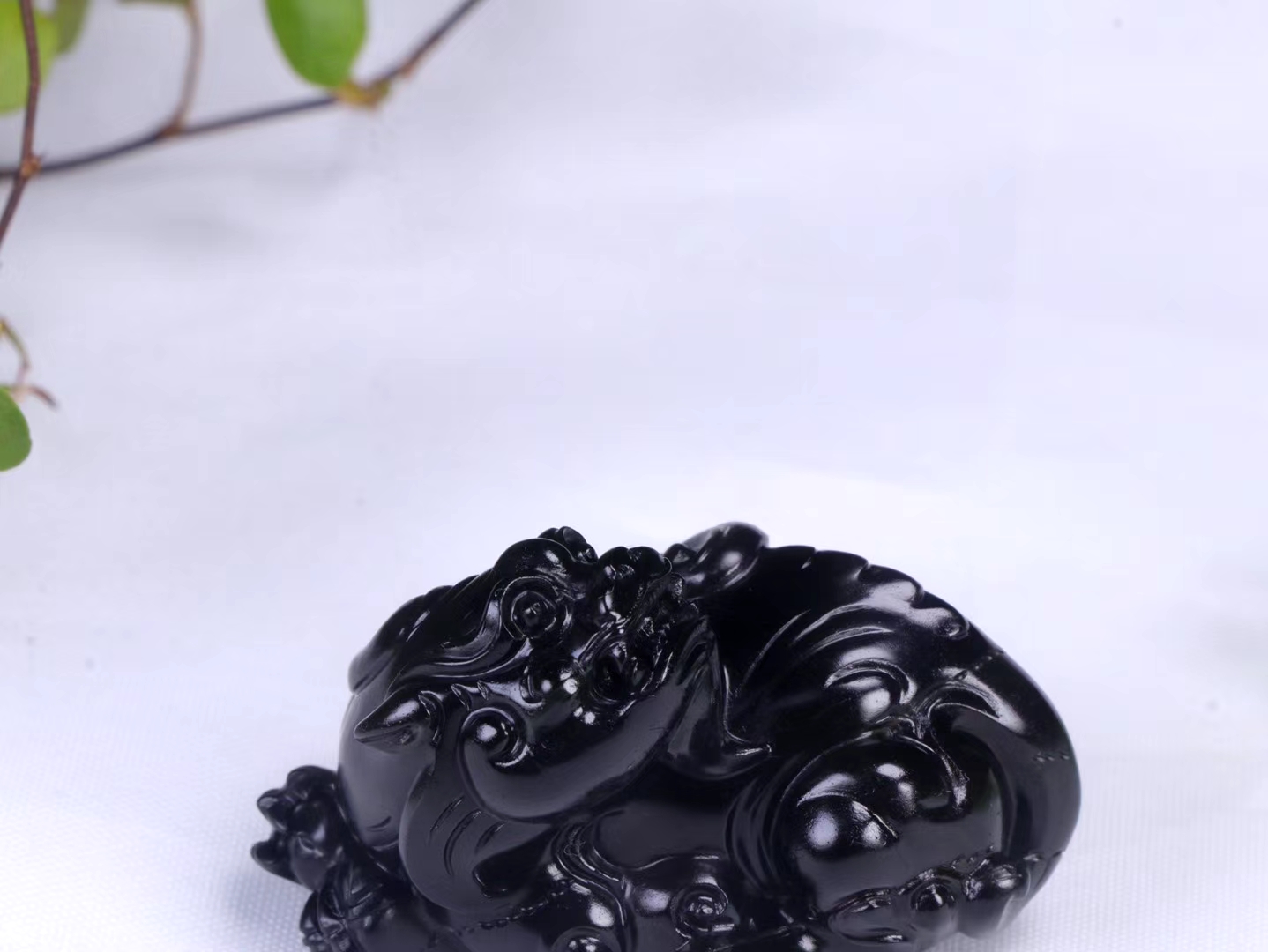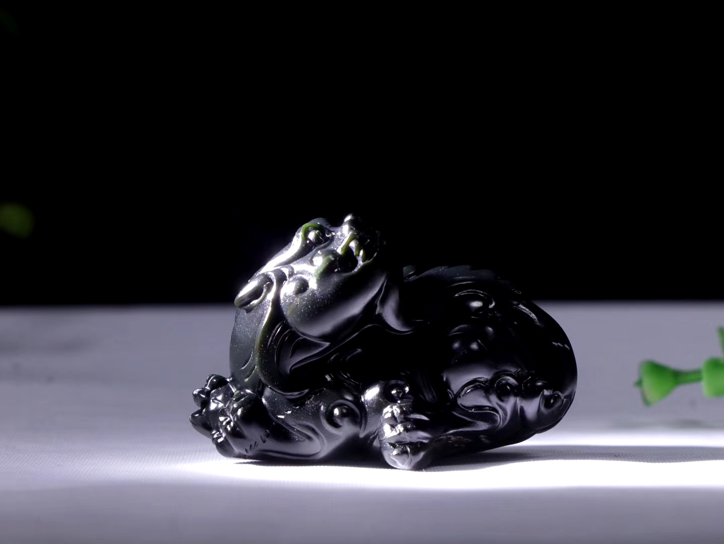 【招财貔貅】精品和田玉墨 貔貅挂件,玉质温润细腻,油性十足,貔貅趴卧姿,圆眼鼓凸有神,阔嘴宽鼻,兽相威严,于灵动中显出霸气。貔貅素有招财进宝,财源广进,辟护身之说。重49克,尺寸46.5-31-29毫米。