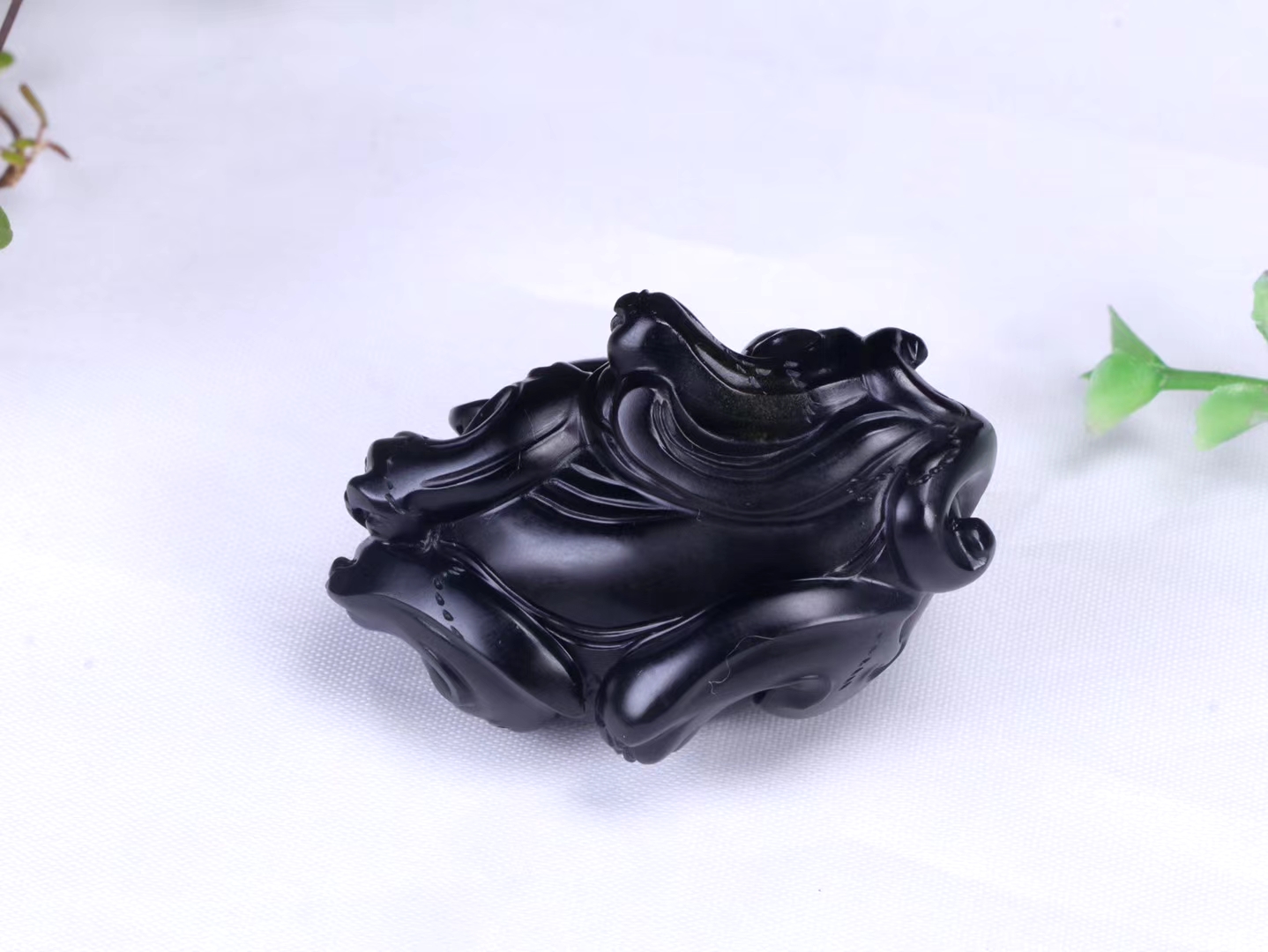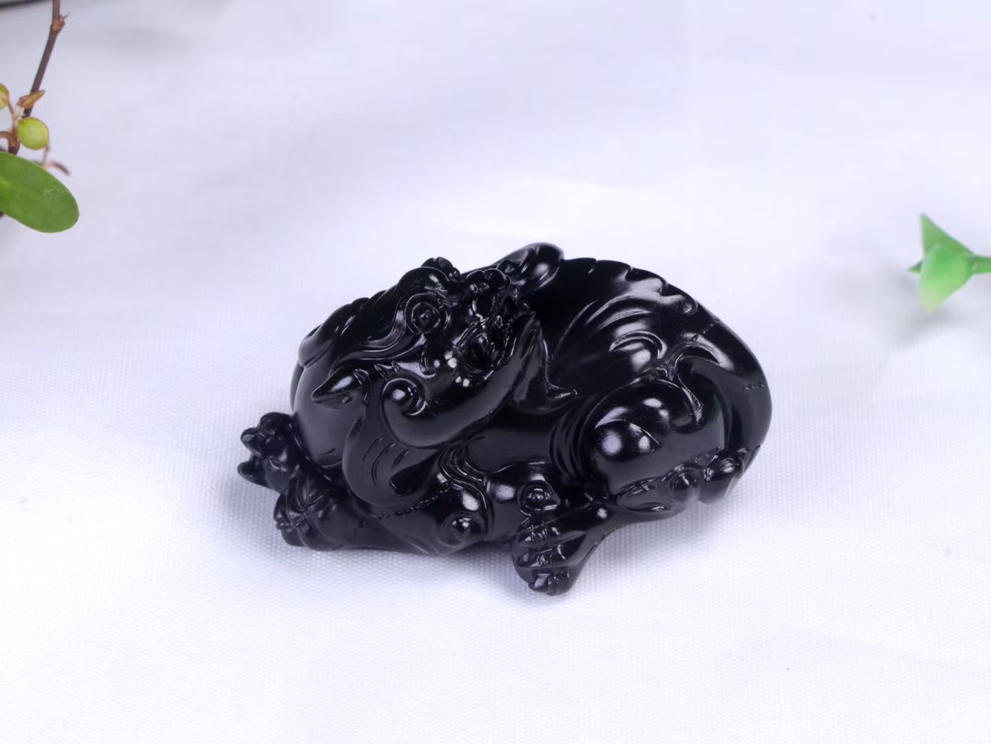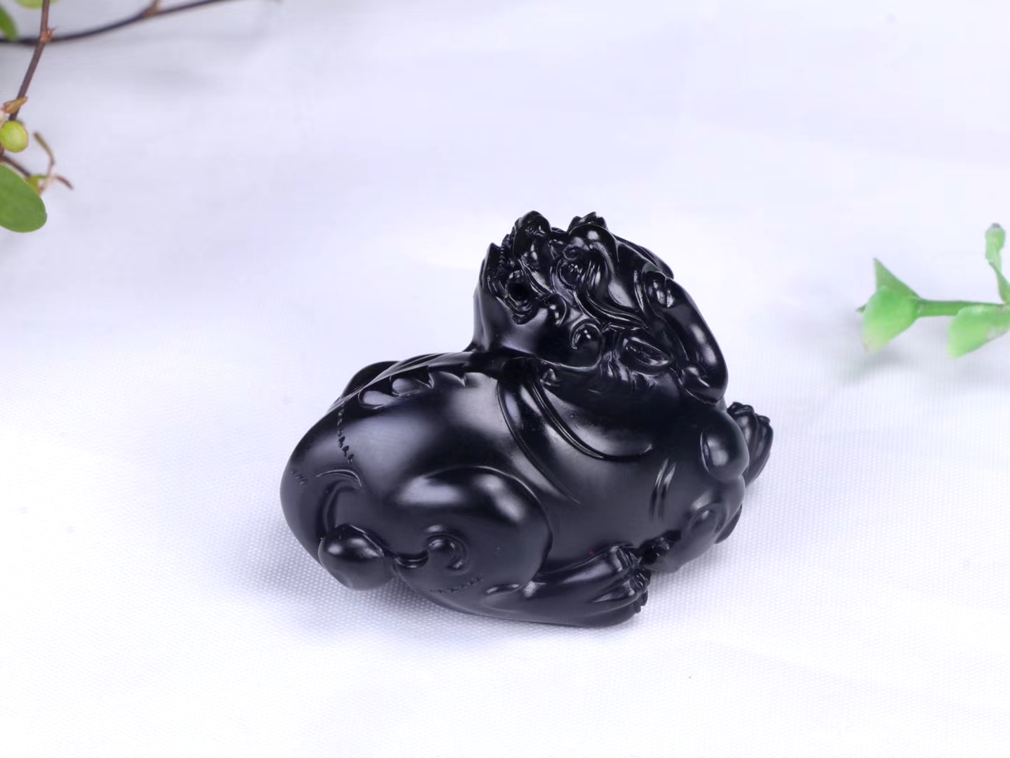 【招财貔貅】精品和田玉墨 貔貅挂件,玉质温润细腻,油性十足,貔貅趴卧姿,圆眼鼓凸有神,阔嘴宽鼻,兽相威严,于灵动中显出霸气。貔貅素有招财进宝,财源广进,辟护身之说。重49克,尺寸46.5-31-29毫米。