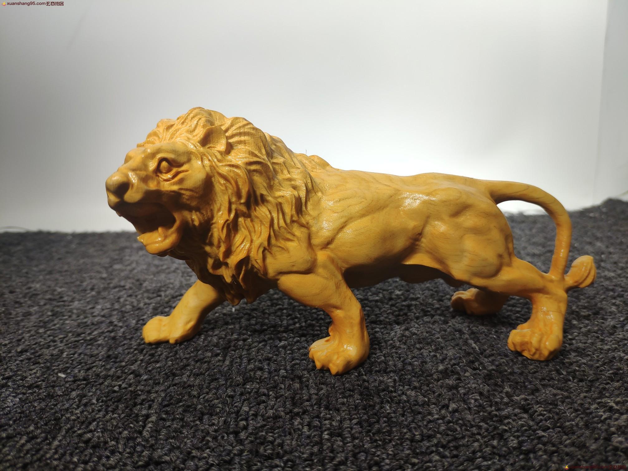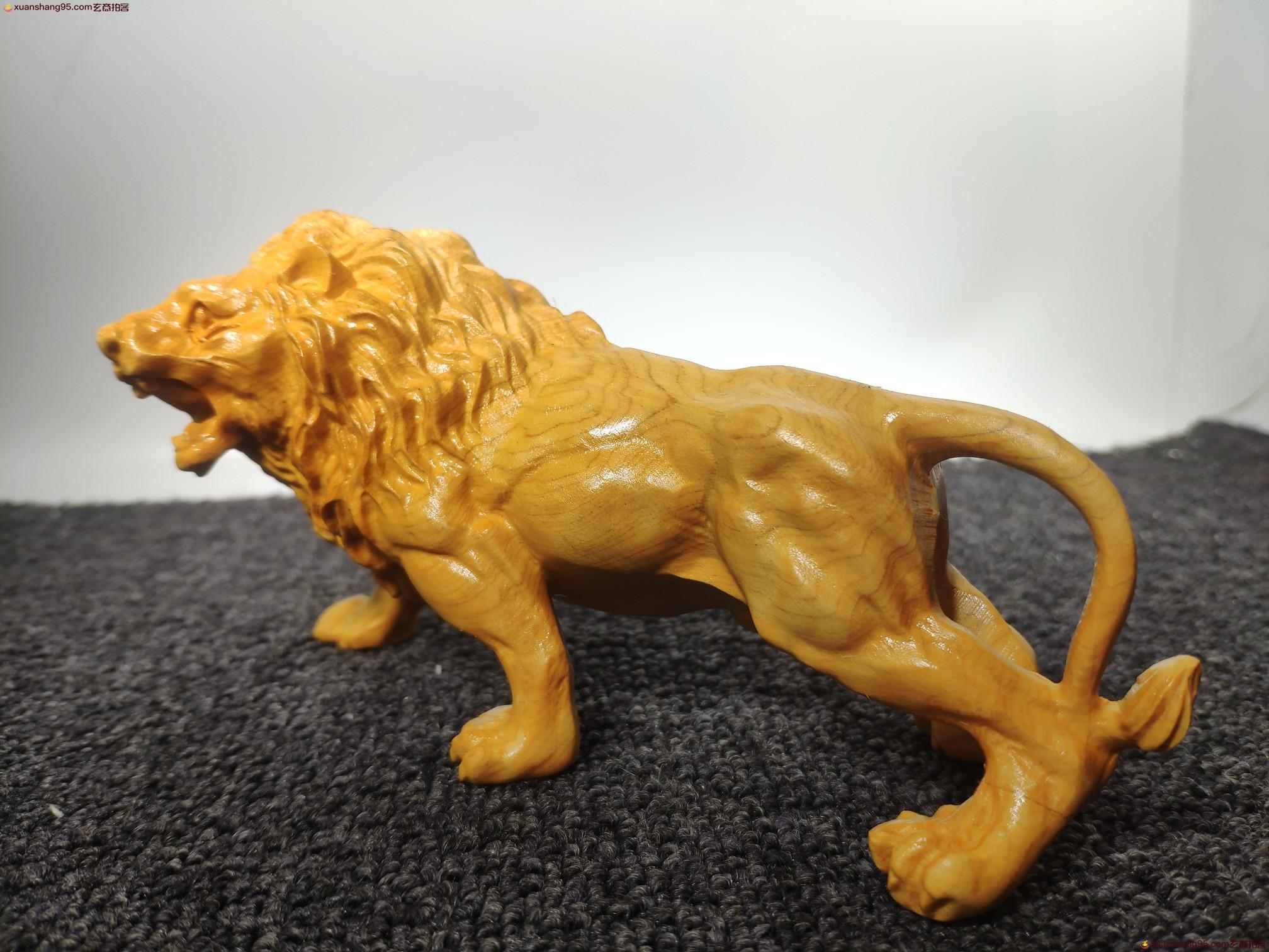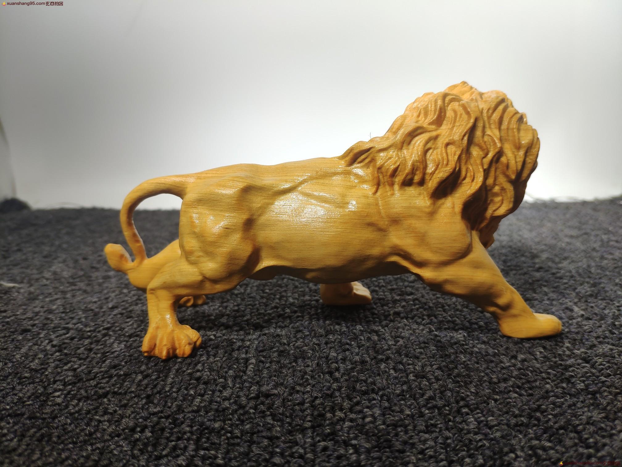 太行山崖柏 狮子 相貌凶猛 勇不可当 威震四方 是百兽之王。手工雕刻,尺寸16*9*6厘米。