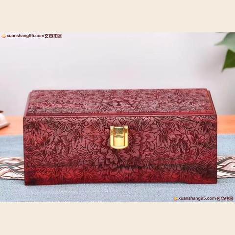 凤凰牡丹首饰盒赞比亚血檀 精工首饰盒,小仙女 夏天必备神器,项链耳环 手镯 戒指 手表 通通都能装下。尺寸25*14*10厘米。