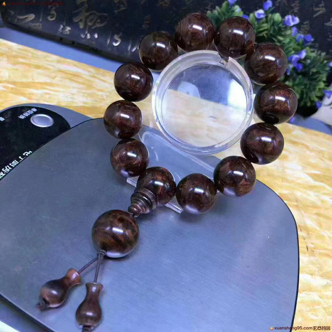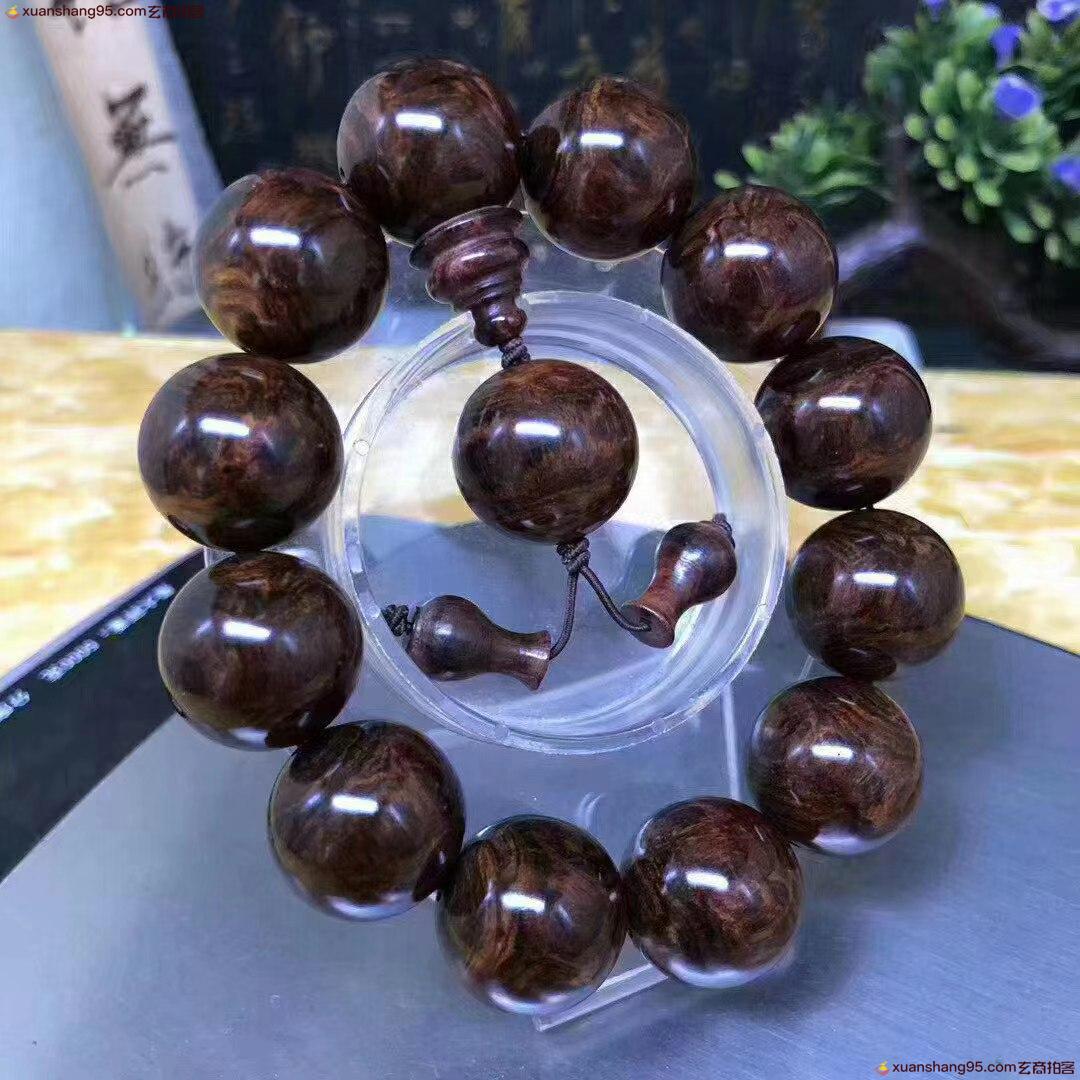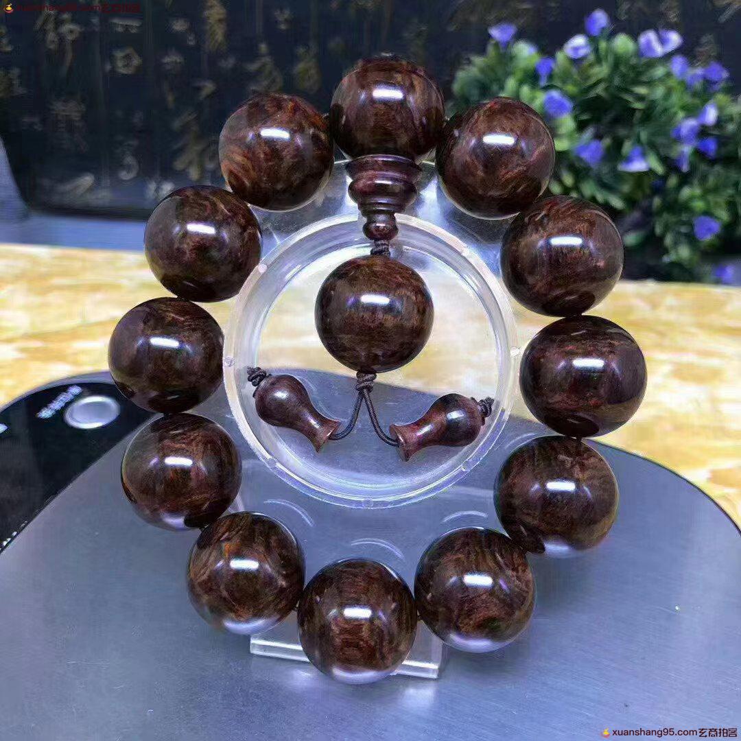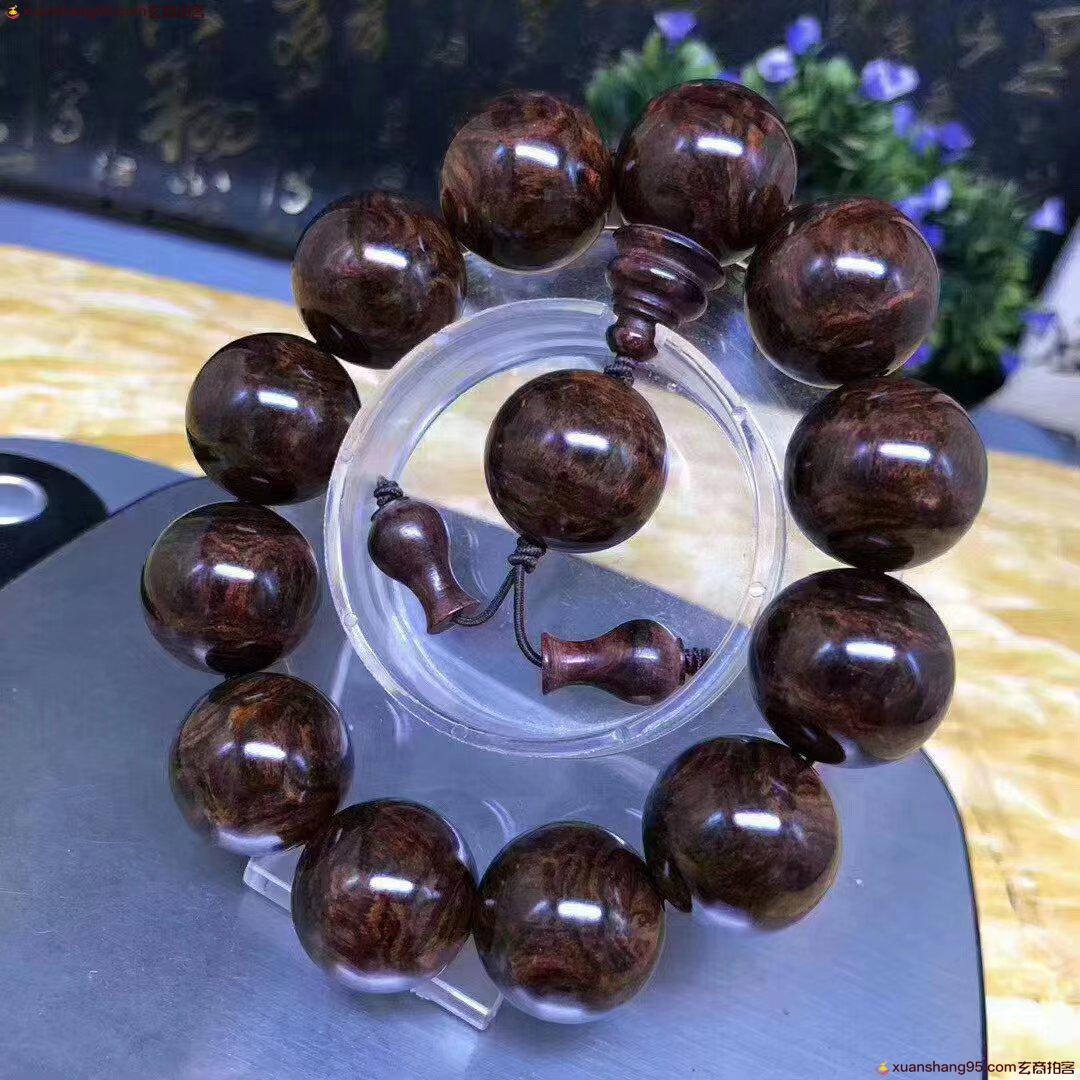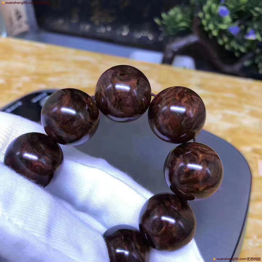 收藏品 海南黄花梨 红紫油梨 老料 2.0手串 经典苍劲老料 满纹 对眼 正心鬼脸 虎皮纹 纹理绚丽丰富,油性十足。尺寸2.0厘米 重量50克。