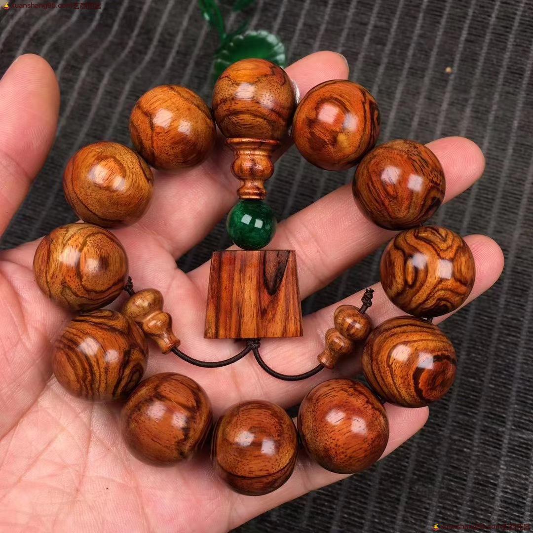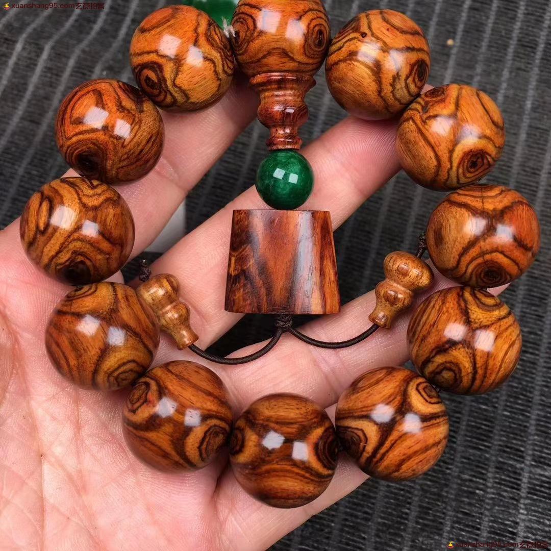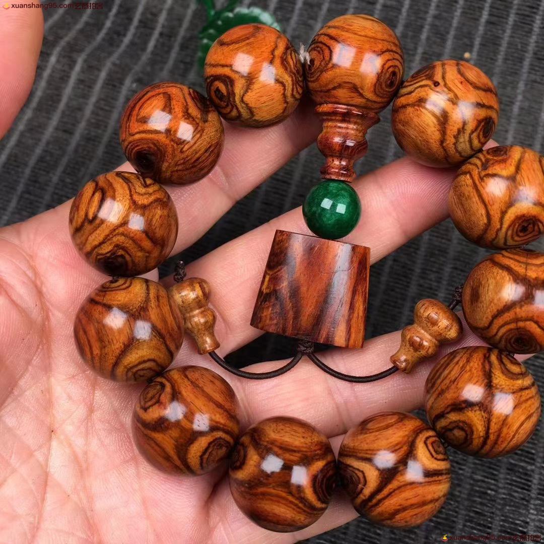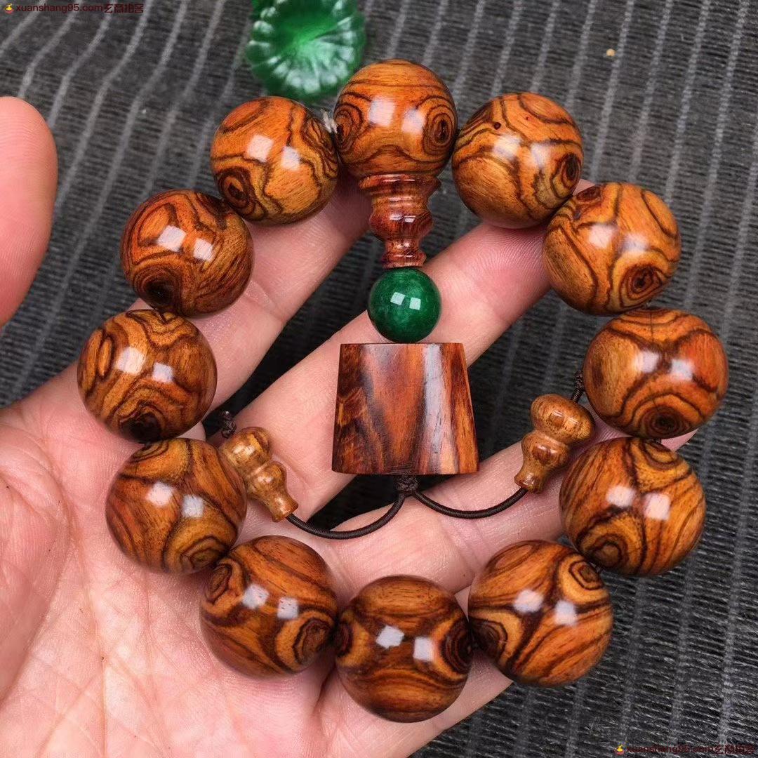 收藏品 海南黄花梨 糠梨 对眼 手串 黄金底 纹理漂亮 霸气眼神,尺寸2.0厘米 重量41克。