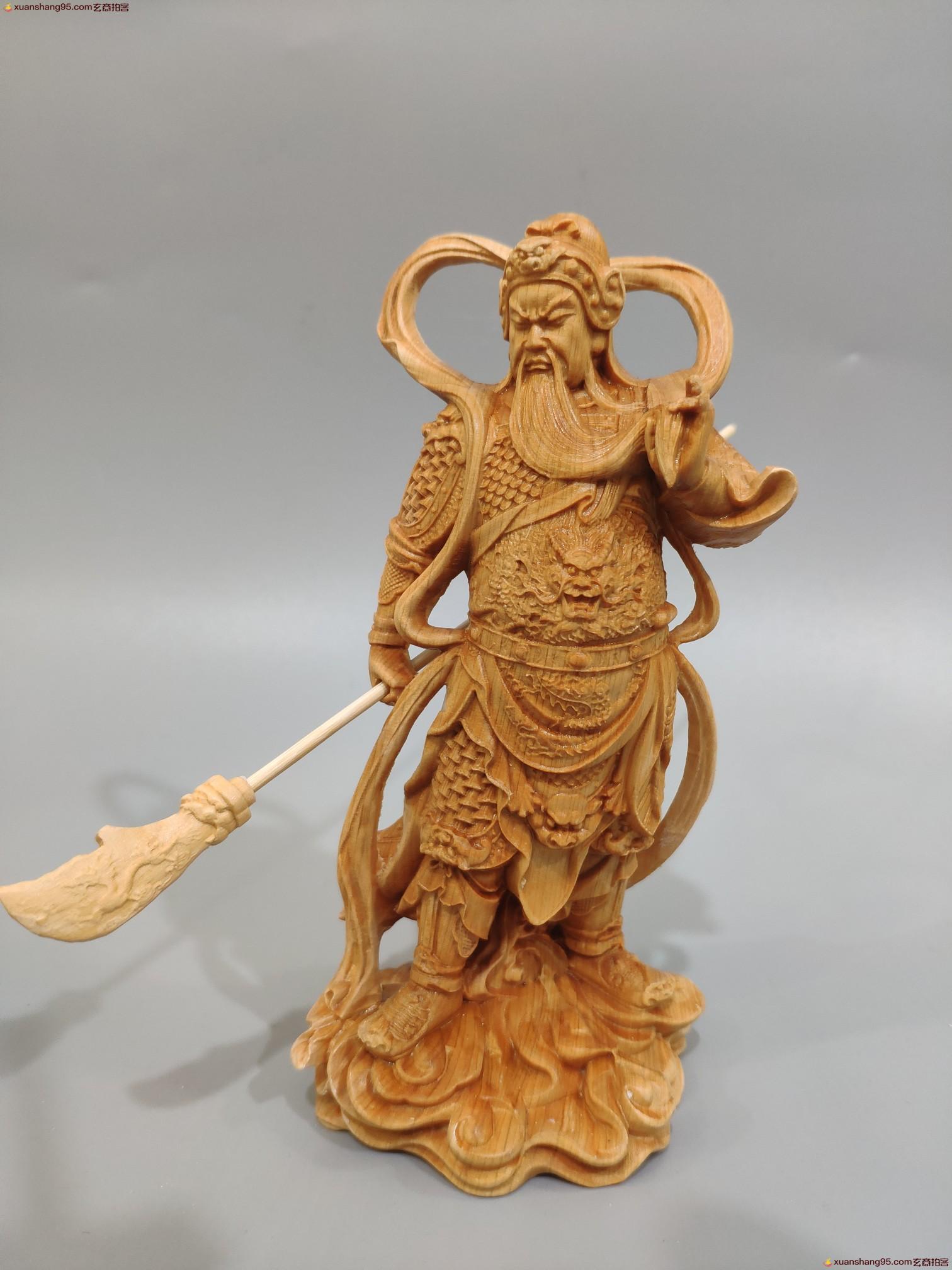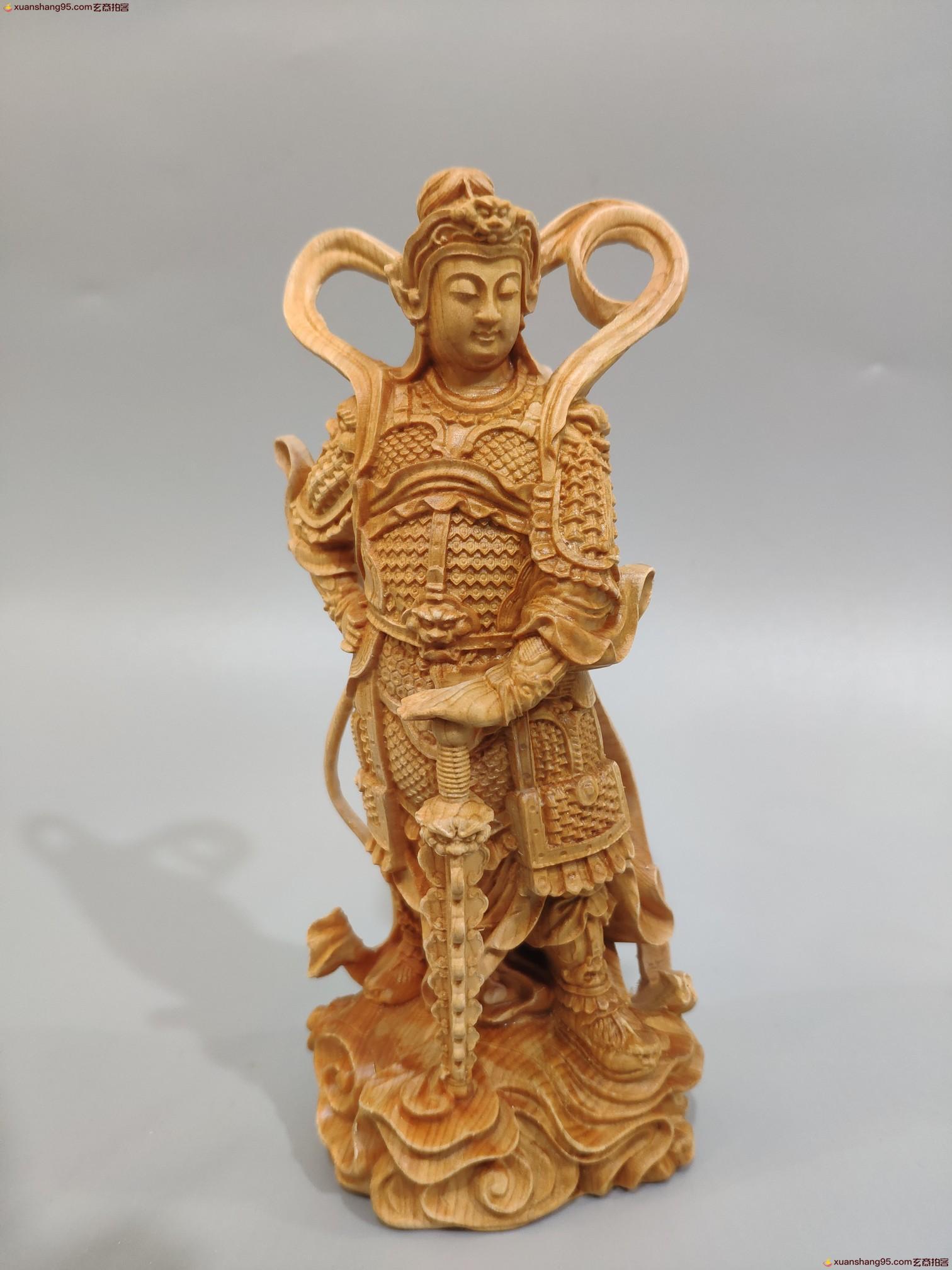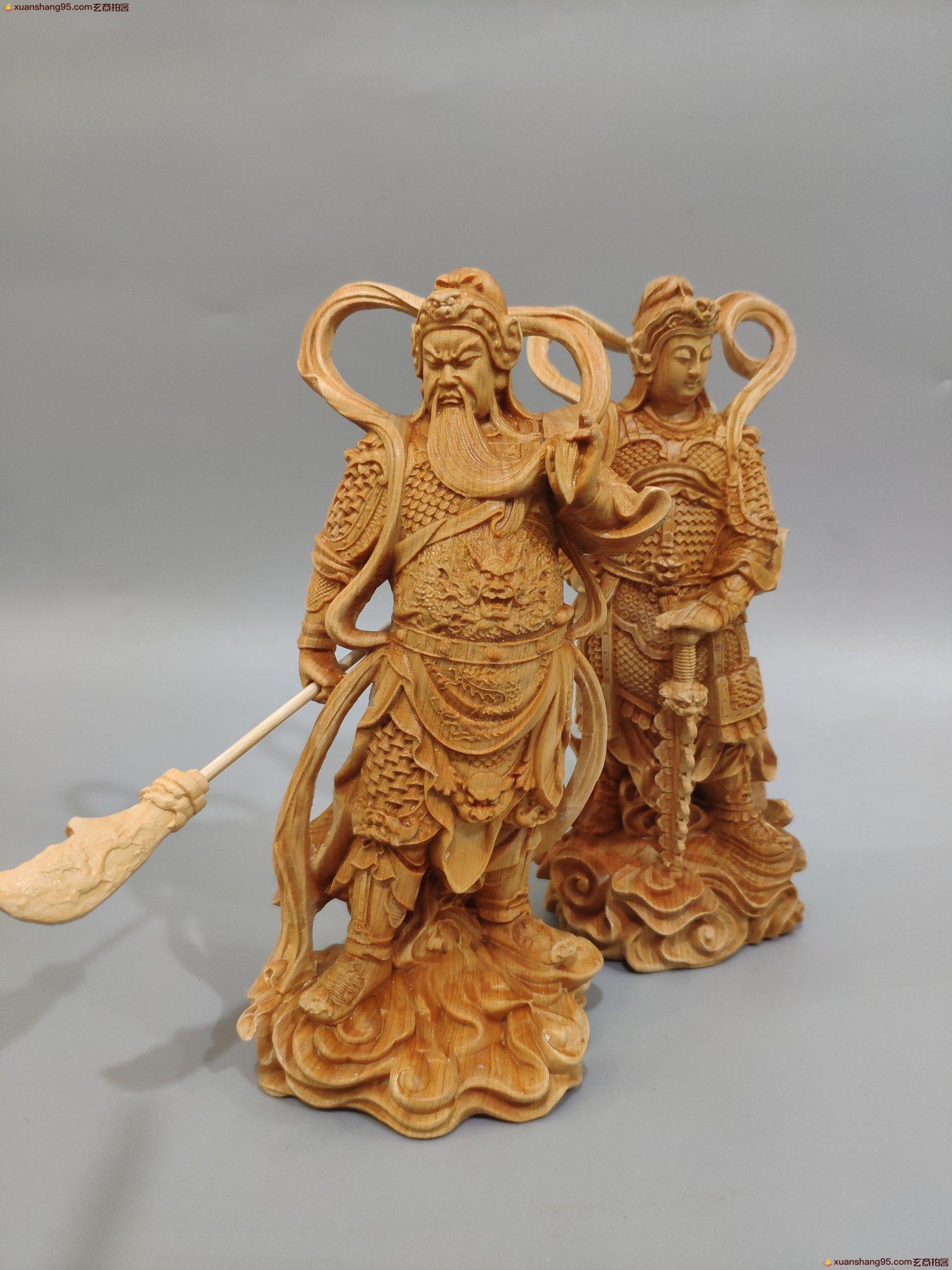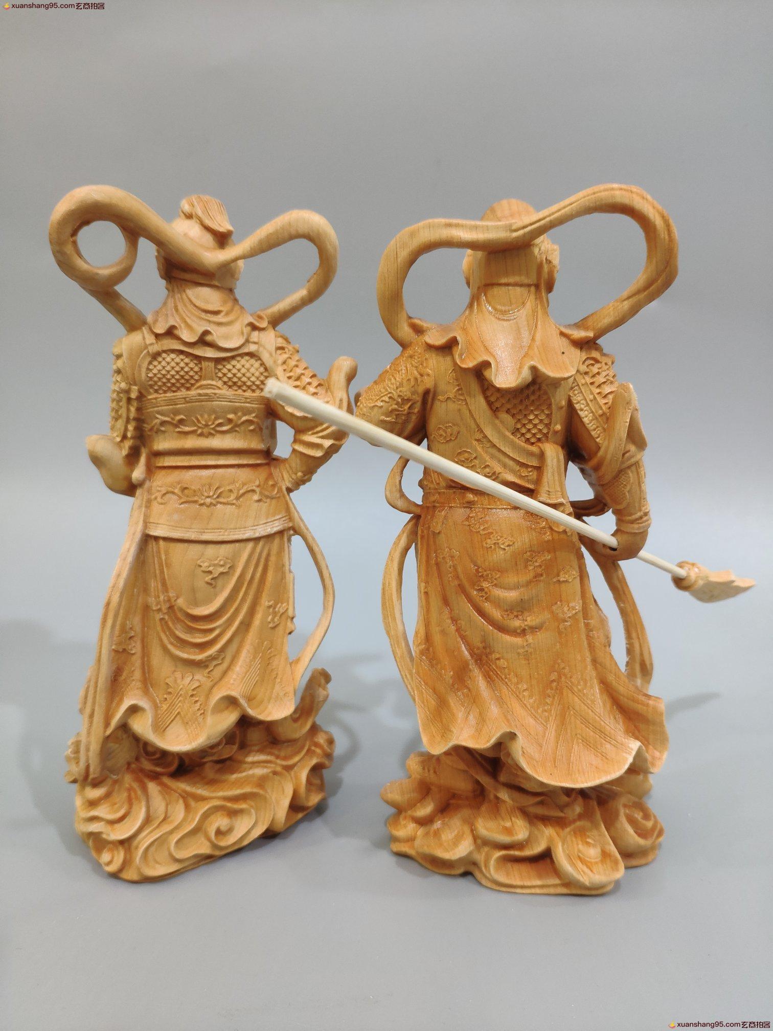 崖柏 左右护法 韦陀尊者 关公伽蓝菩萨 * 镇宅门神 精工雕刻 礼盒包装。高17厘米。