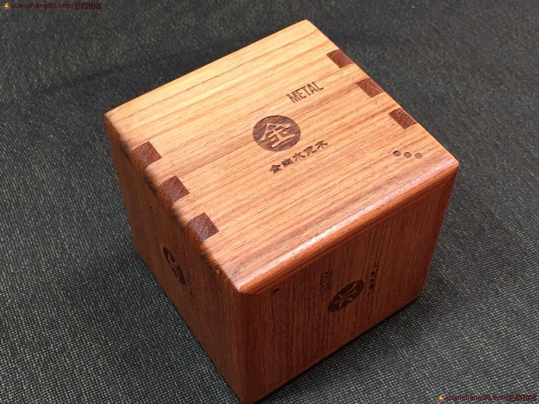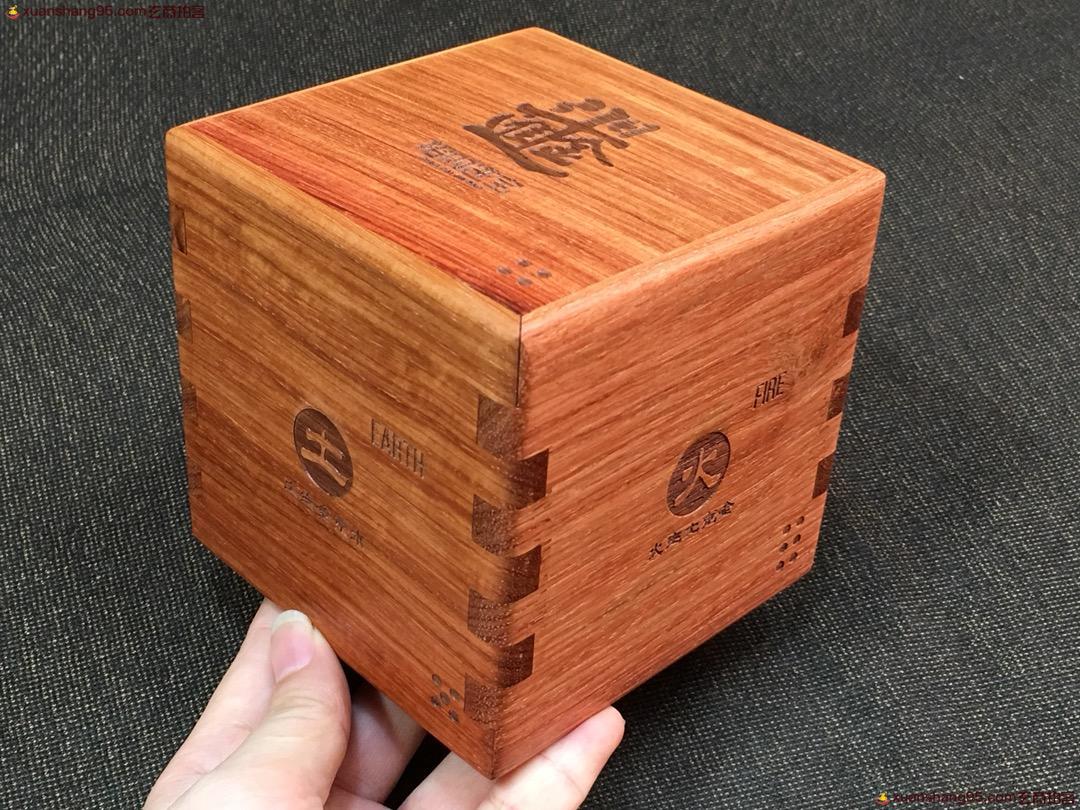 缅甸黄花梨 鲁班盒 采用上等缅甸黄花梨 全独板 榫卯结构 工艺一流 工序复杂。五行机关盒,打开的方法是:只要按照金木水火土的顺序,对着上面的字 轻轻敲击一下就可以了。
