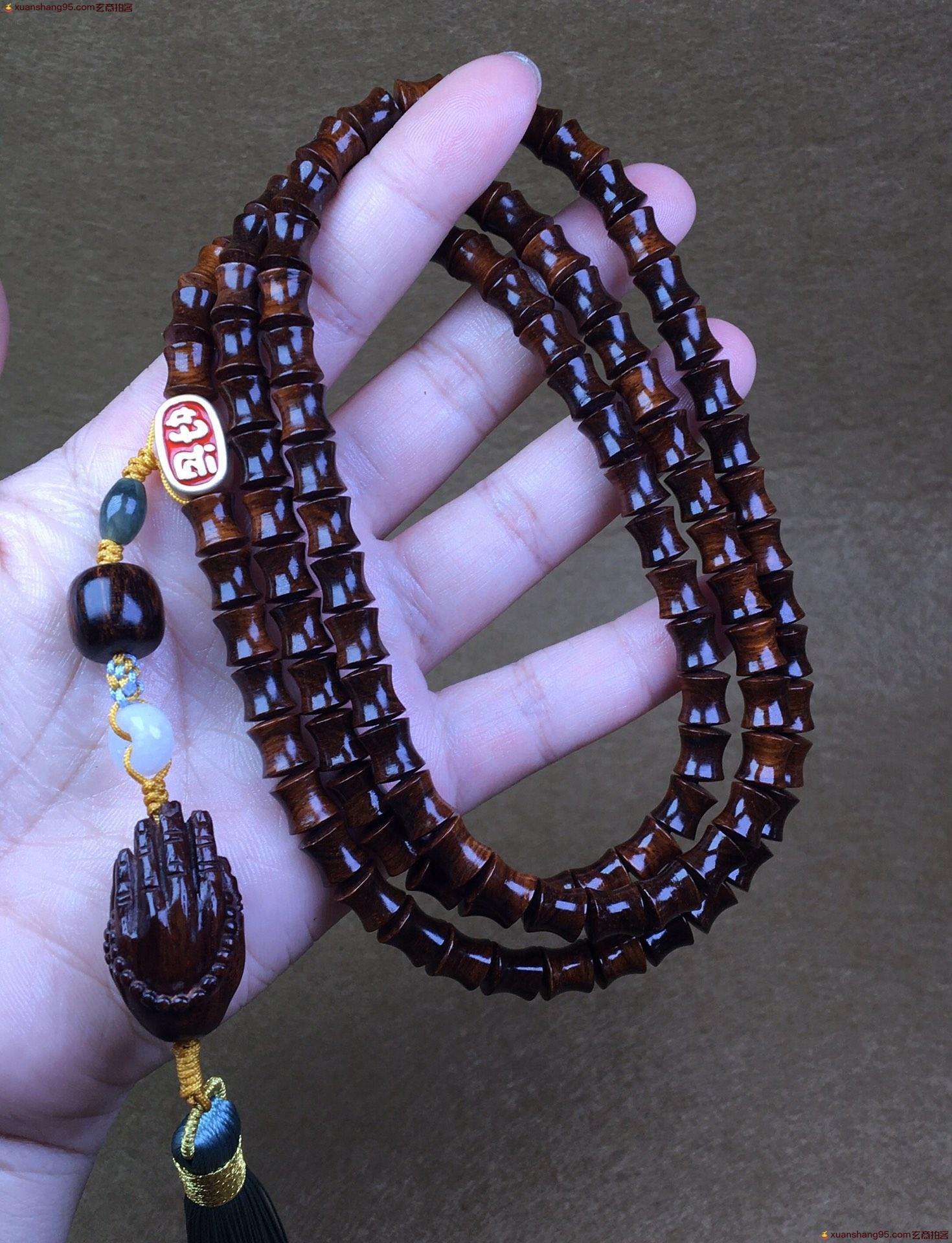 海南黄花梨 竹节 108手串 竹节寓意节节高升 颗颗精选 高油性 高密度 纹理清晰 搭配佛手吊坠,盘完佳品。尺寸0.8厘米。