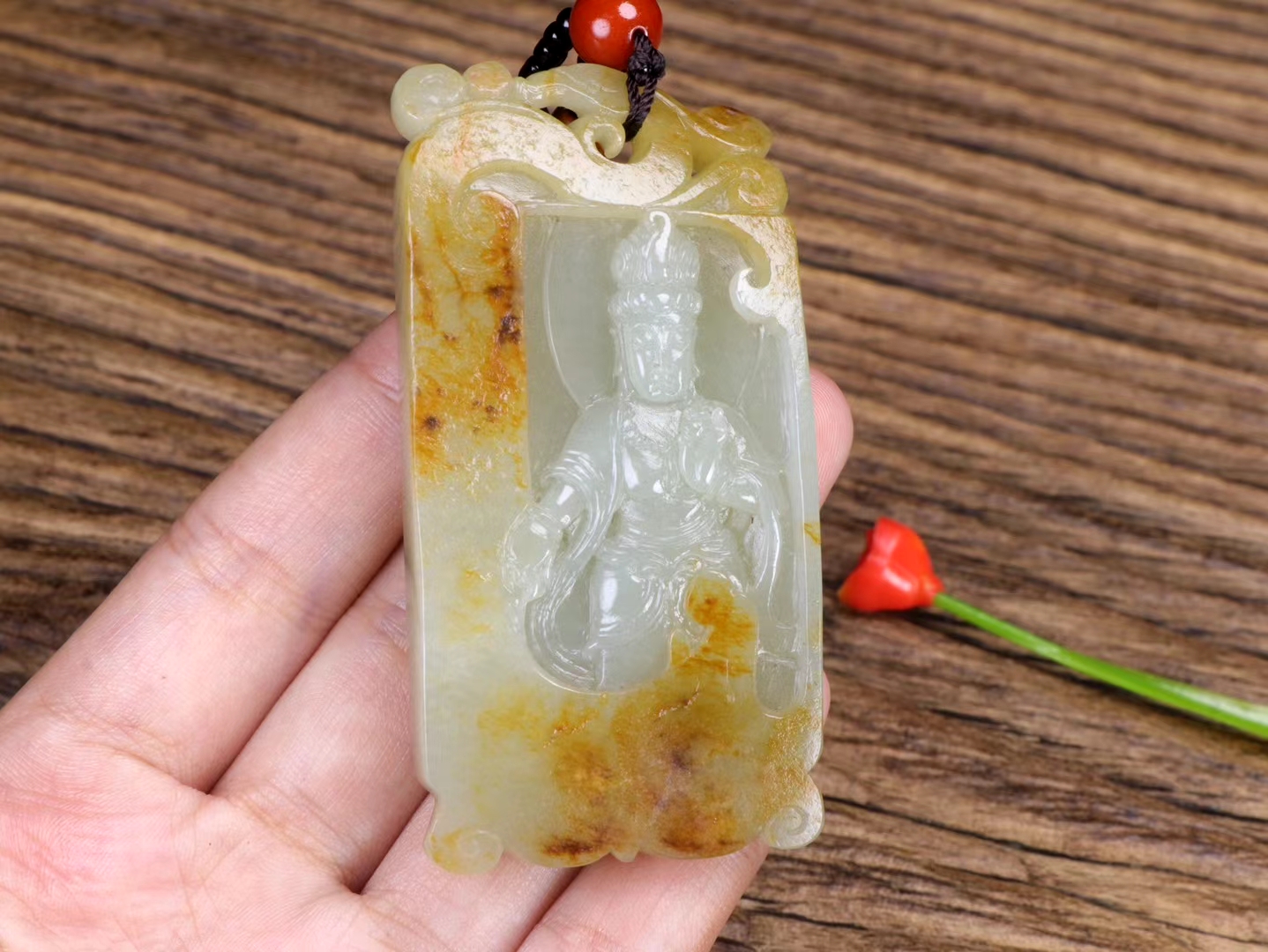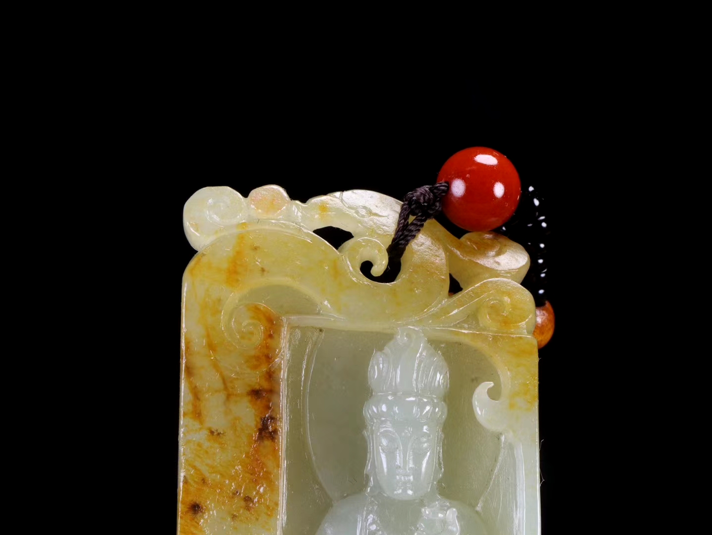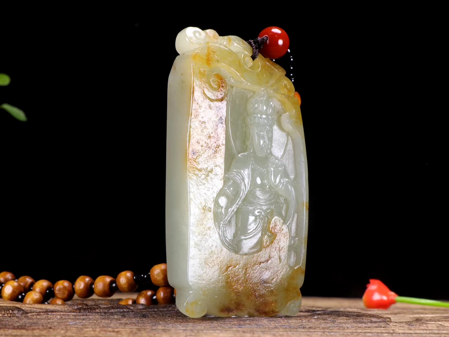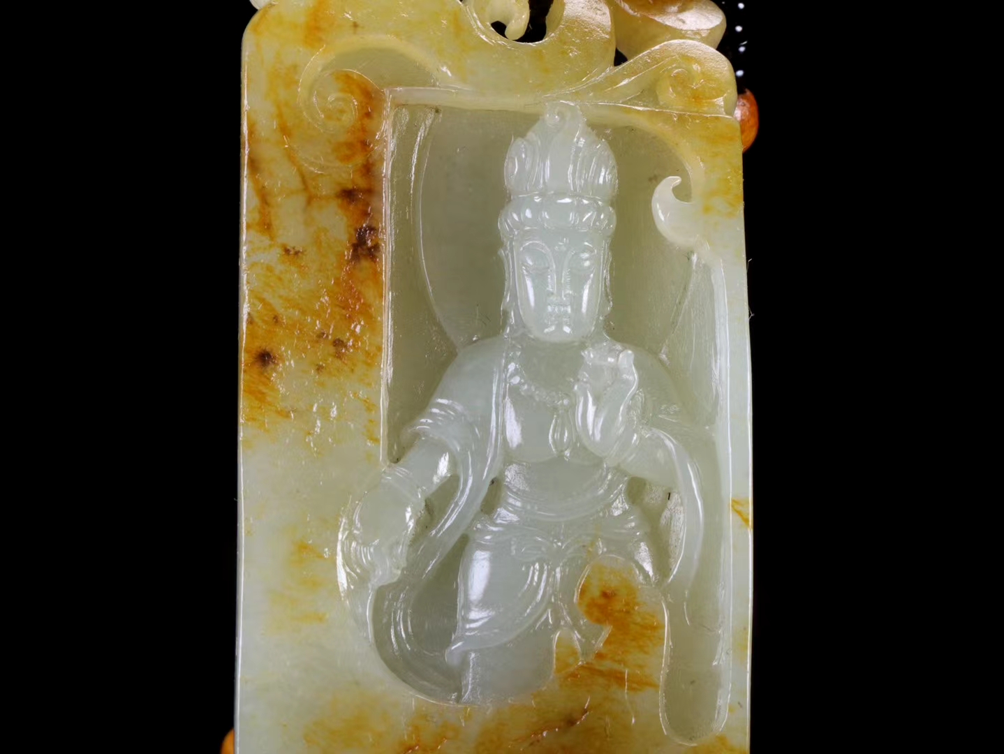 新疆和田玉籽料 观音挂件 皮色老熟,毛孔清晰,玉质温润,油性十足,脂份*佳,精工雕琢,侧琢瑞凤,观音法相端庄,似观人生百态,看风起云卷,花开花落,天地皆可悟,静守菩提心。重70克,尺寸68.5-34.5-12.5毫米。