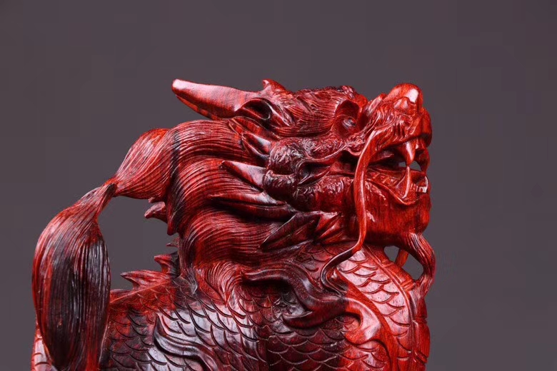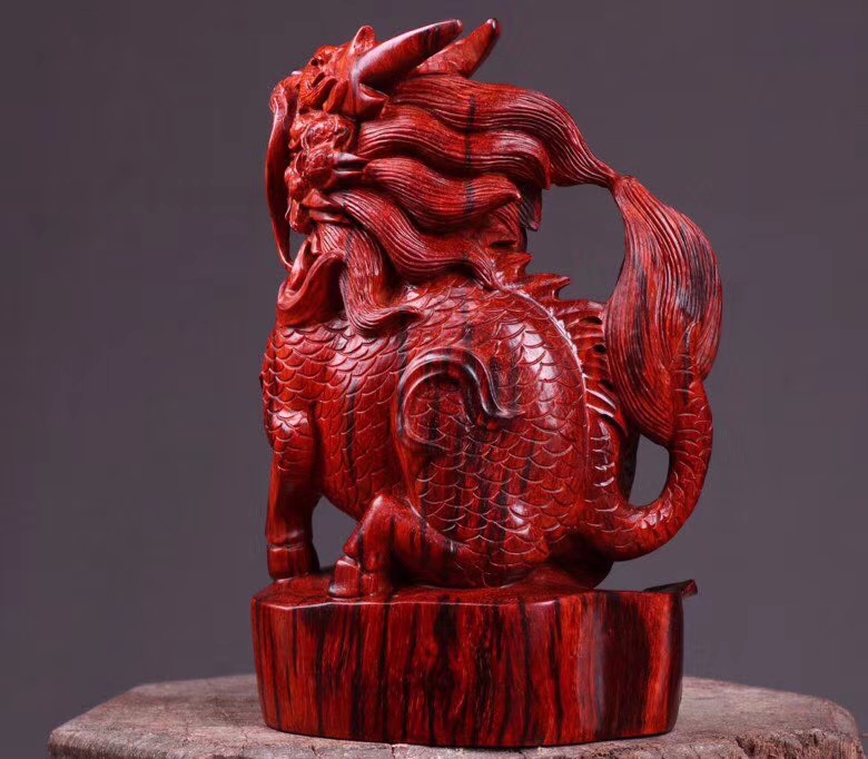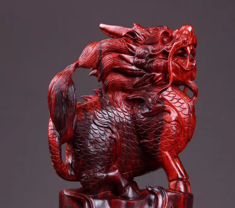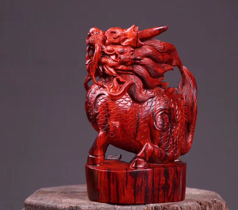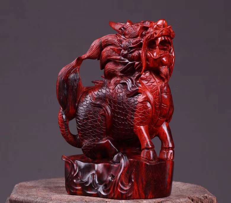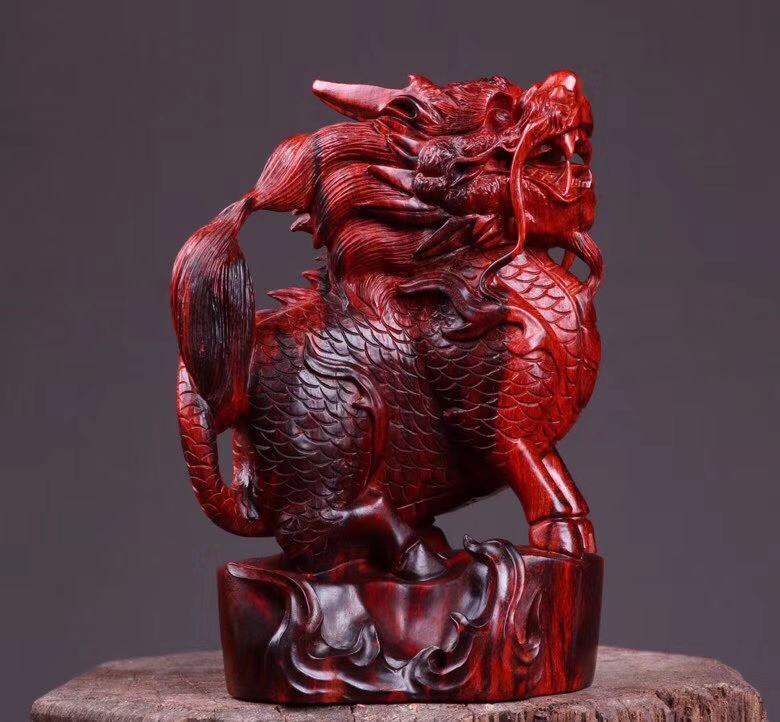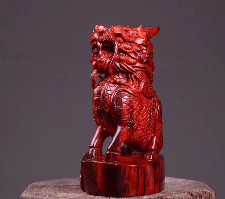 印度小叶紫檀案摆 麒麟 麒麟中国传统瑞兽,古人认为,麒麟出没处,必有祥瑞,安置家中,有祈福和安佑的用意,精雕无拼接,尺寸12/8.5/16.8cm 净重705克。