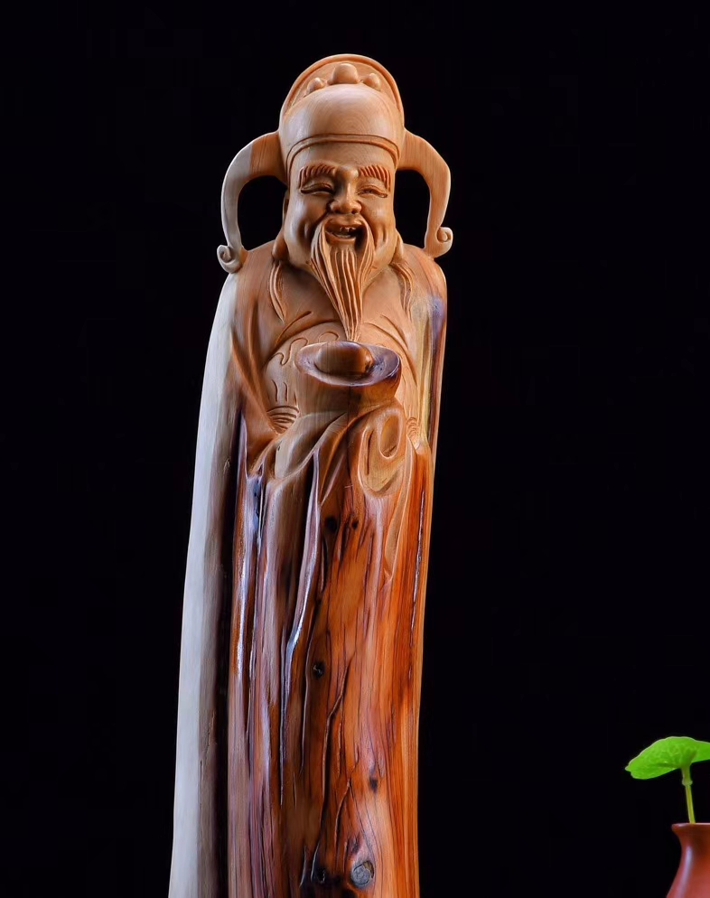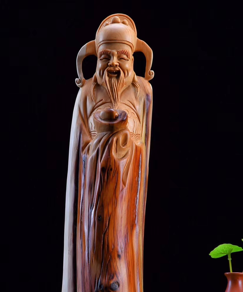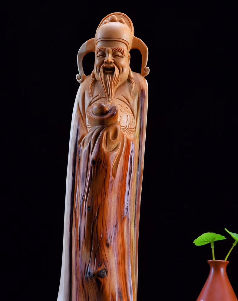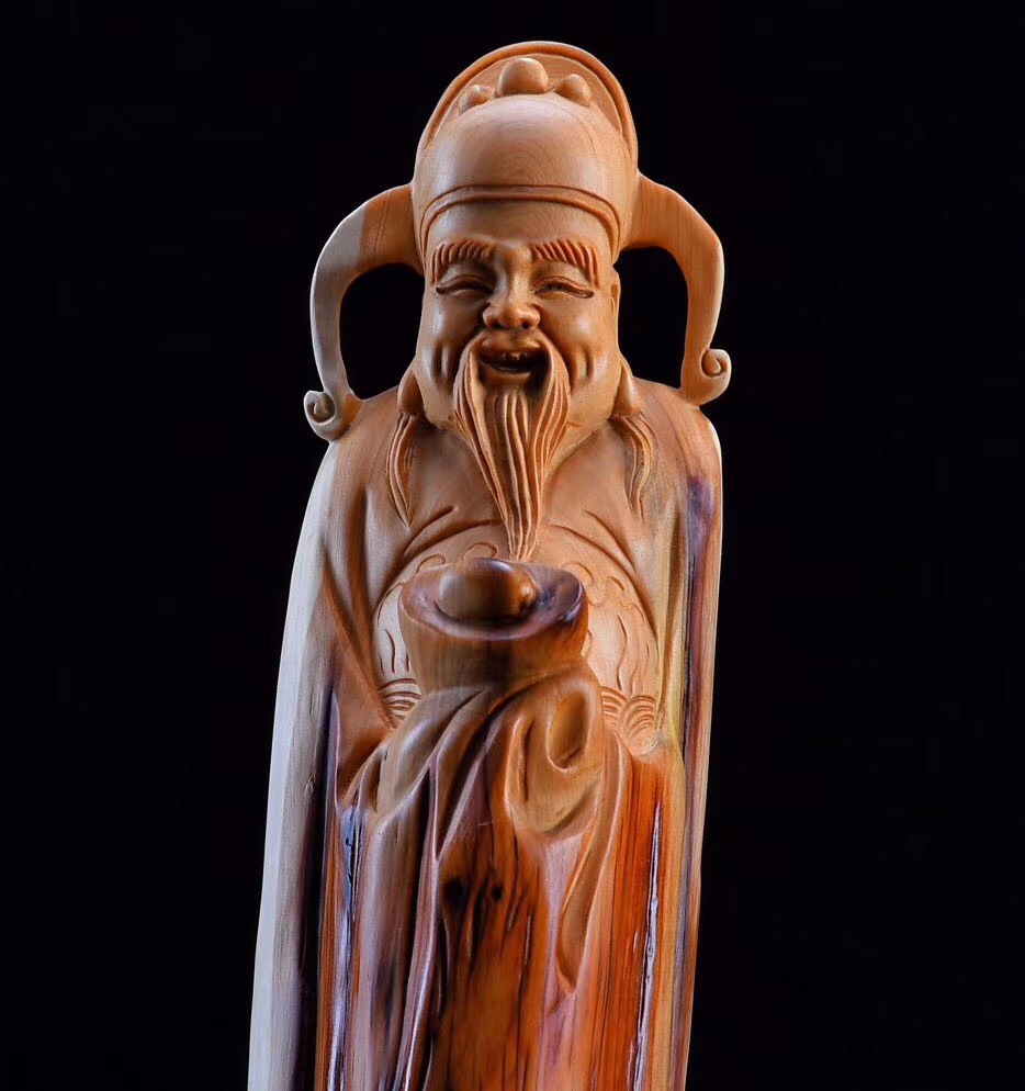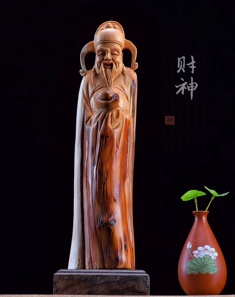 《财神》最佳收藏品 精工 太行崖柏陈化双色料,自然旋转,名师点缀,油性一流,镜面高抛!长11厘米 宽11厘米 高34厘米 重3.3斤。