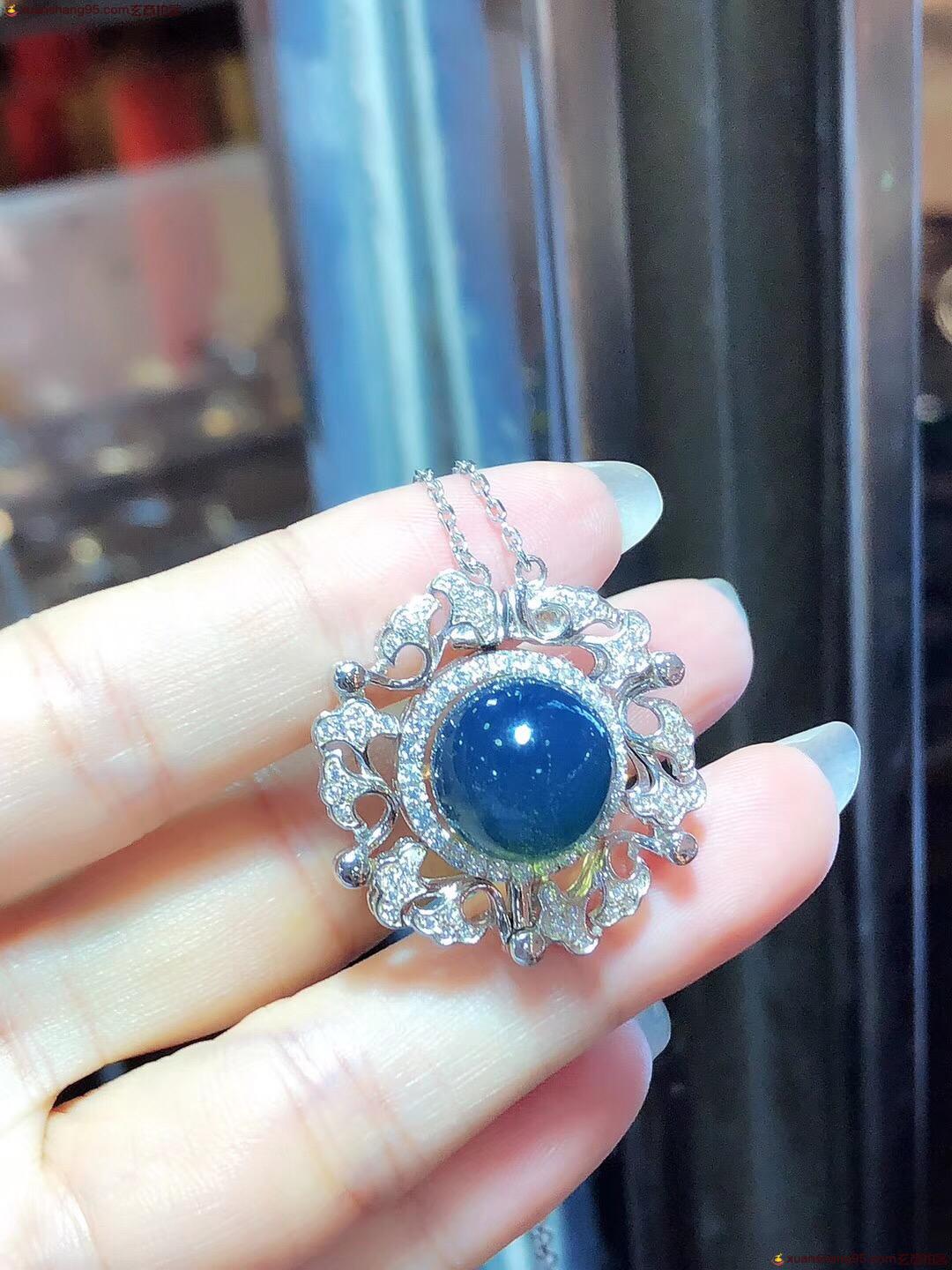 墨西哥 蓝珀 纯银吊坠 可变形 两用吊坠项链 独家设计,有两种不同的戴发,珠子尺寸12毫米。