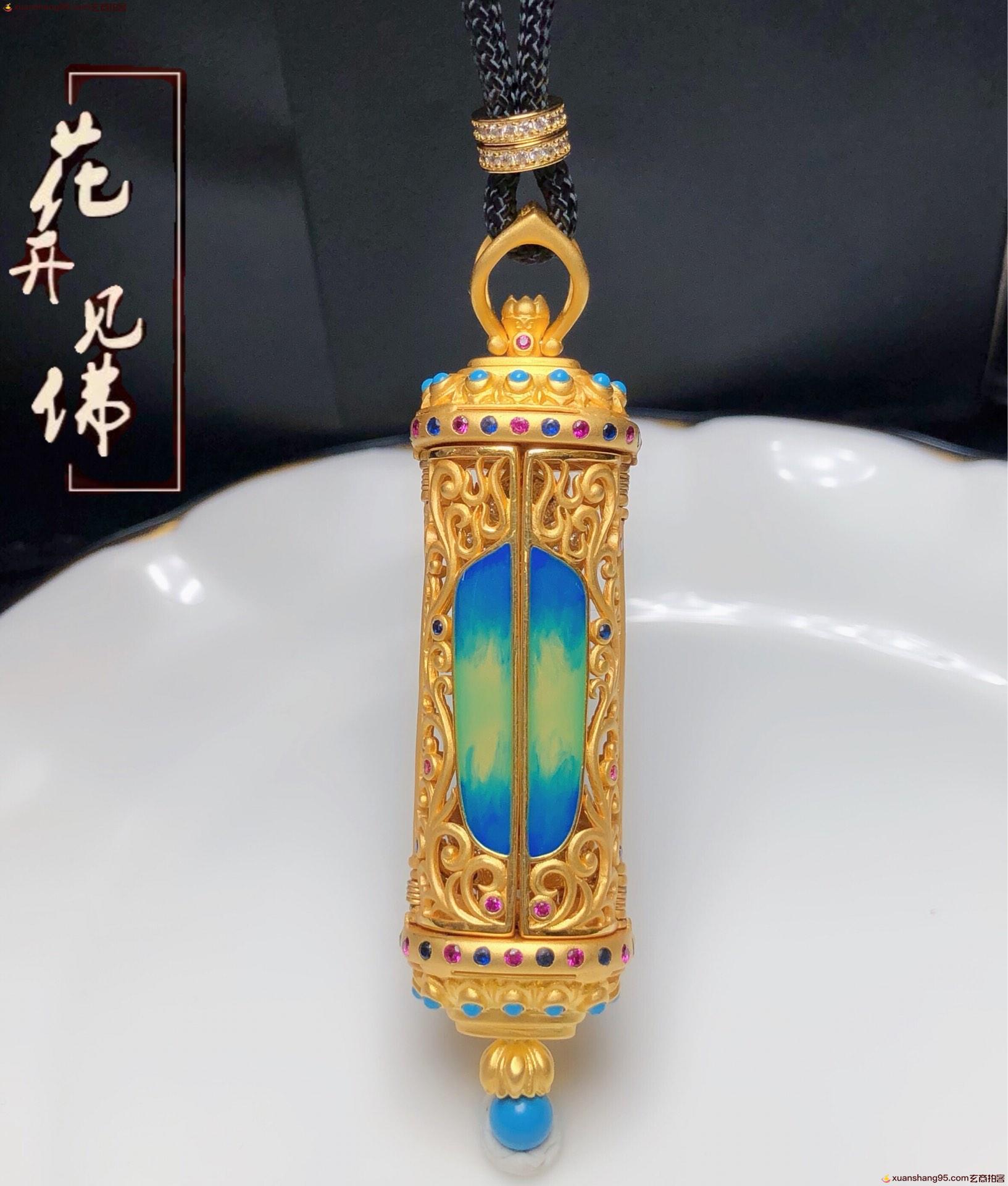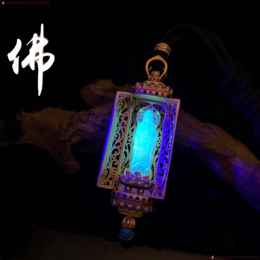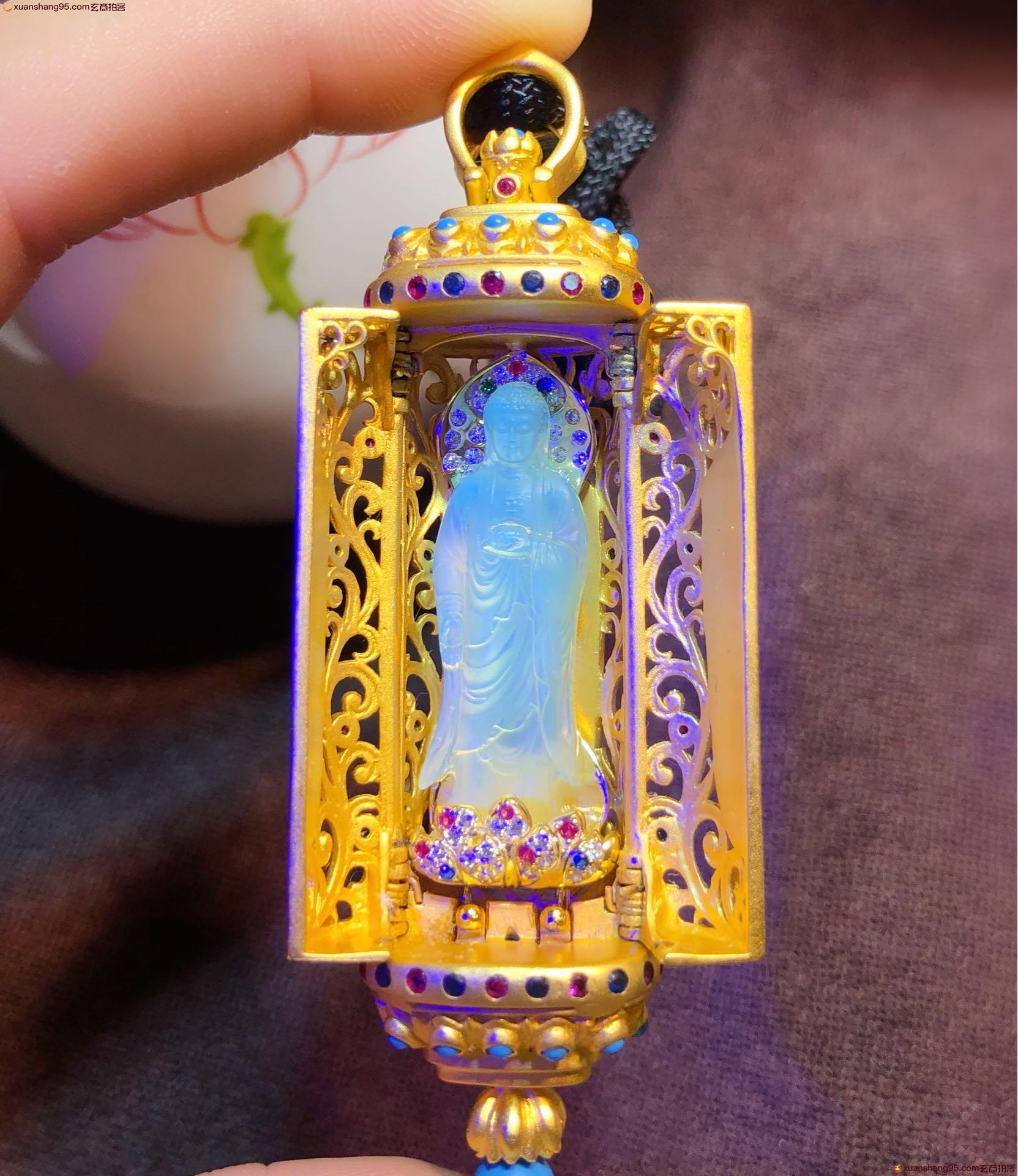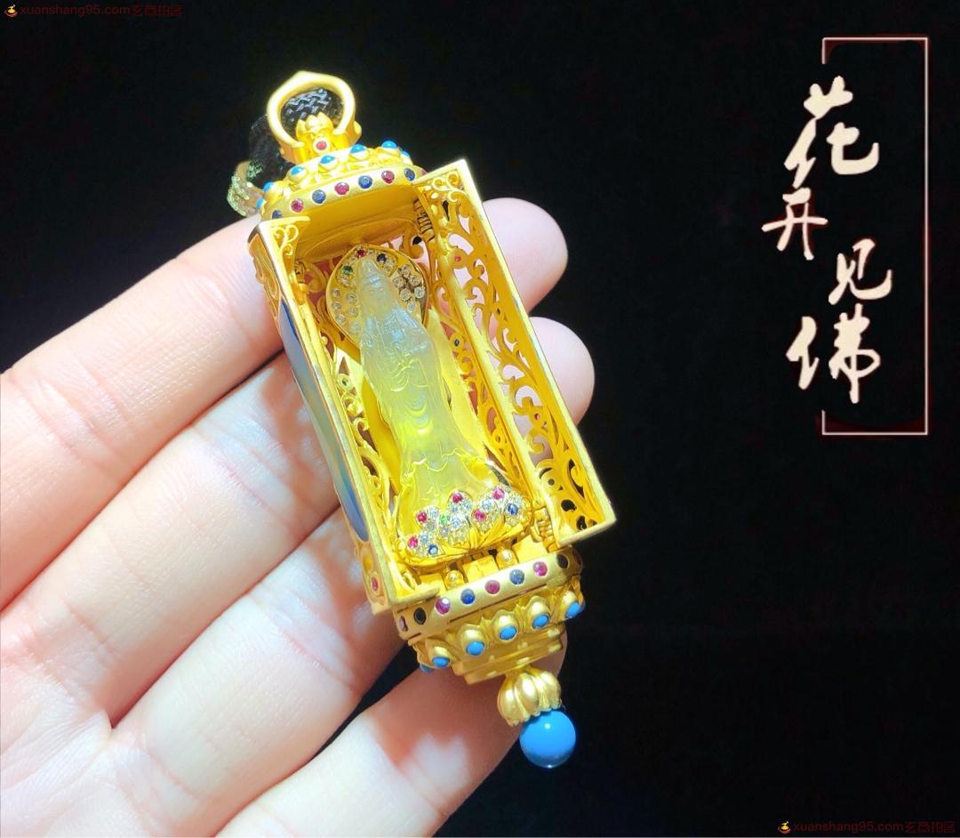 墨西哥 蓝珀 花开见佛 纯银电镀 磨砂金工艺 内部镶嵌如来佛祖,雕刻细致 精益求精 尺寸73*16*12毫米 重量31克。