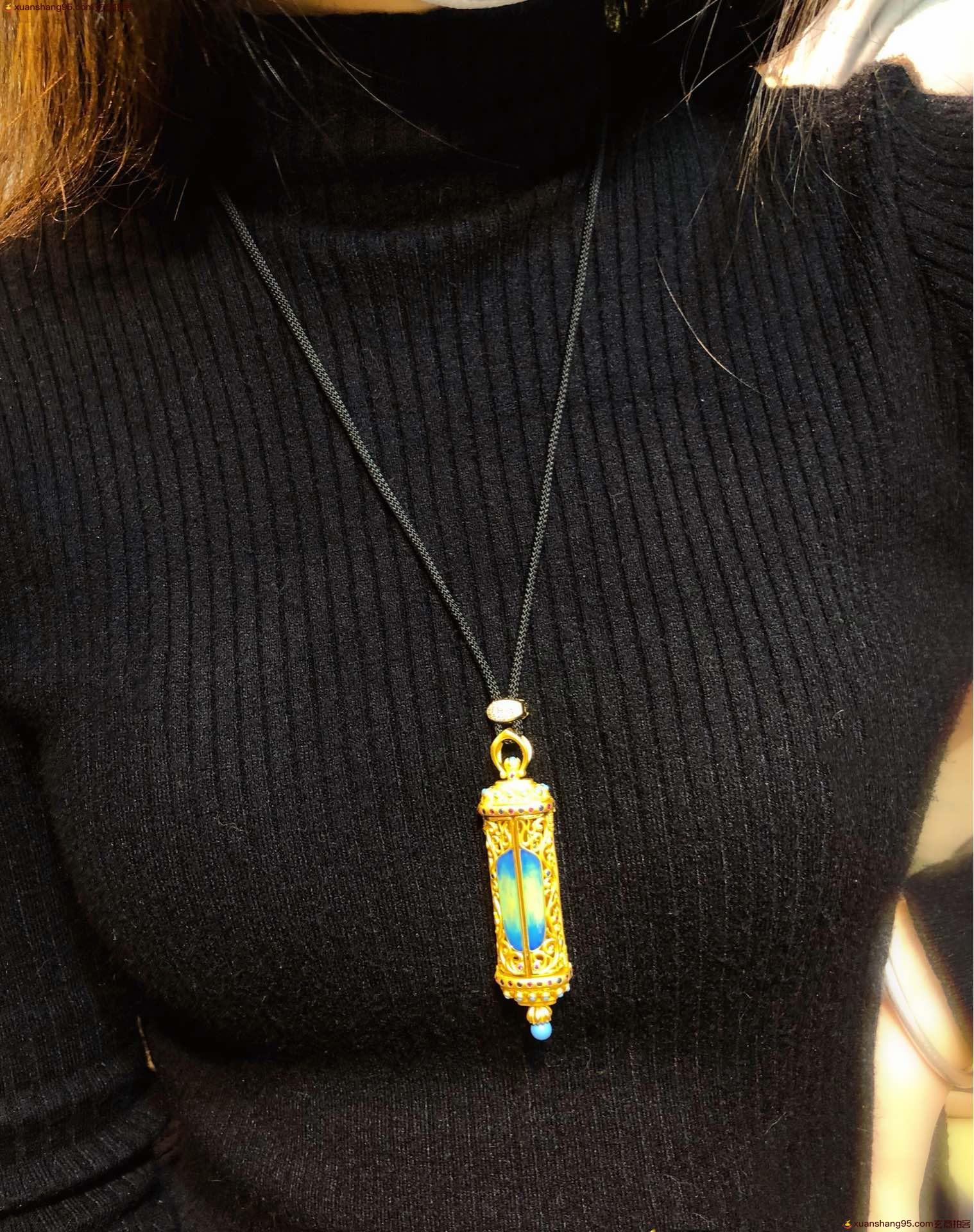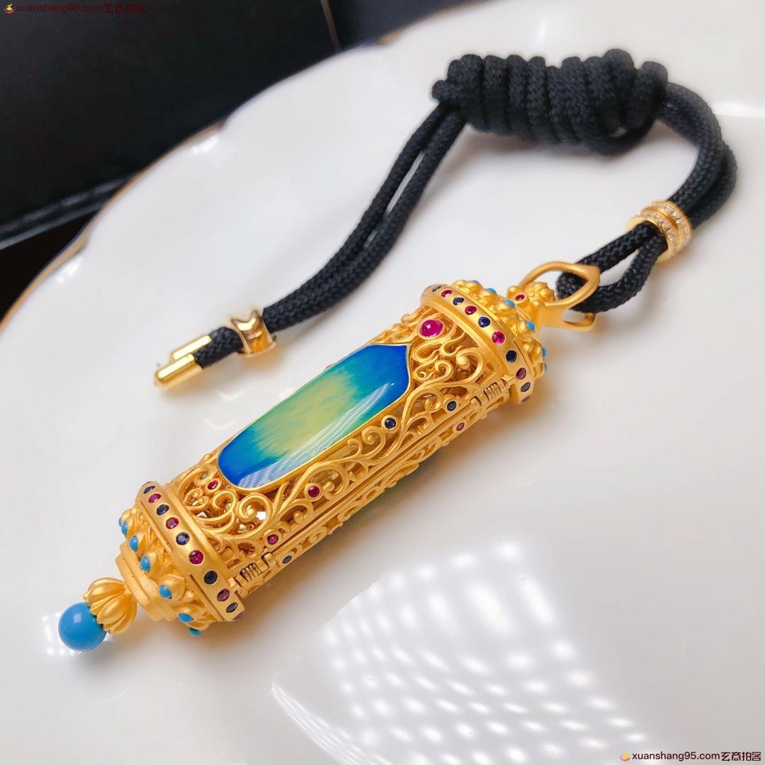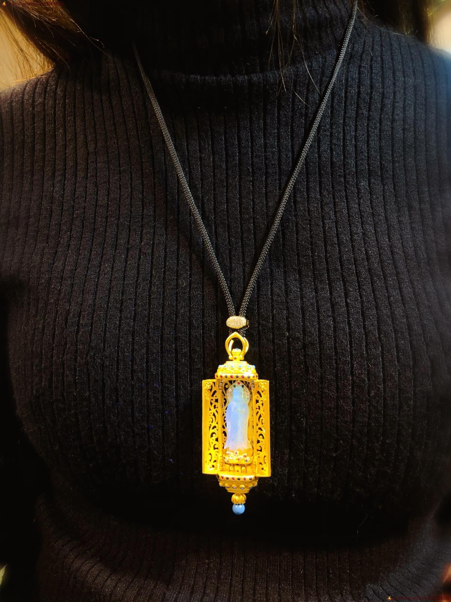 墨西哥 蓝珀 花开见佛 纯银电镀 磨砂金工艺 内部镶嵌如来佛祖,雕刻细致 精益求精 尺寸73*16*12毫米 重量31克。