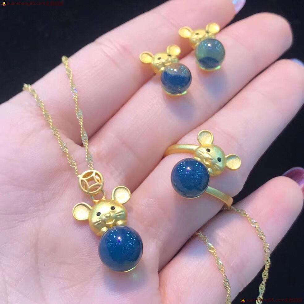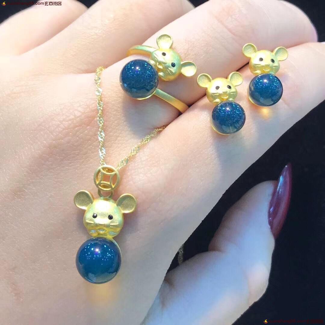 *品 墨西哥蓝珀 3A净水 三件套 吊坠 耳钉7毫米 戒指8毫米 吊坠9毫米。