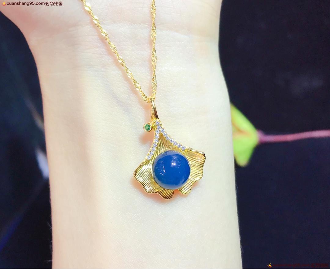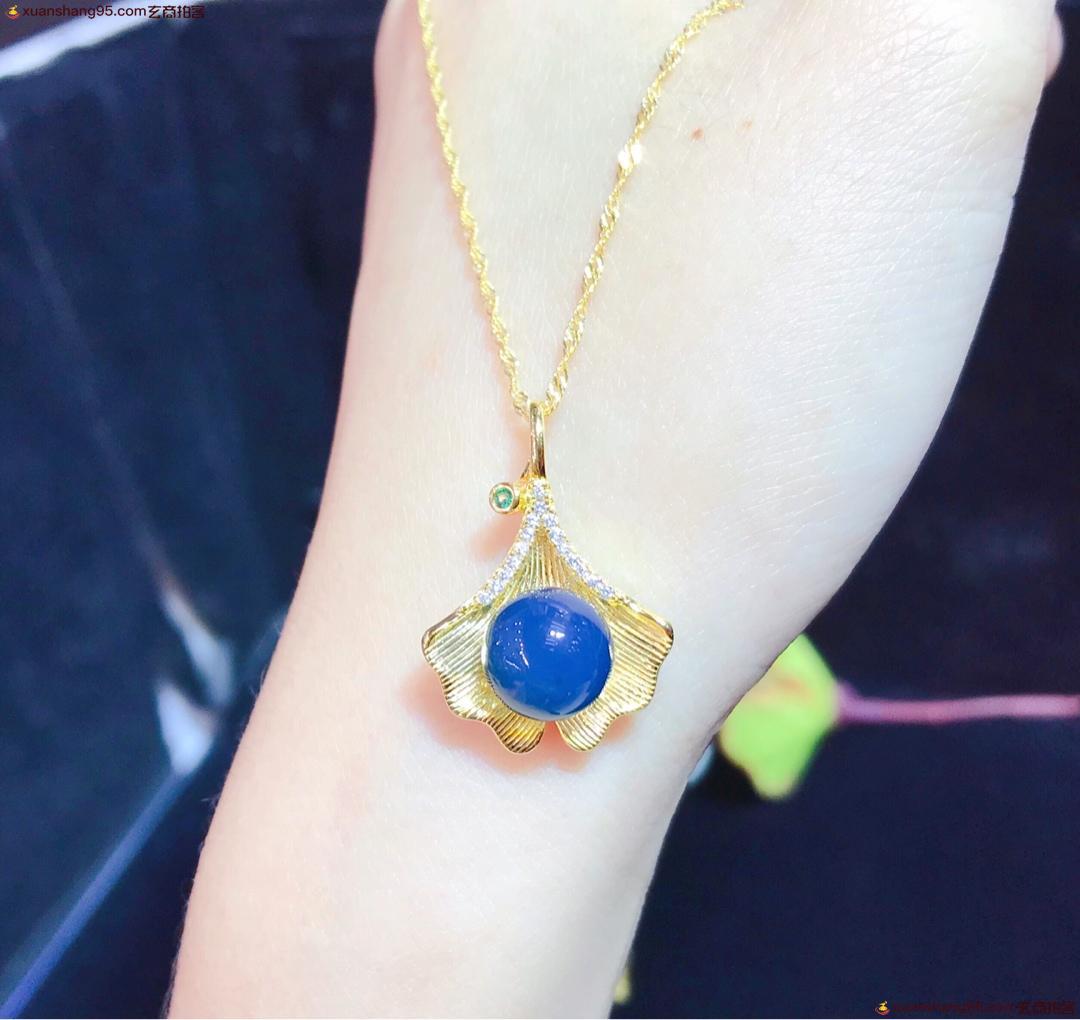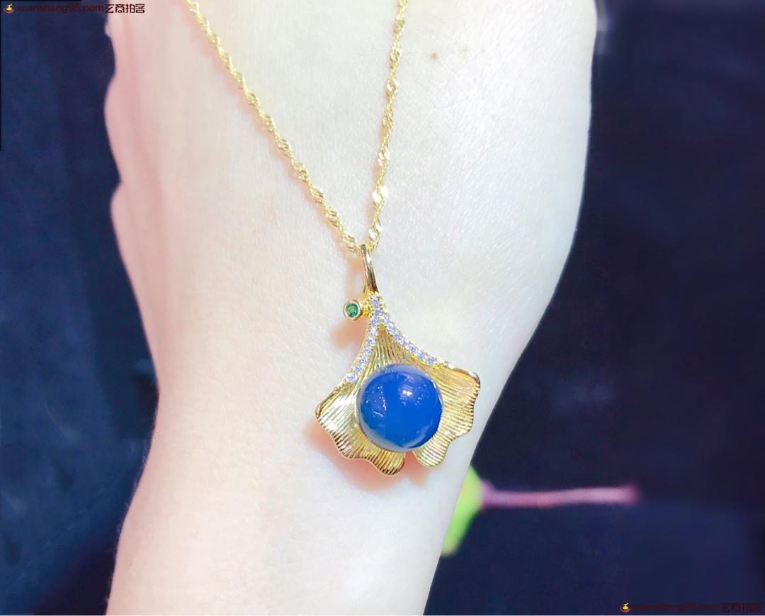 银杏叶 墨西哥蓝珀 银镀金吊坠 纯银镀金 镶嵌3A净水品质圆珠。珠子尺寸9毫米。