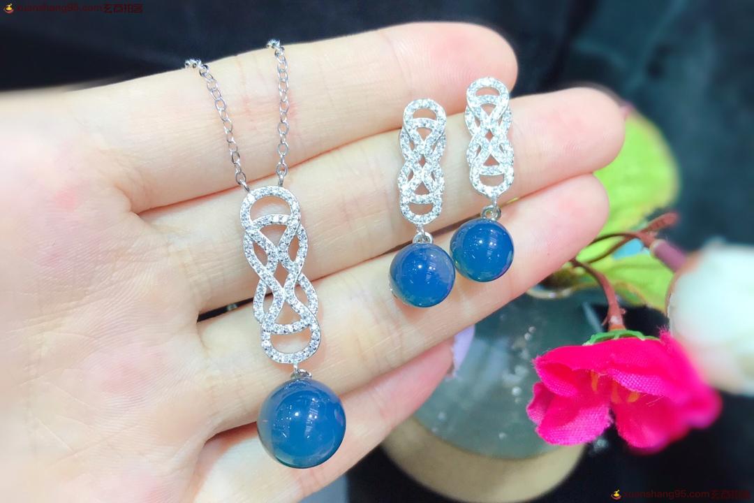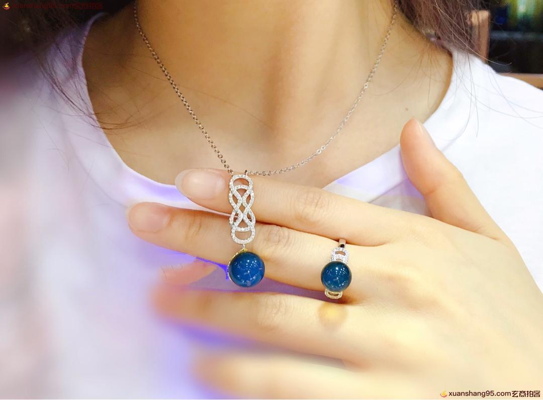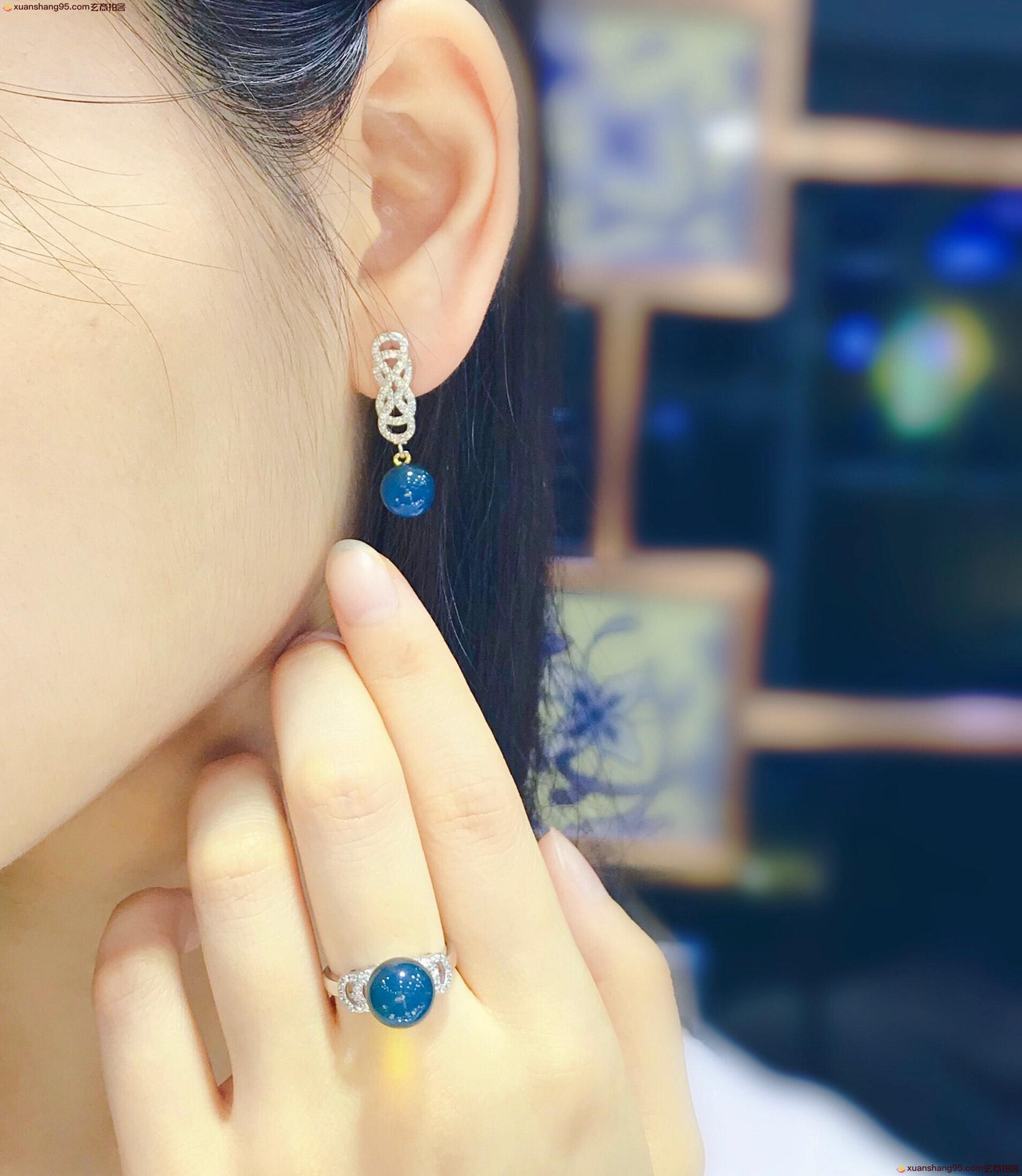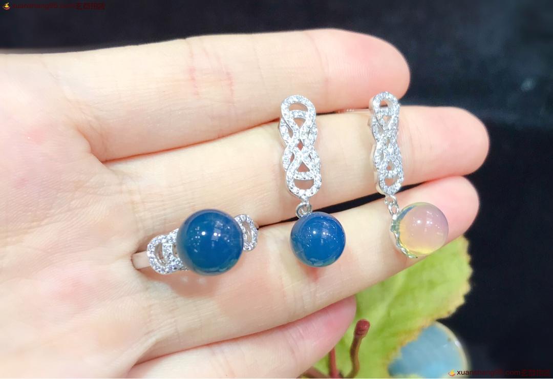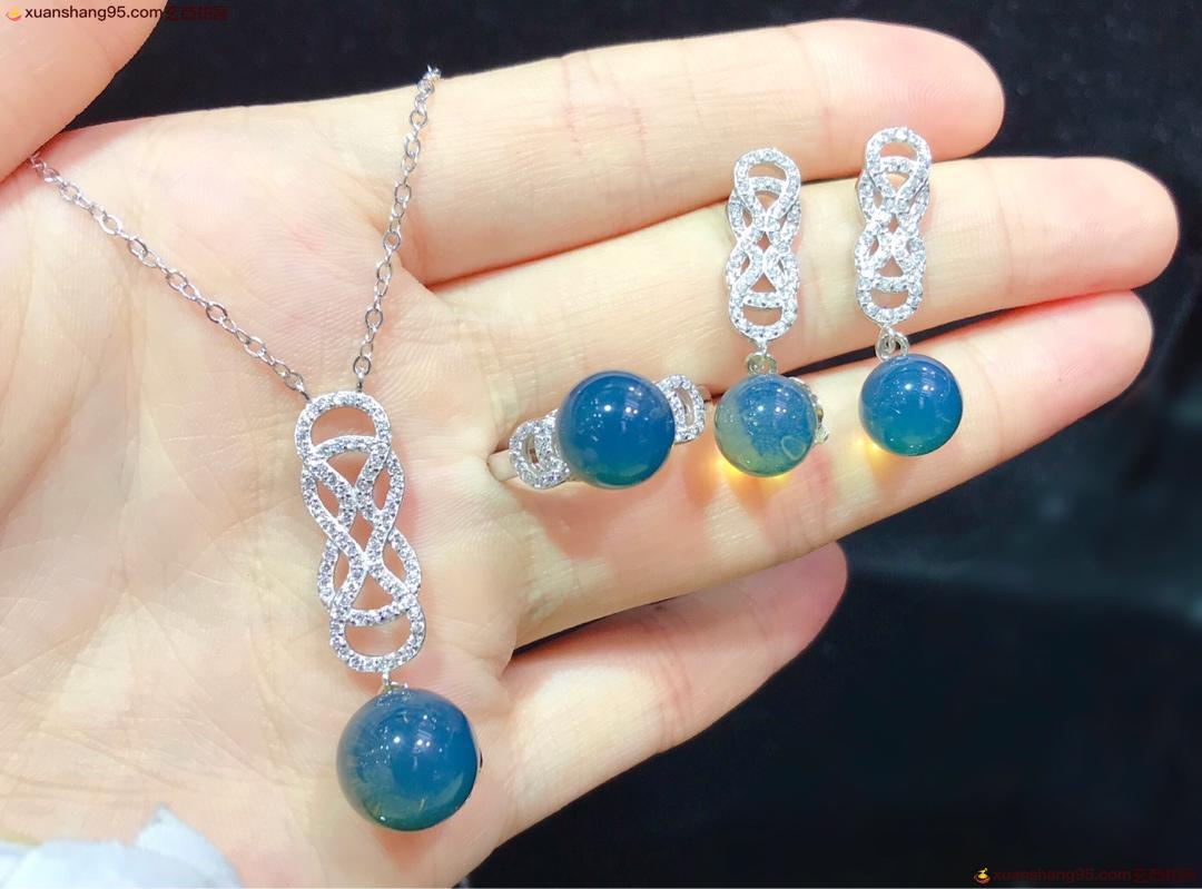 *品 墨西哥蓝珀 三件套 纯银镶嵌 精工镶嵌打造 吊坠尺寸11毫米 戒指9毫米 耳钉8毫米。