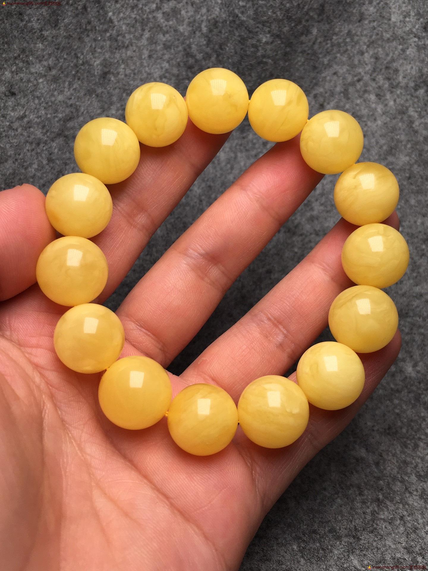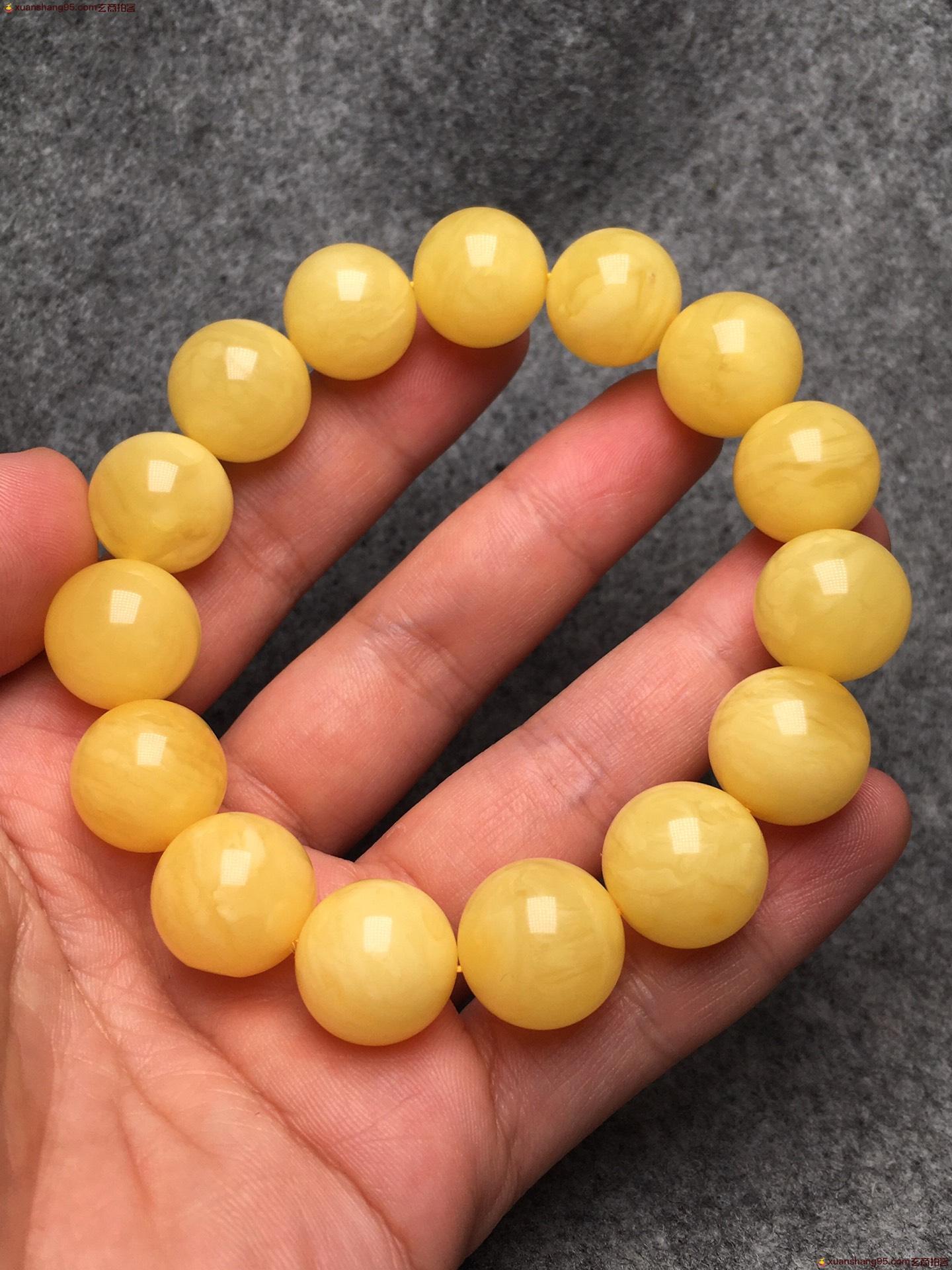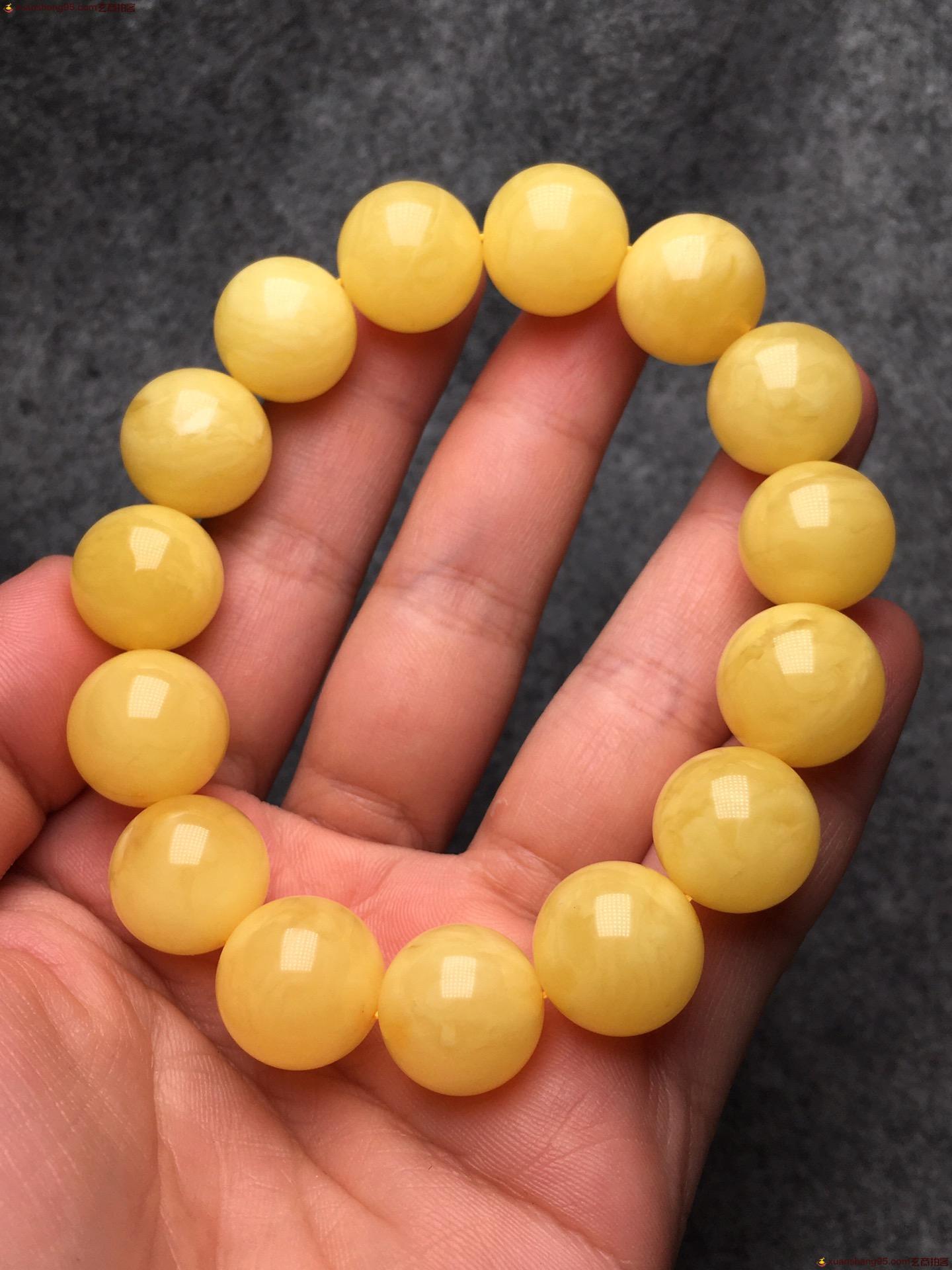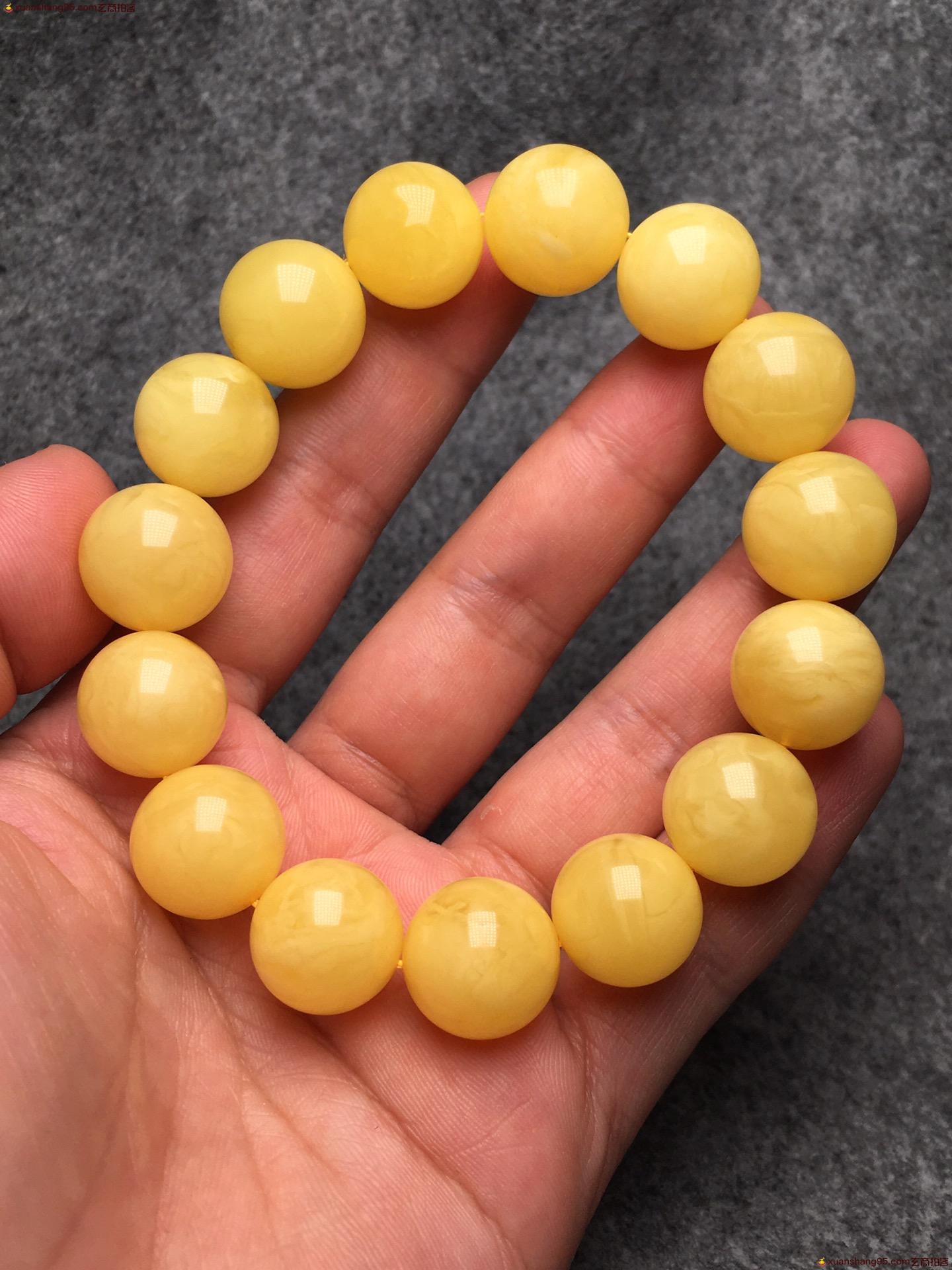 *品 鸡油黄 圆珠手串 纯天然 无优化 满蜜满蜡 尺寸14毫米 重量25克。