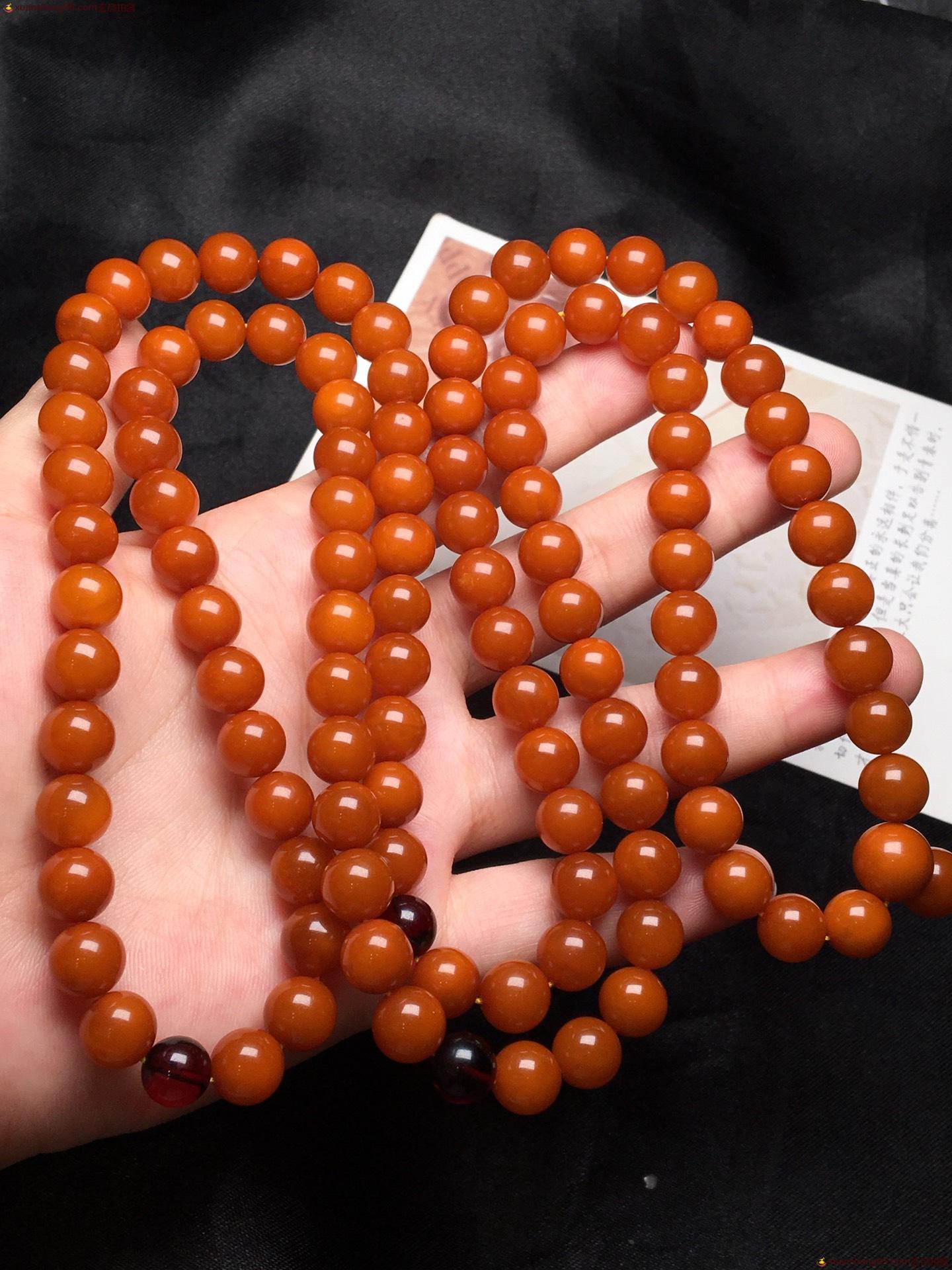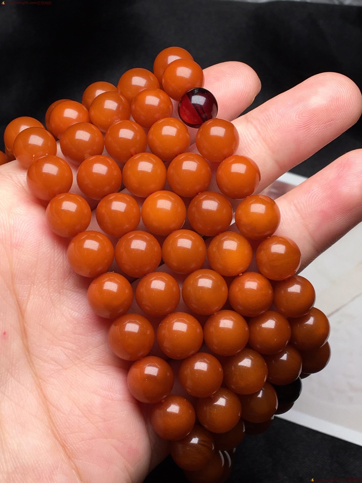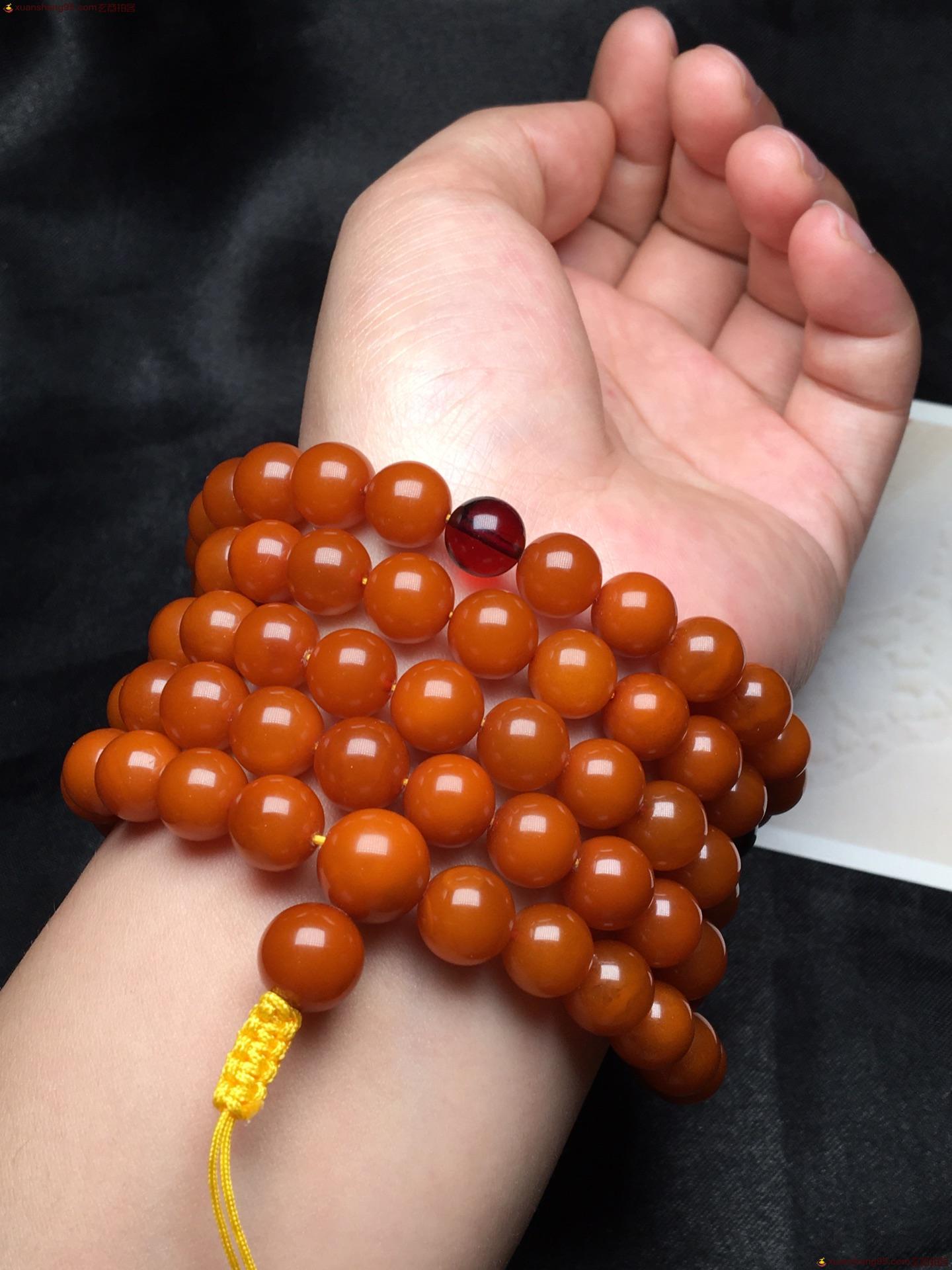 *品 橘皮 蜜蜡108手串 颗颗精选 皮壳油润 满蜜满蜡 无杂裂。尺寸9毫米 重量51克。