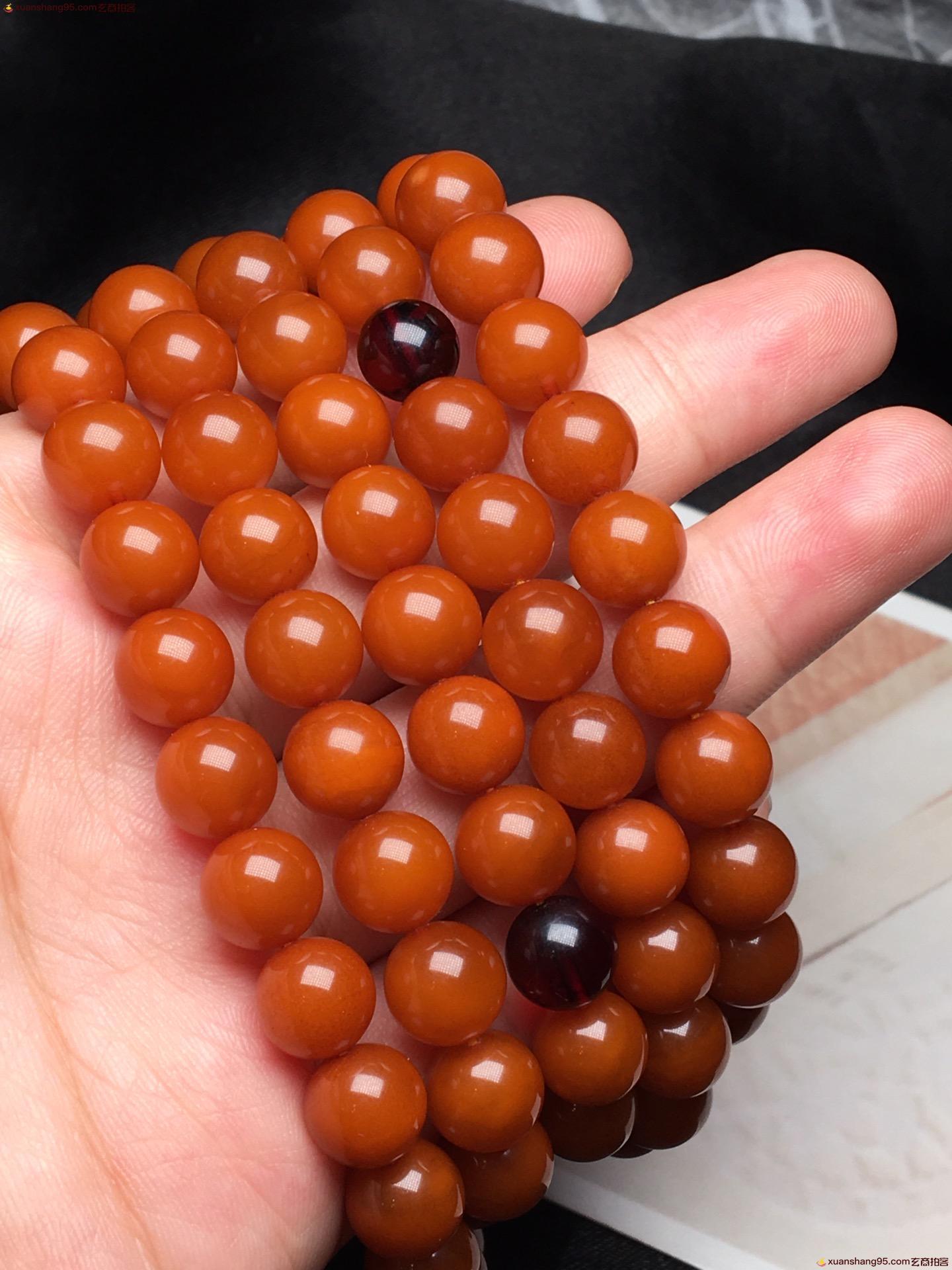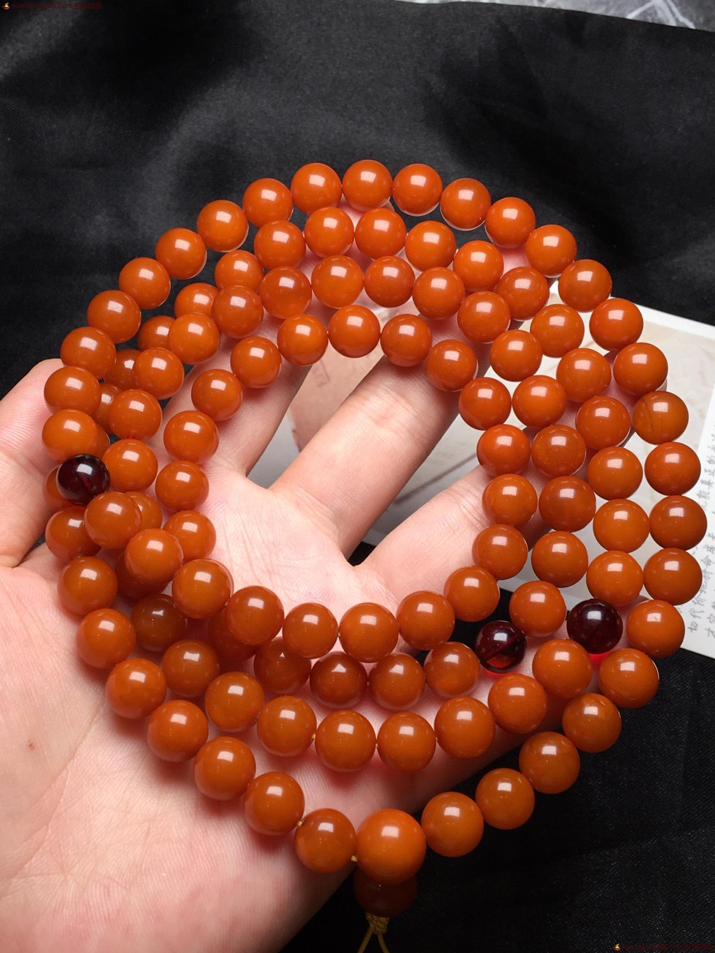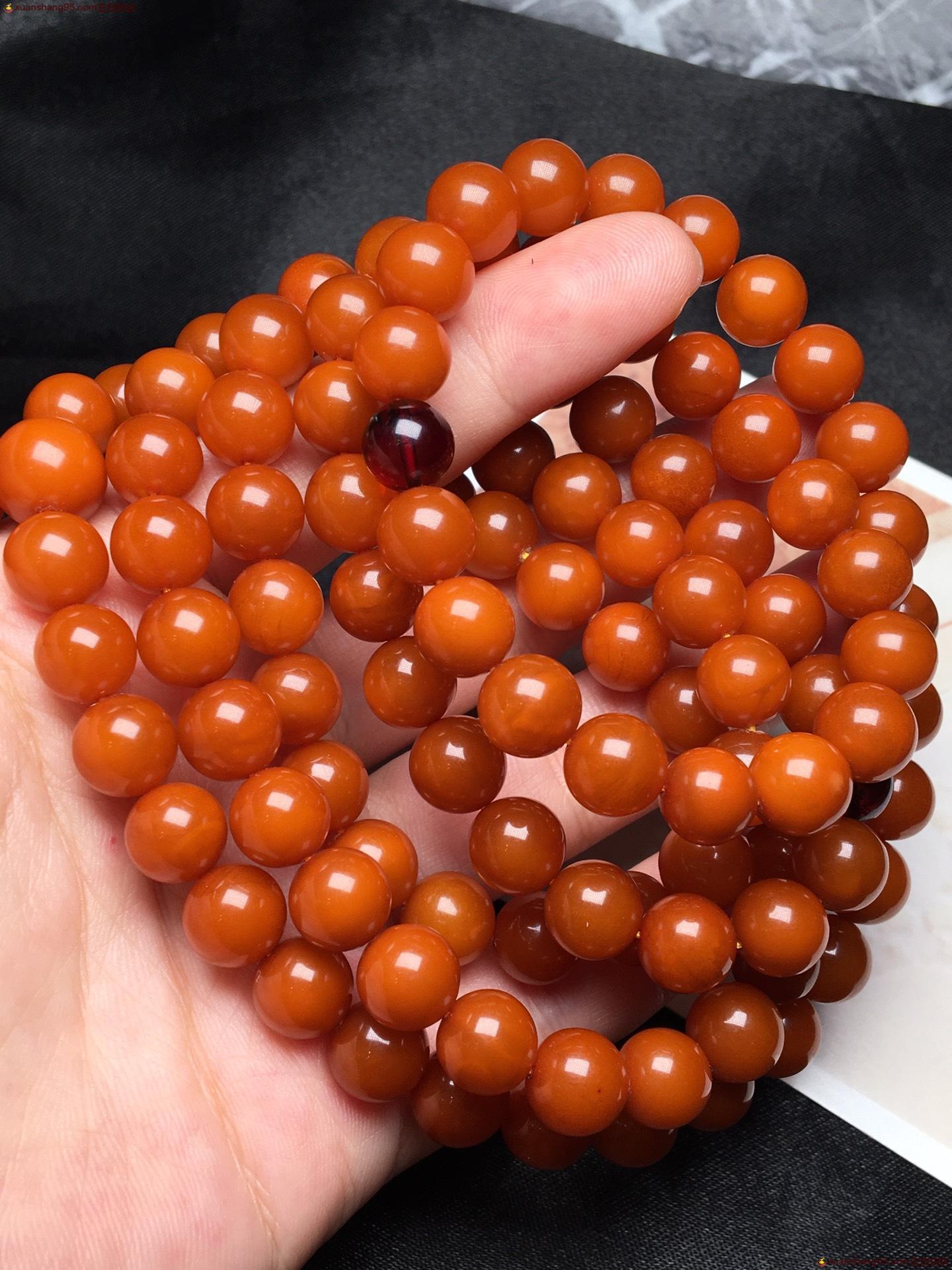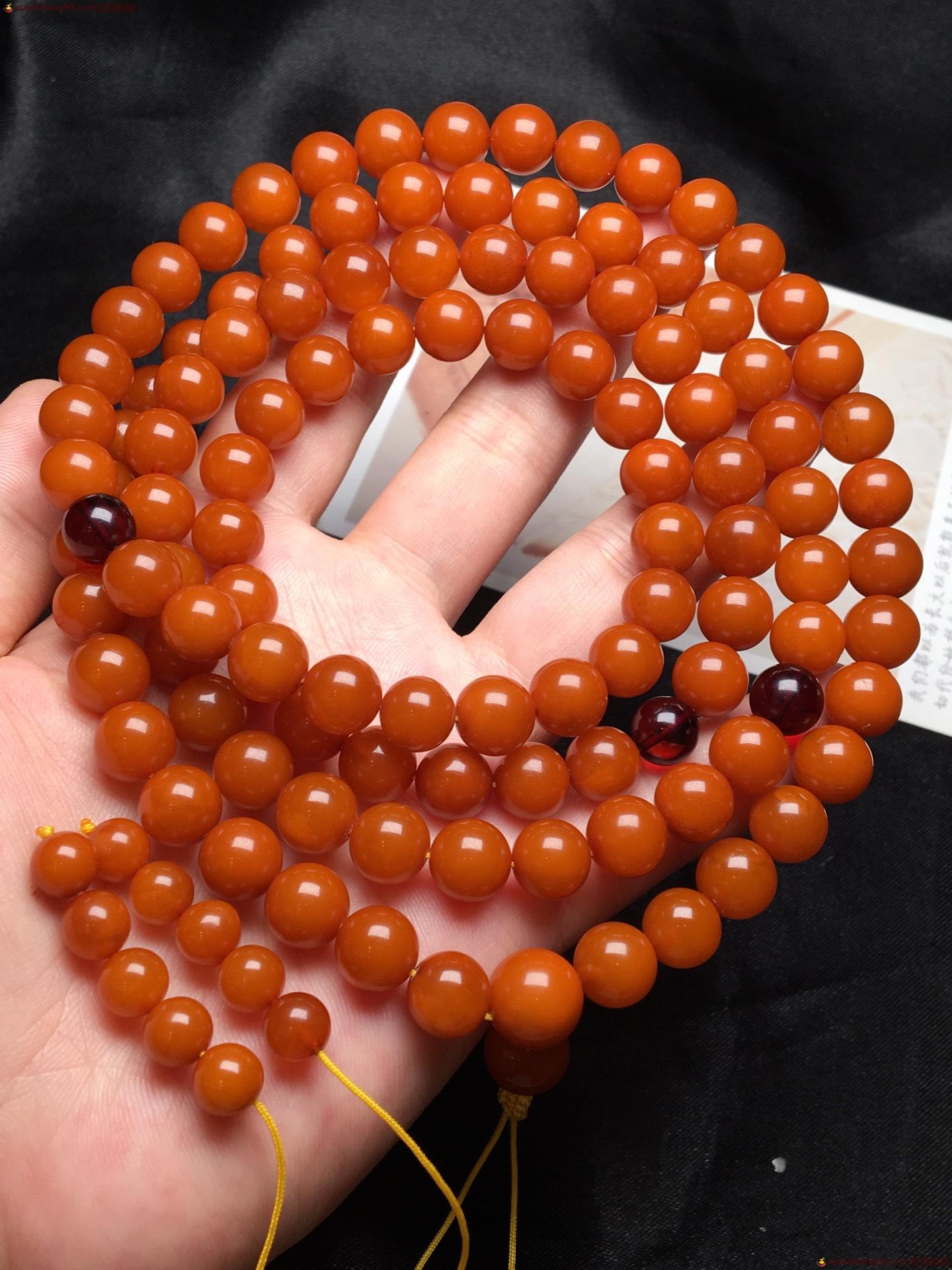 *品 橘皮 蜜蜡108手串 颗颗精选 皮壳油润 满蜜满蜡 无杂裂。尺寸9毫米 重量51克。