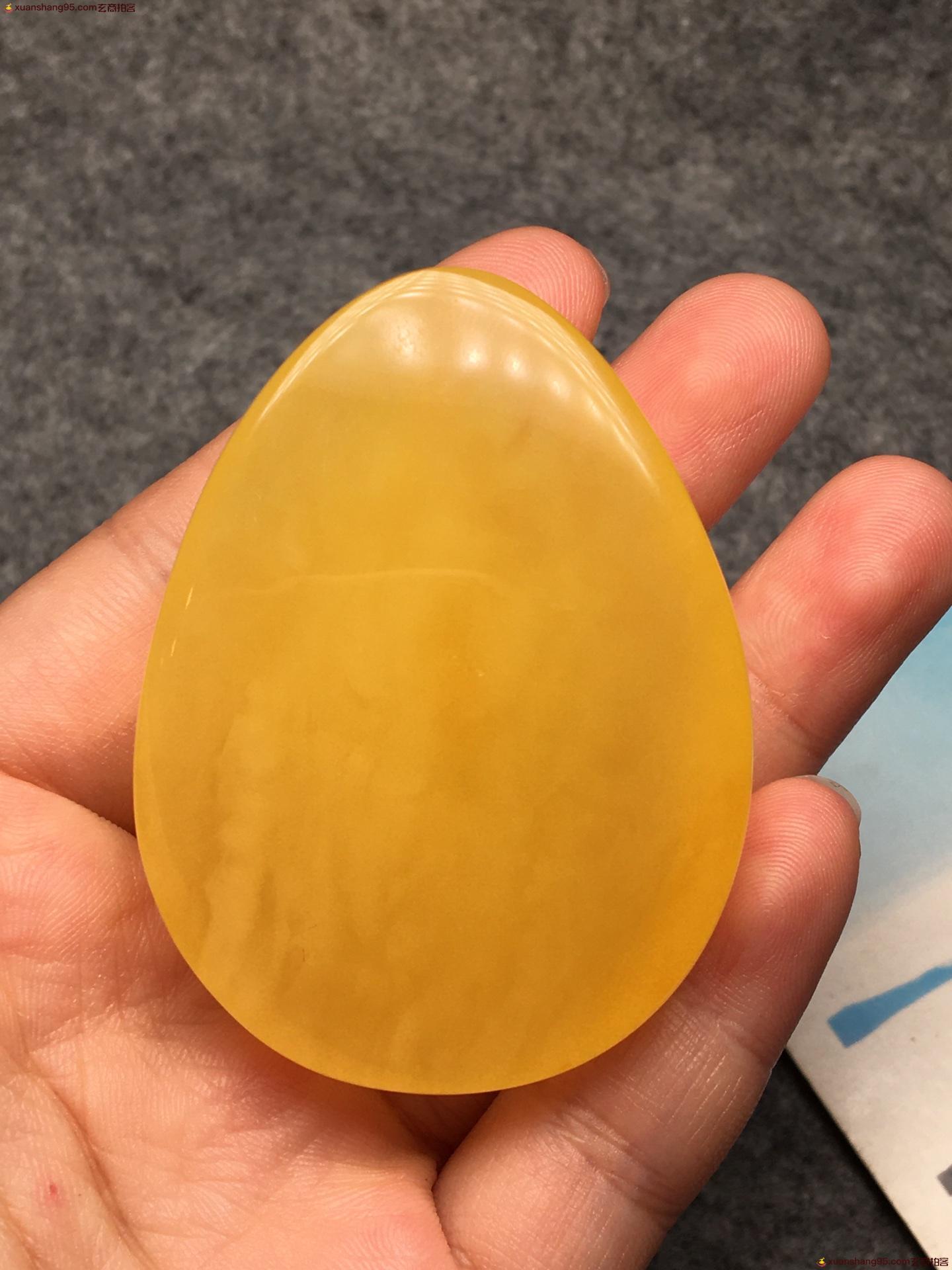 *品 完美 鸡油黄蜜蜡吊坠 造型端正 满蜜满蜡 无杂无裂 尺寸57*42*20毫米 重量26克。